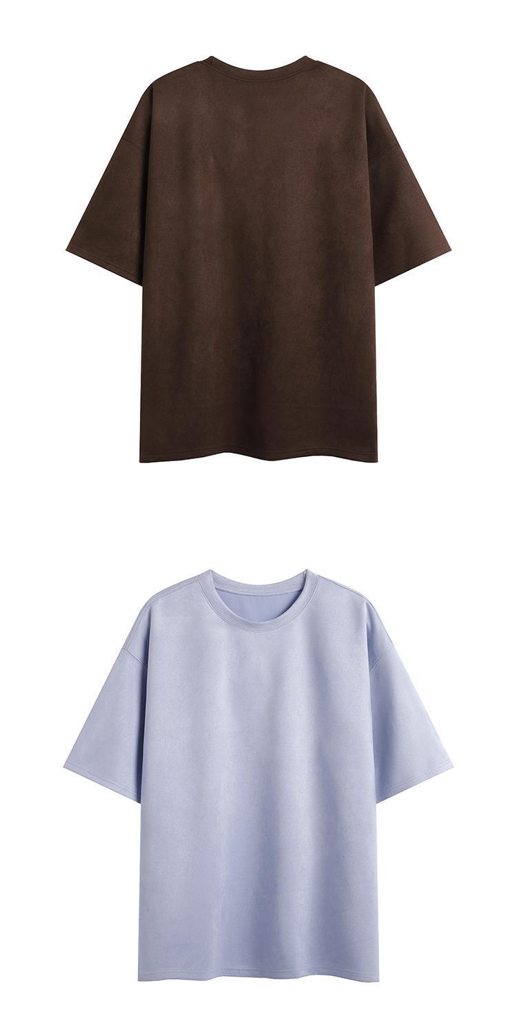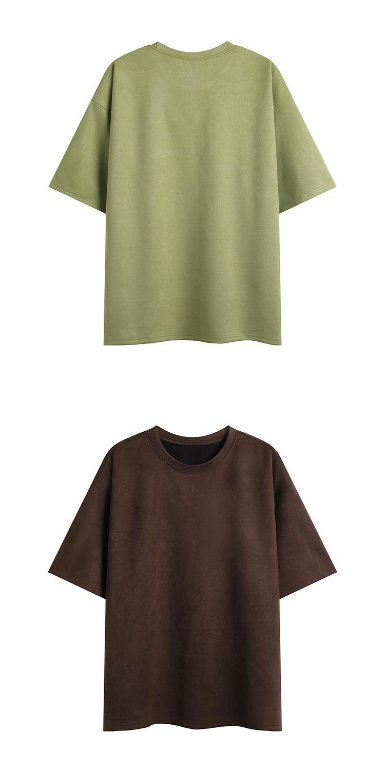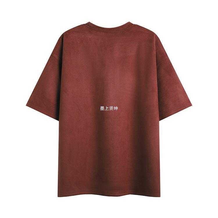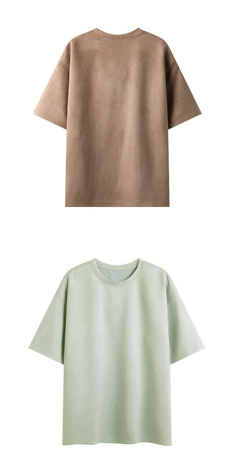 Camiseta para hombre 2024 nuevo estilo para hombre, tablero de luz de color sólido de dos abiertos, gamuza, cuello redondo suelto, jersey, camiseta de manga corta