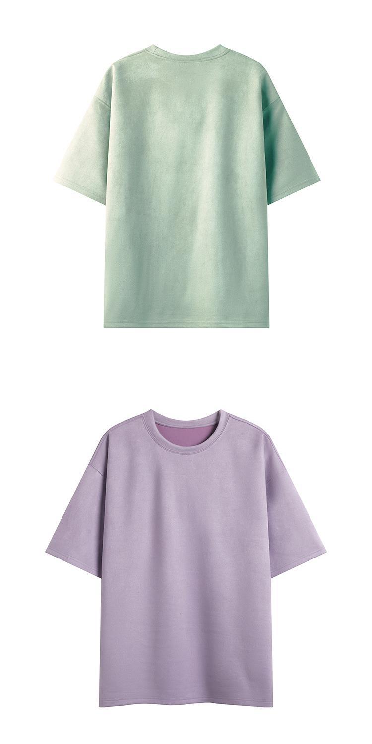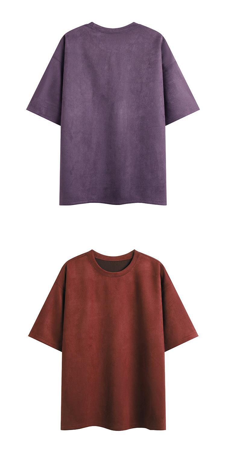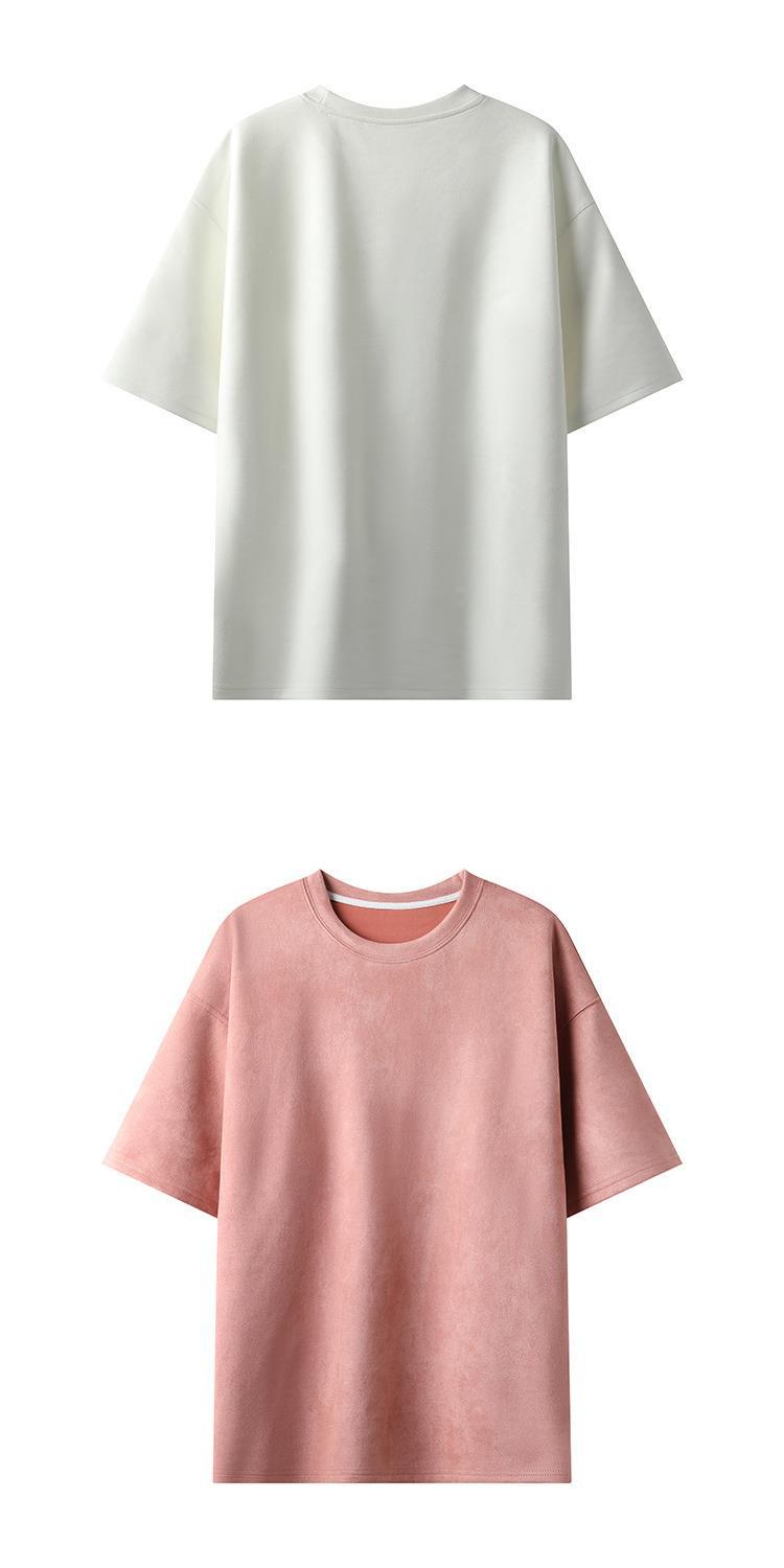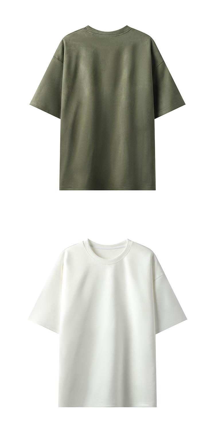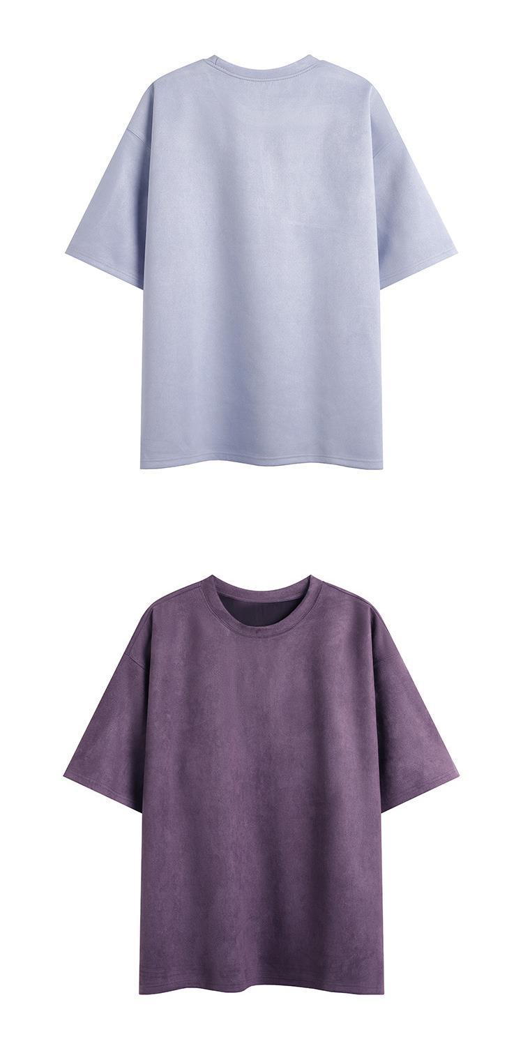 Camiseta para hombre 2024 nuevo estilo para hombre, tablero de luz de color sólido de dos abiertos, gamuza, cuello redondo suelto, jersey, camiseta de manga corta