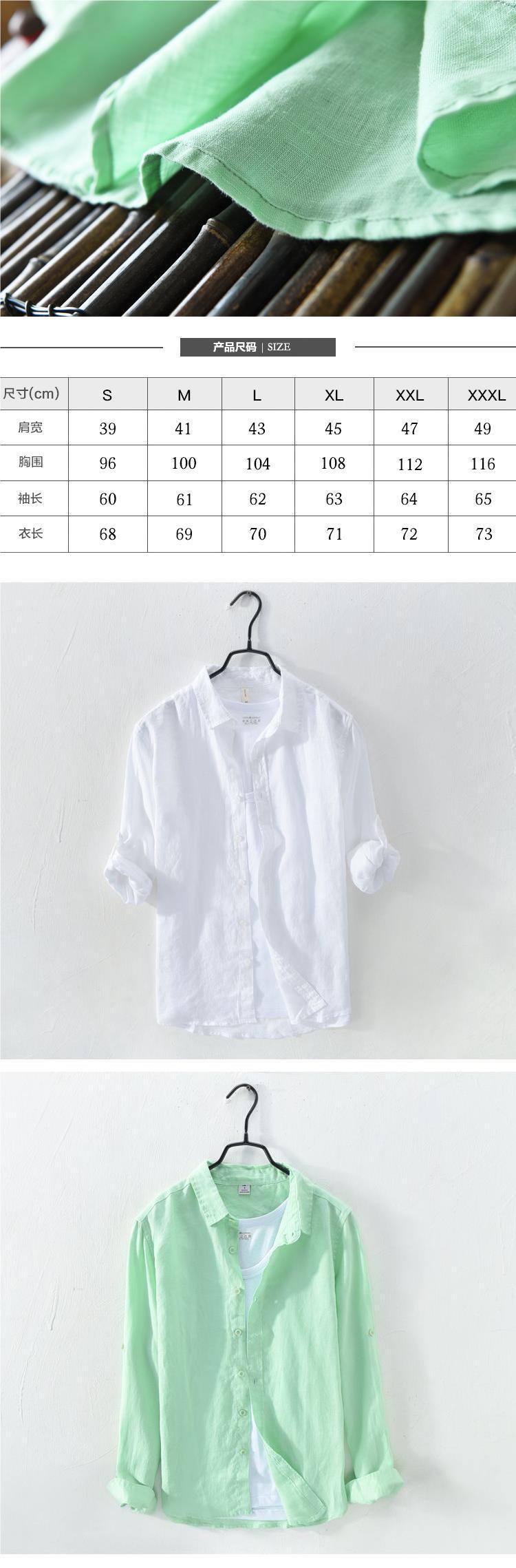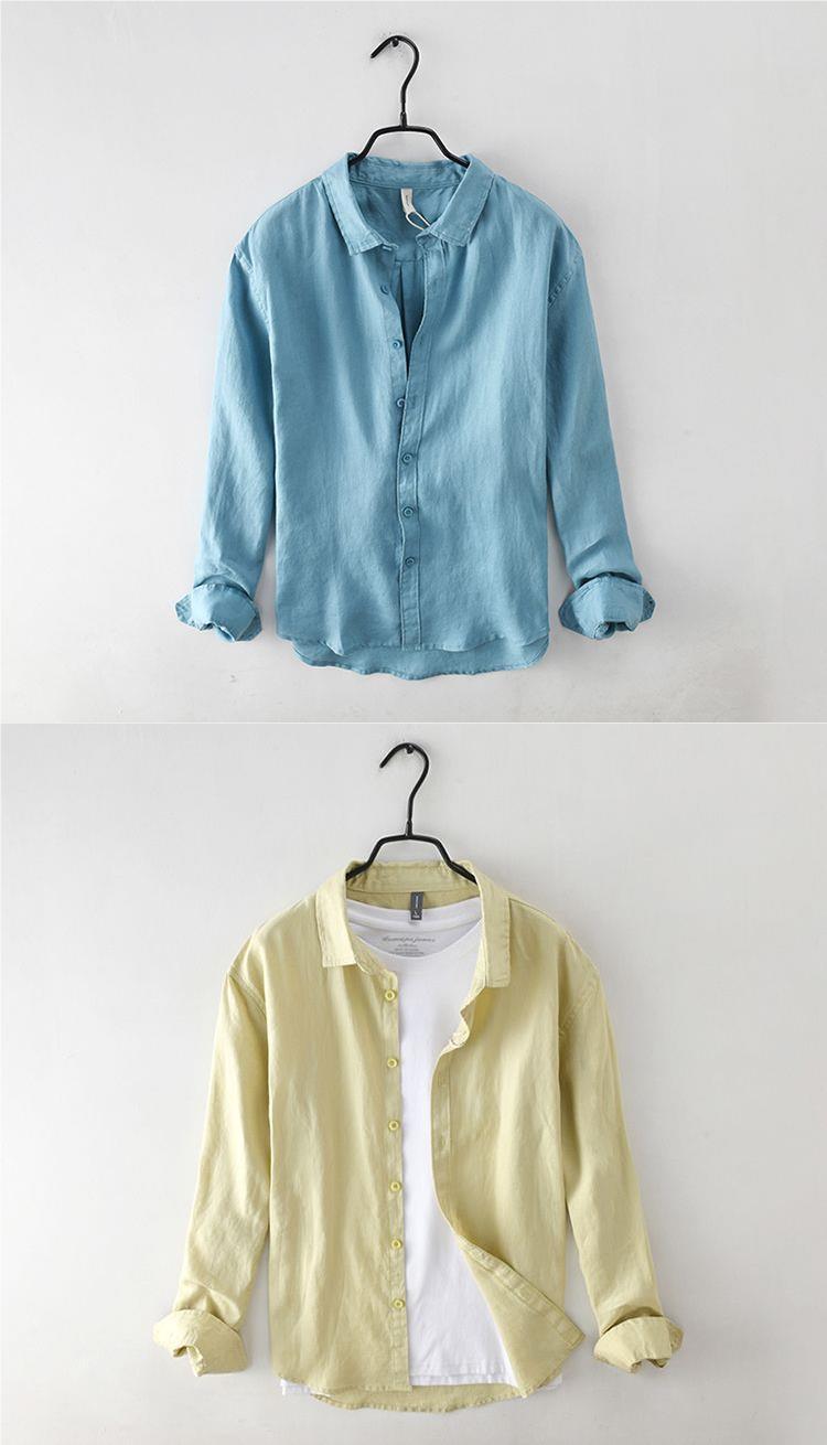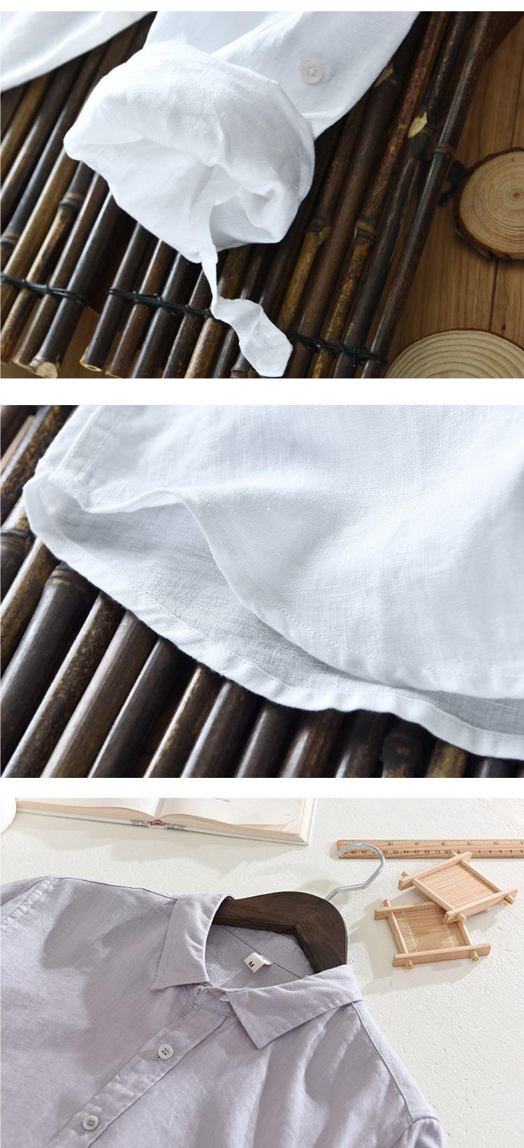 Camisa de lino de manga larga blanca transpirable en la playa Camisa de lino de algodón y lino delgada delgada informal para hombre