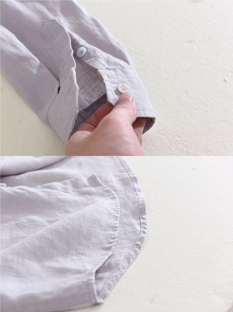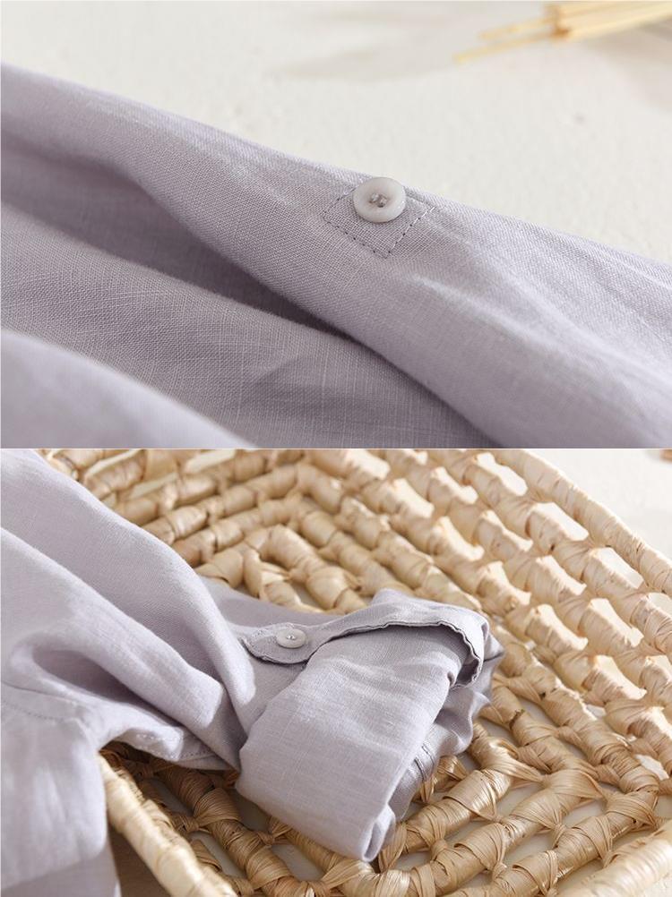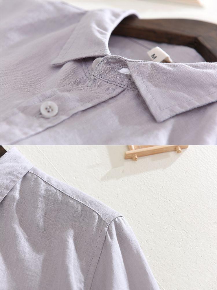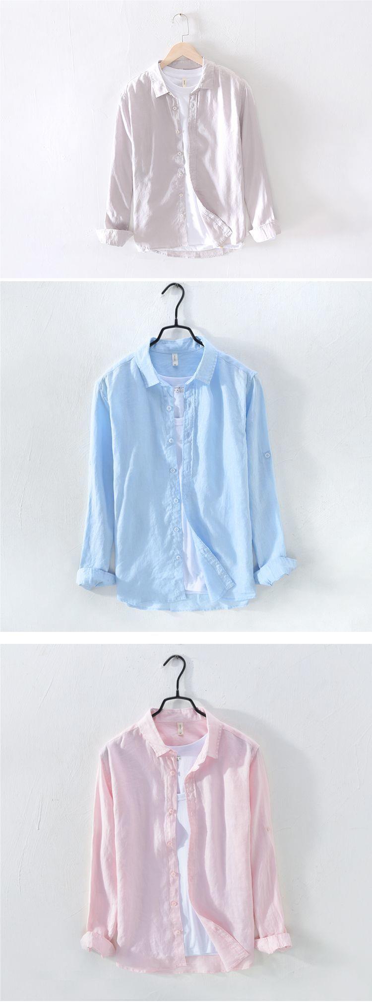 Camisa de lino de manga larga blanca transpirable en la playa Camisa de lino de algodón y lino delgada delgada informal para hombre
