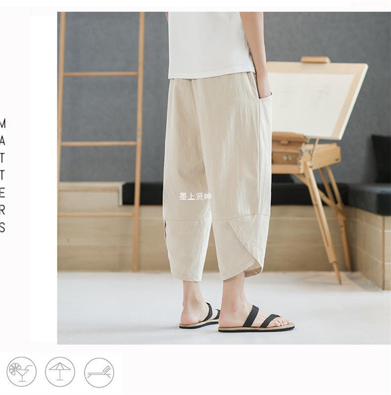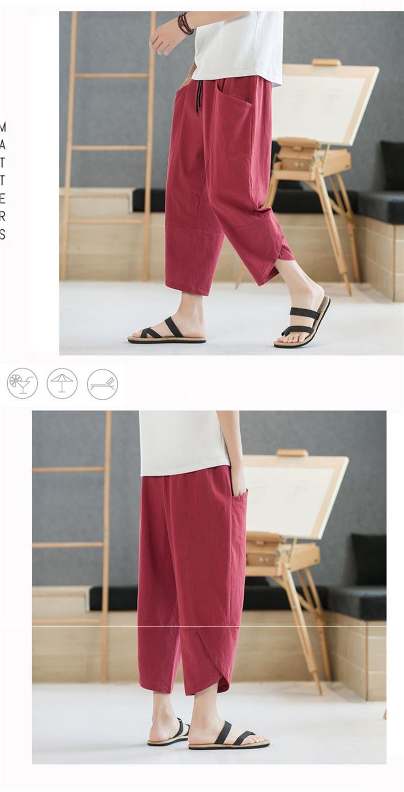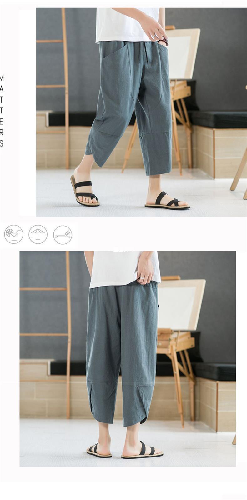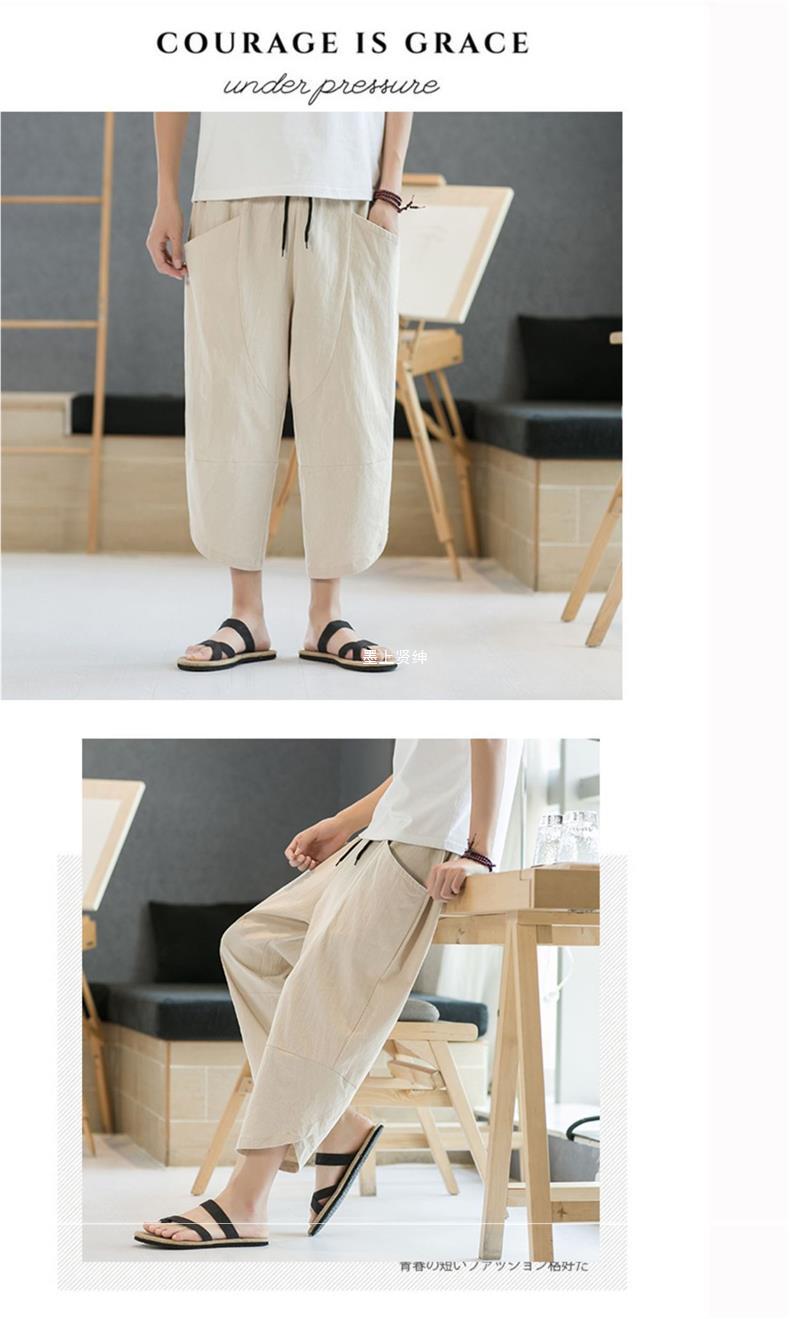 Pantalones cortos para hombres Pantalones cortos de lino fino de verano Pantalones casuales Pantalones anchos sueltos de gran tamaño Pantalones de playa de lino de algodón