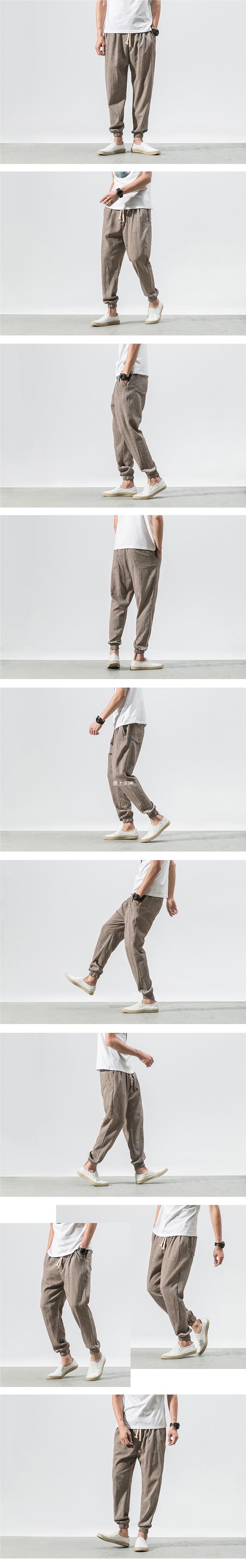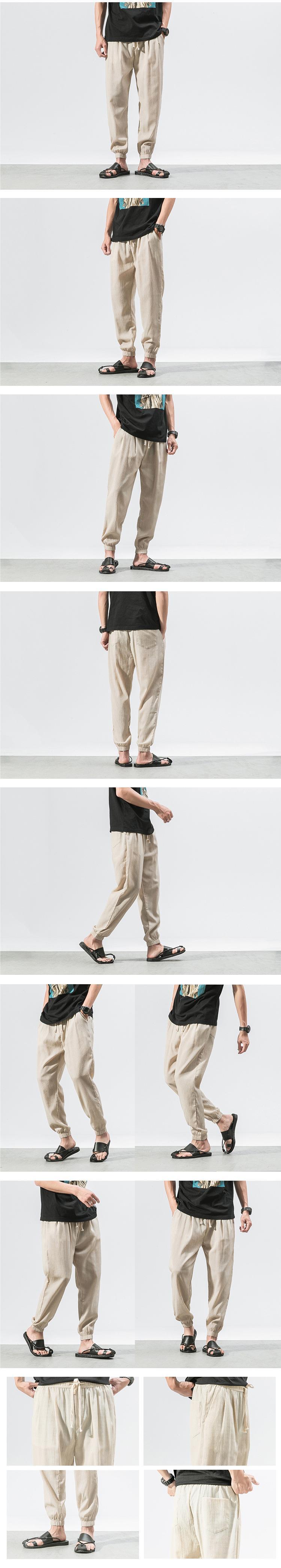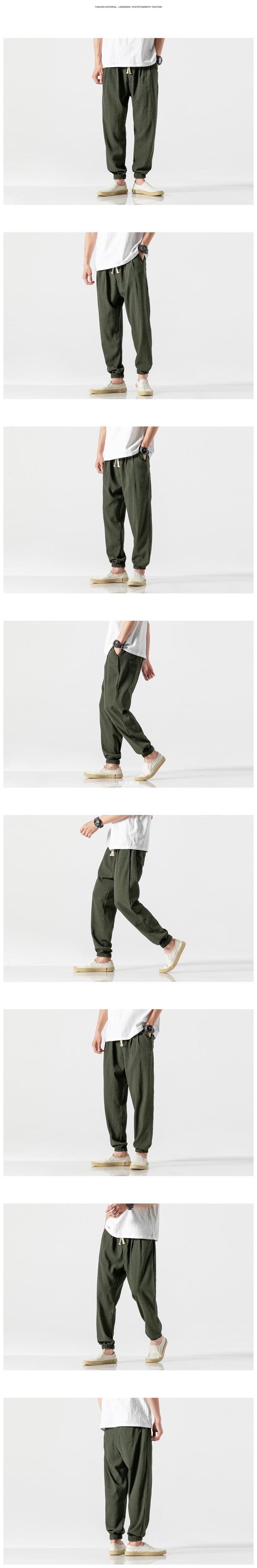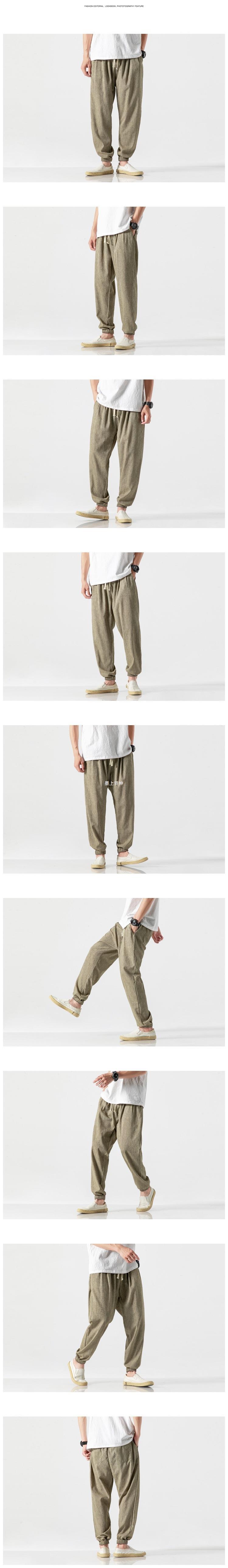 Pantalones casuales de lino Pantalones harem sueltos delgados de verano para hombres Pantalones de pies Pantalones cortos de algodón y lino de moda Pantalones de linterna
