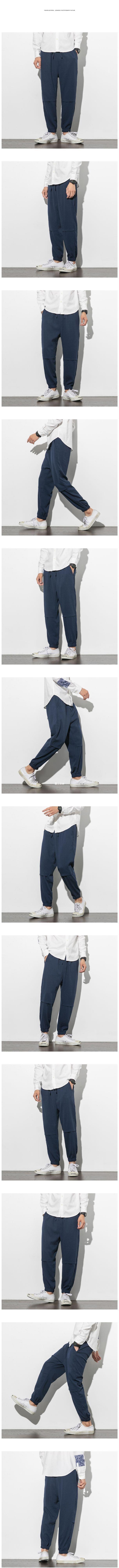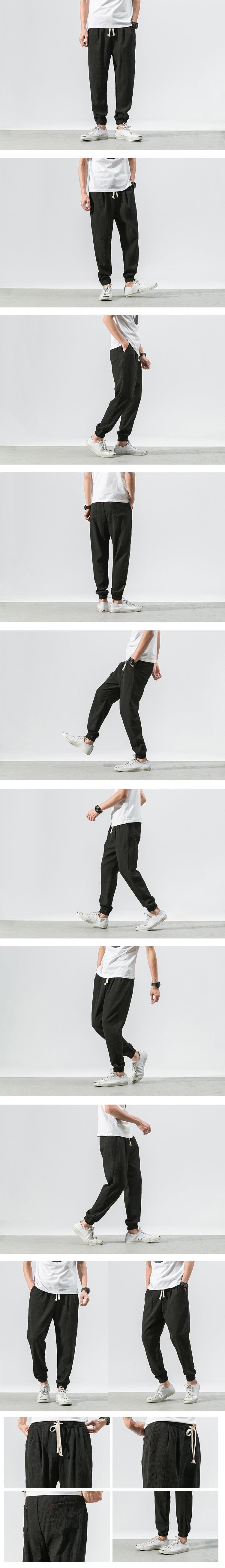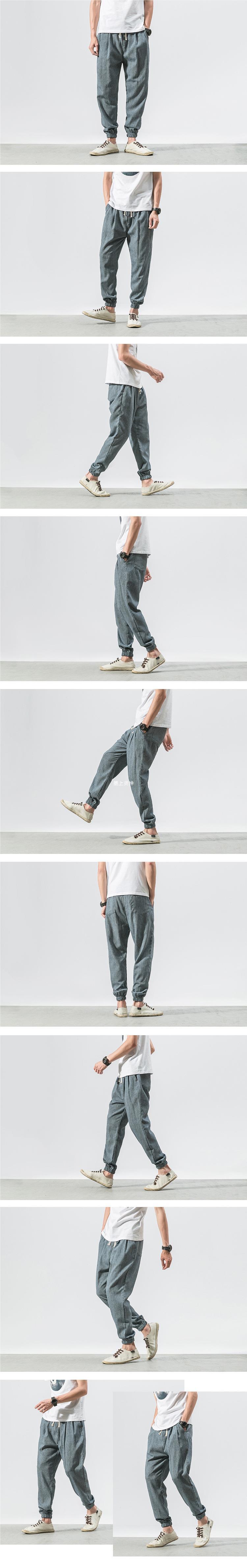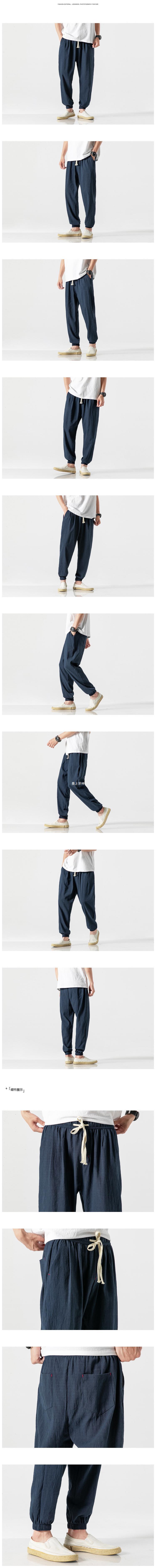 Pantalones casuales de lino Pantalones harem sueltos delgados de verano para hombres Pantalones de pies Pantalones cortos de algodón y lino de moda Pantalones de linterna