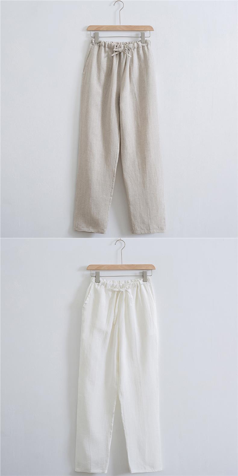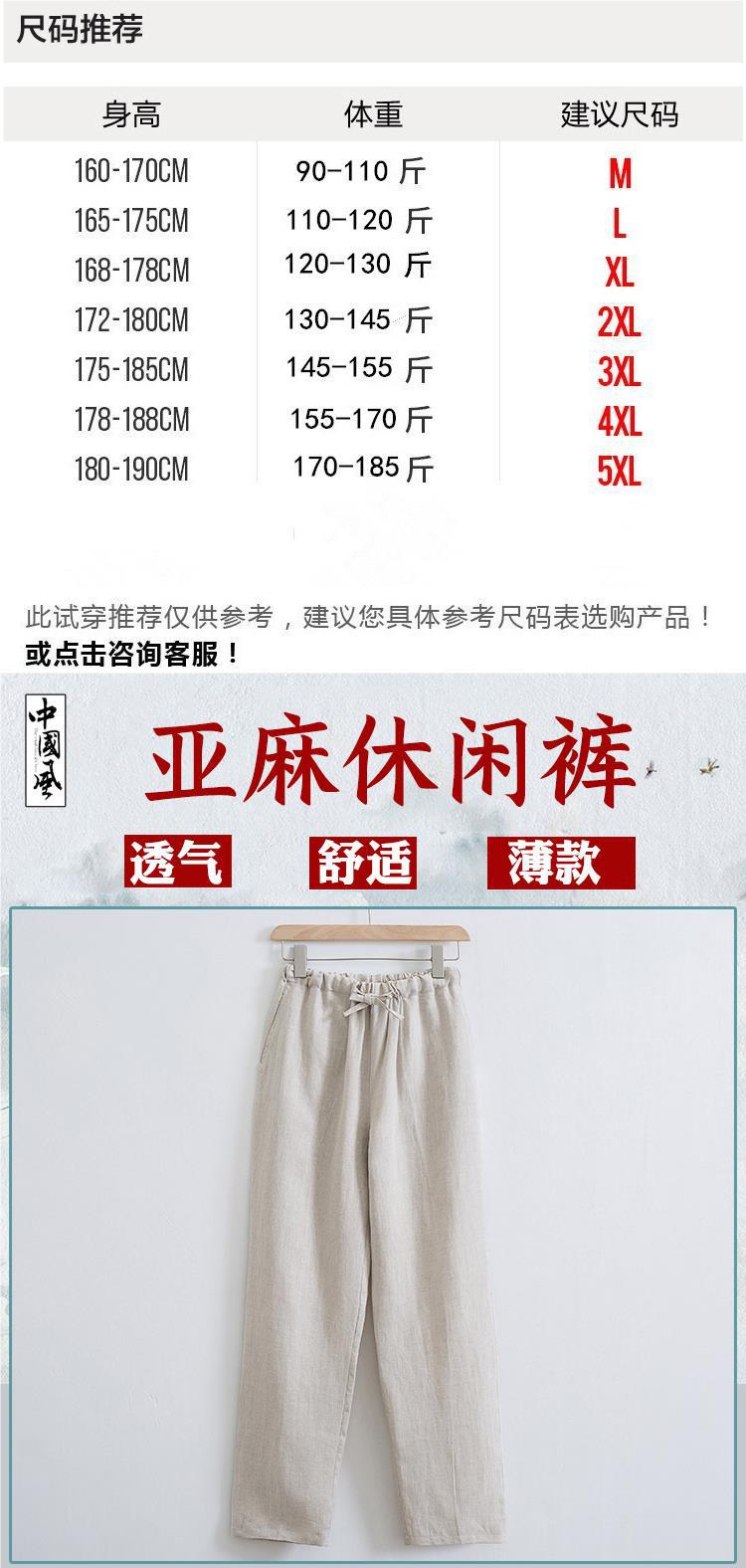 Pantalones casuales de lino de estilo chino pantalones delgados de verano para hombres pantalones sueltos de lino de color sólido con cintura elástica recta
