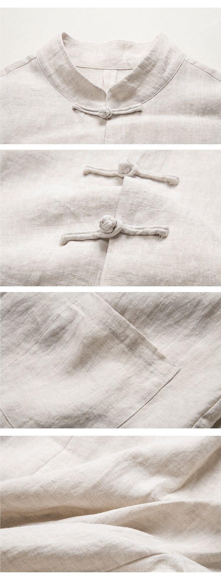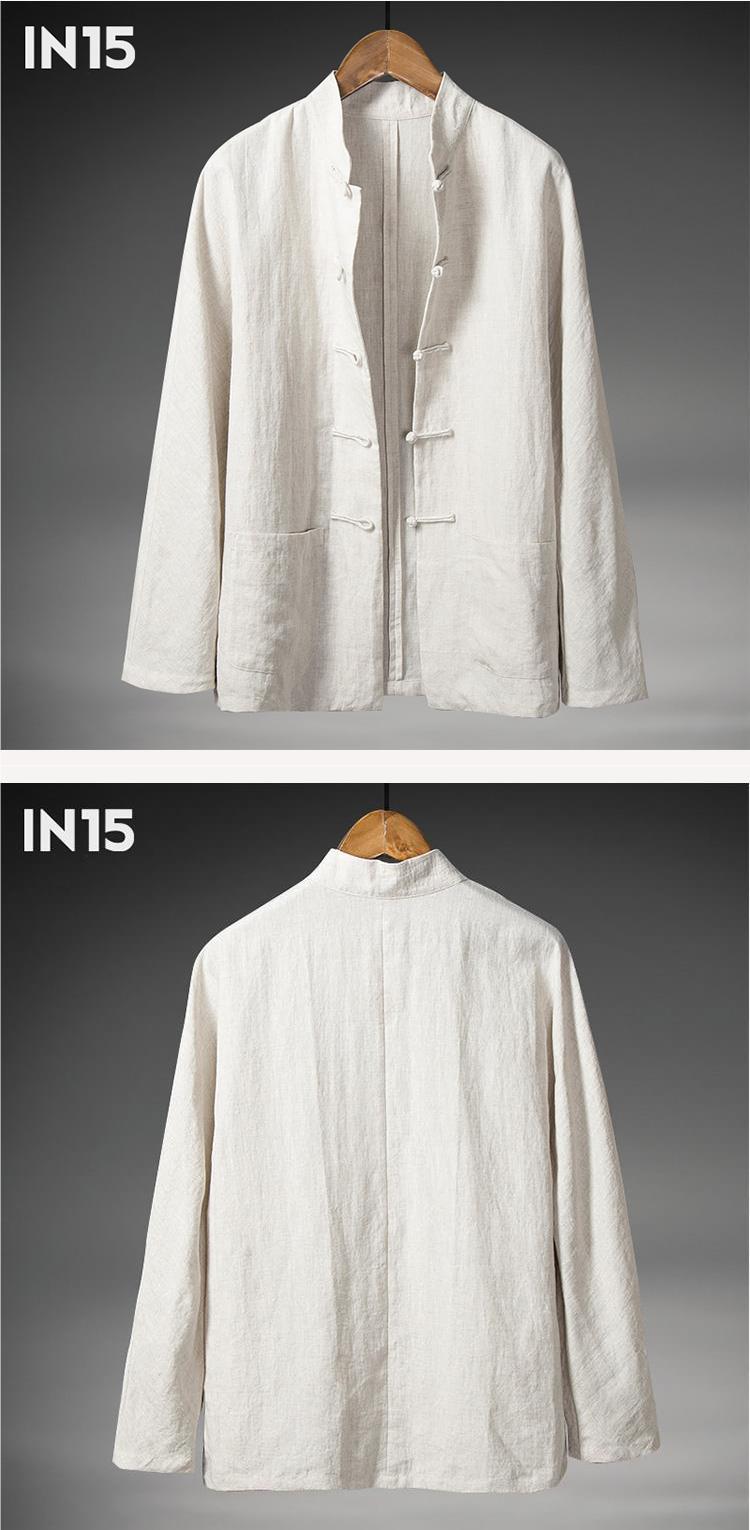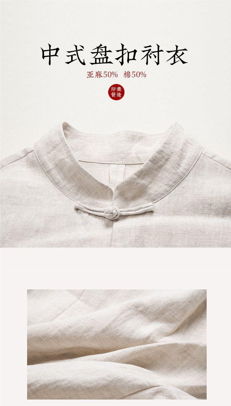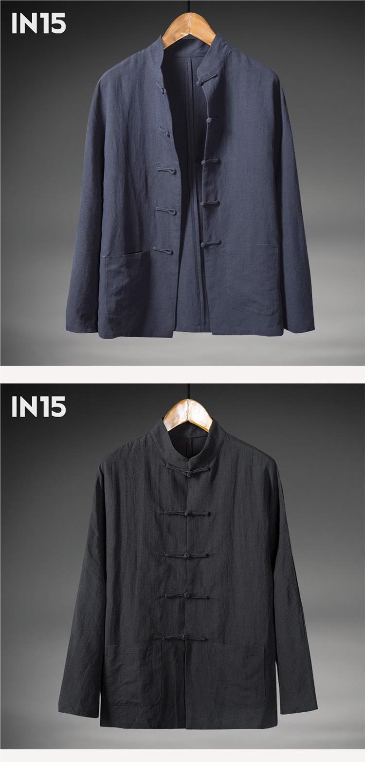 Primavera y otoño Nuevo estilo chino retro para hombres Camisa de lino de estilo chino Camisa de manga larga con hebilla de algodón y lino para hombres con cuello alto Traje Tang