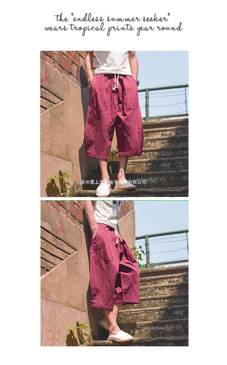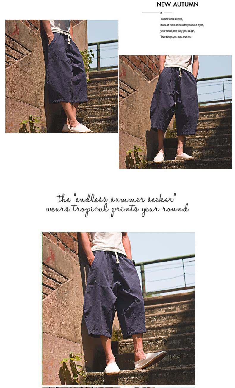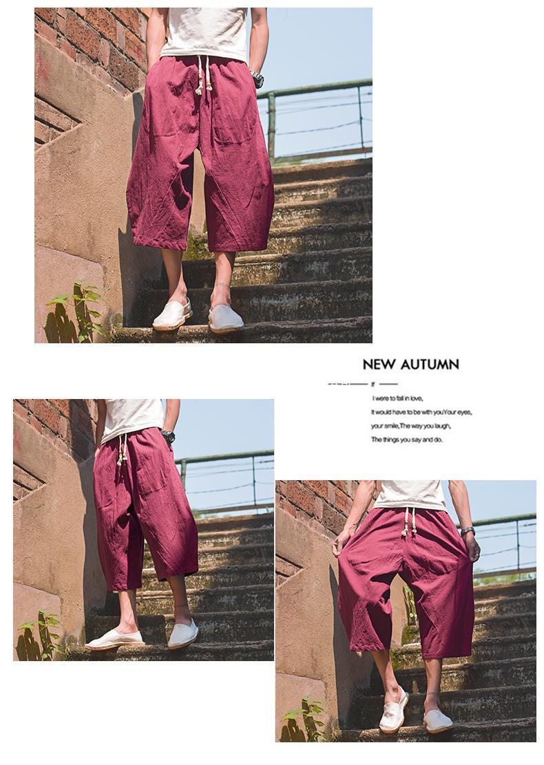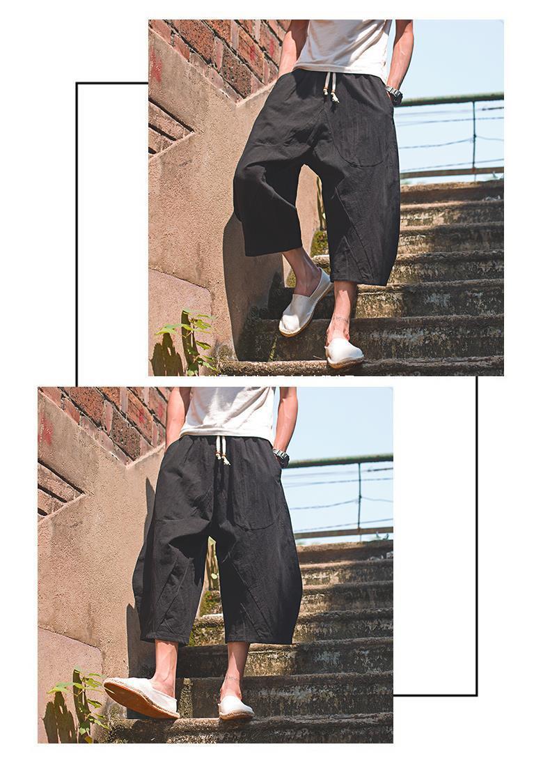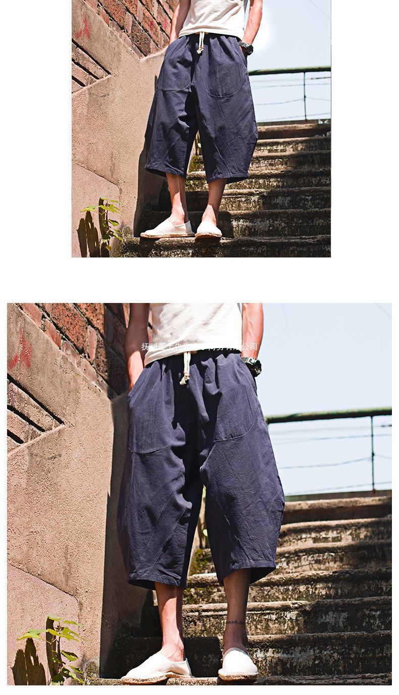 Pantalón ancho de elefante tailandés, bombachos, marca de moda para hombre, pantalones cortos de lino sueltos de gran tamaño, pantalones cortos, entrepierna grande, pantalones de playa, verano