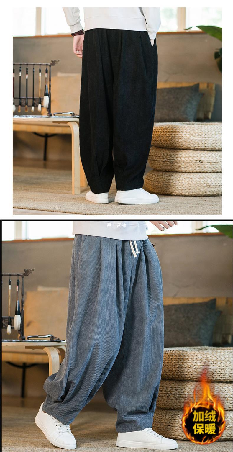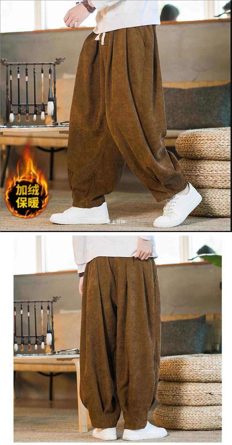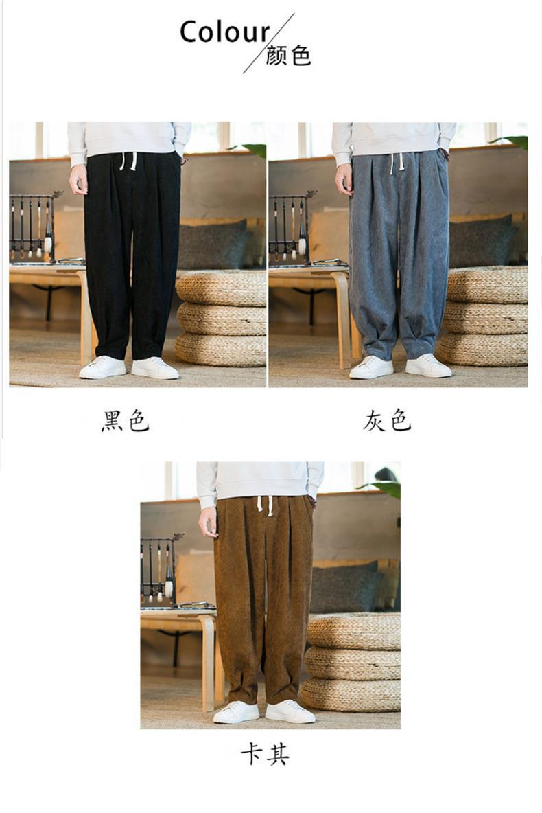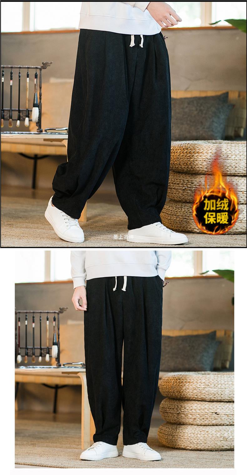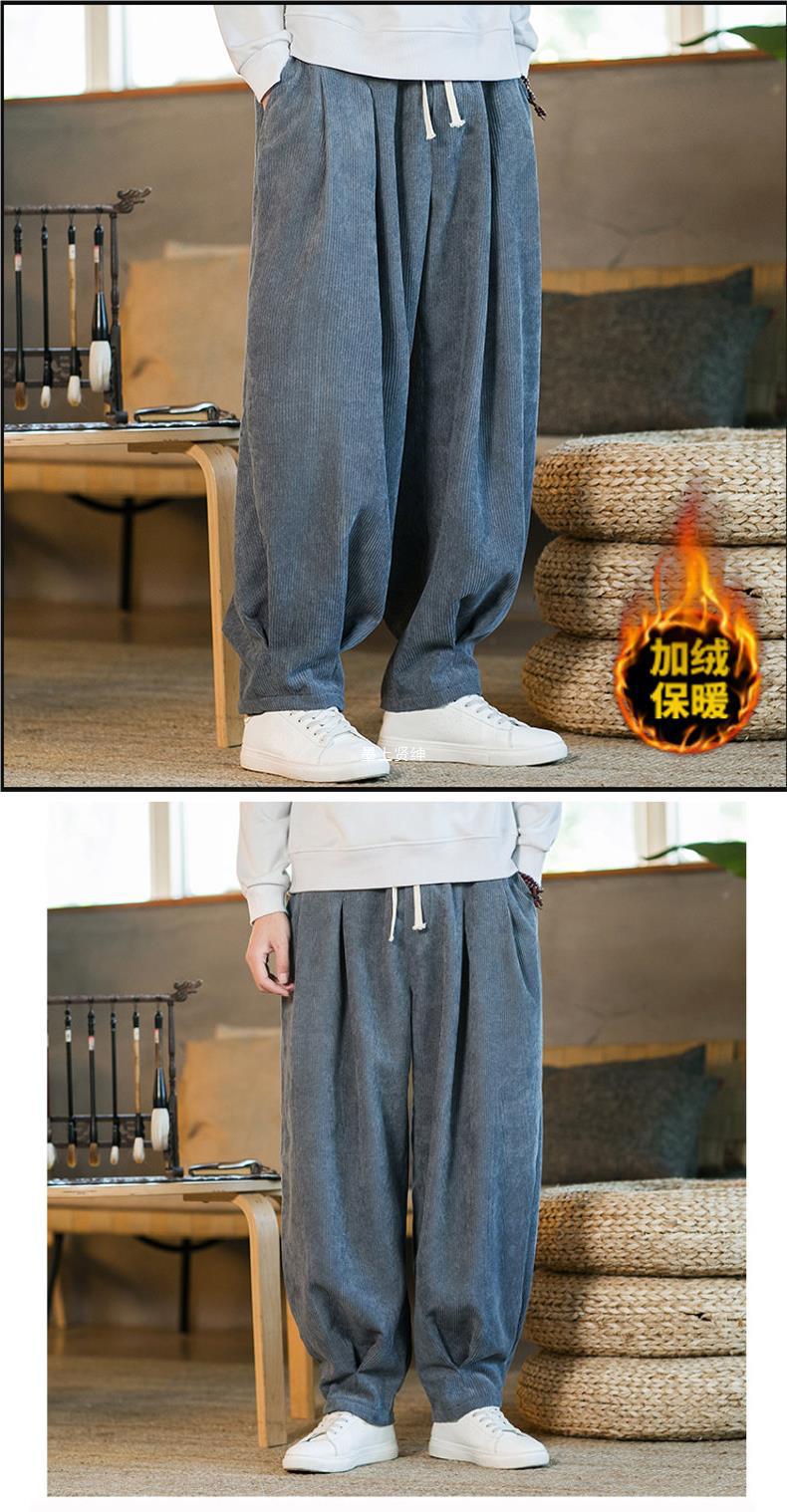 Invierno nuevos hombres de gran tamaño color sólido estilo chino pana más terciopelo engrosamiento pantalones sueltos pantalones casuales de pierna ancha de moda