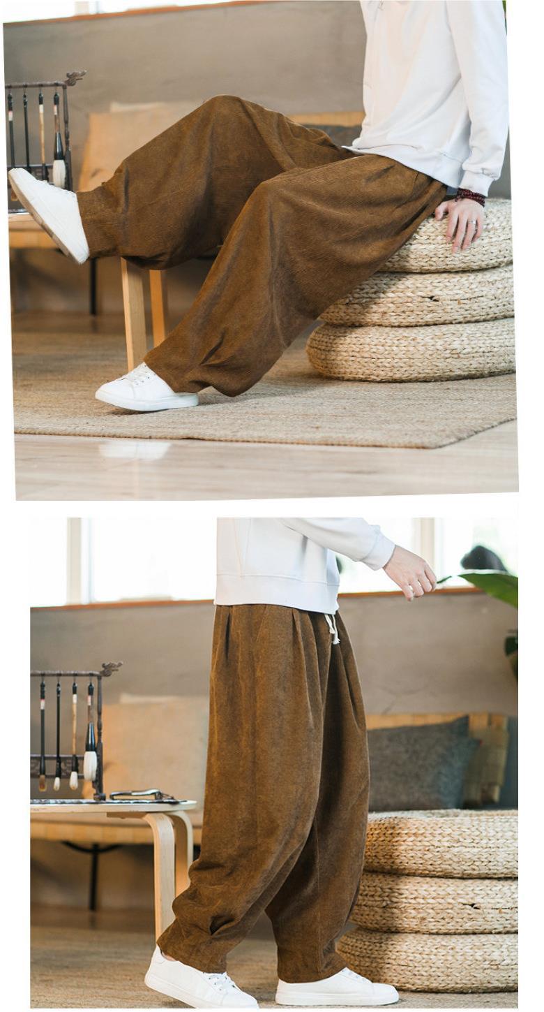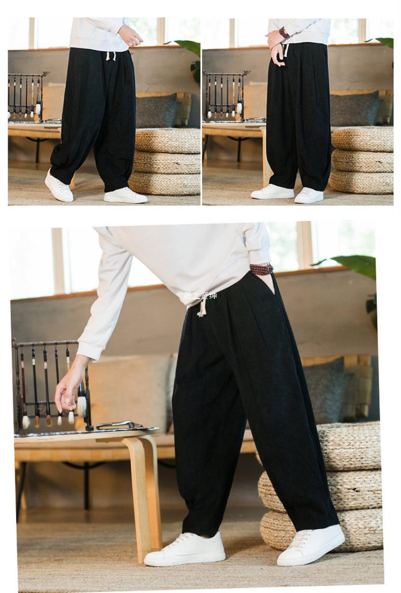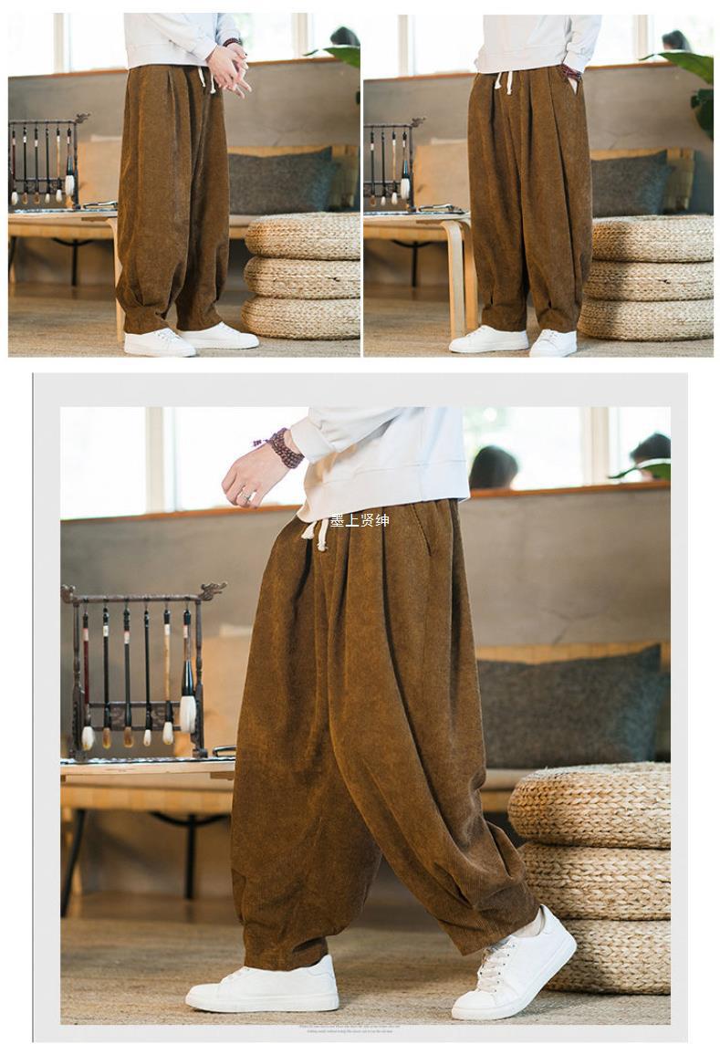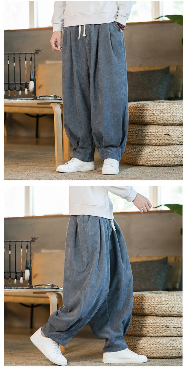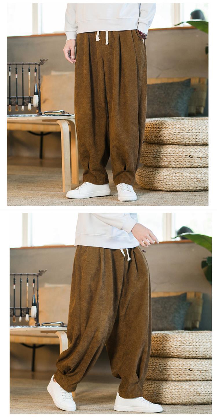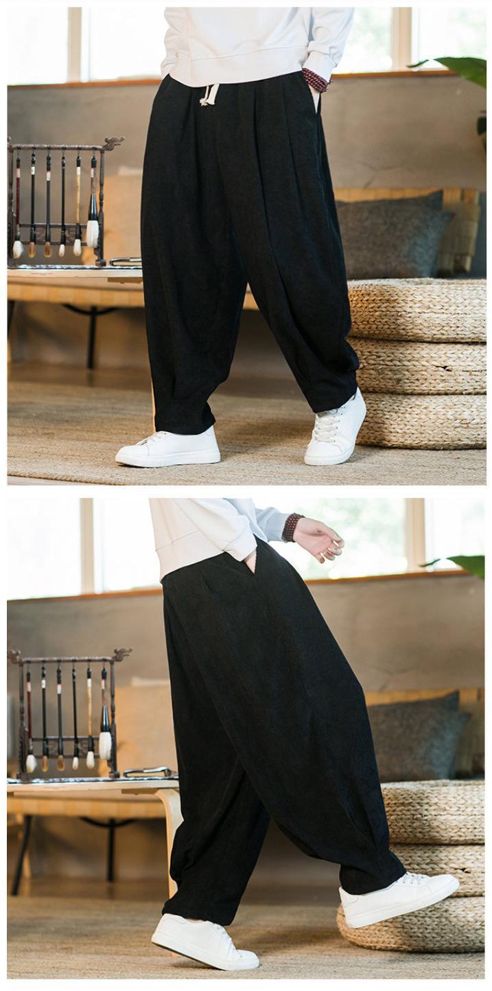 Invierno nuevos hombres de gran tamaño color sólido estilo chino pana más terciopelo engrosamiento pantalones sueltos pantalones casuales de pierna ancha de moda