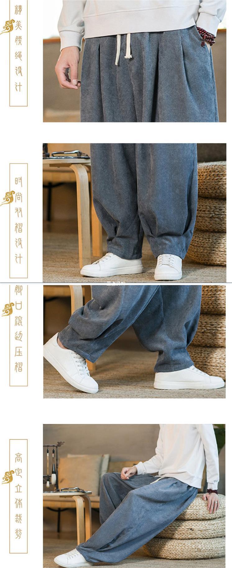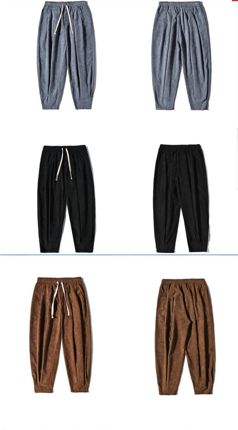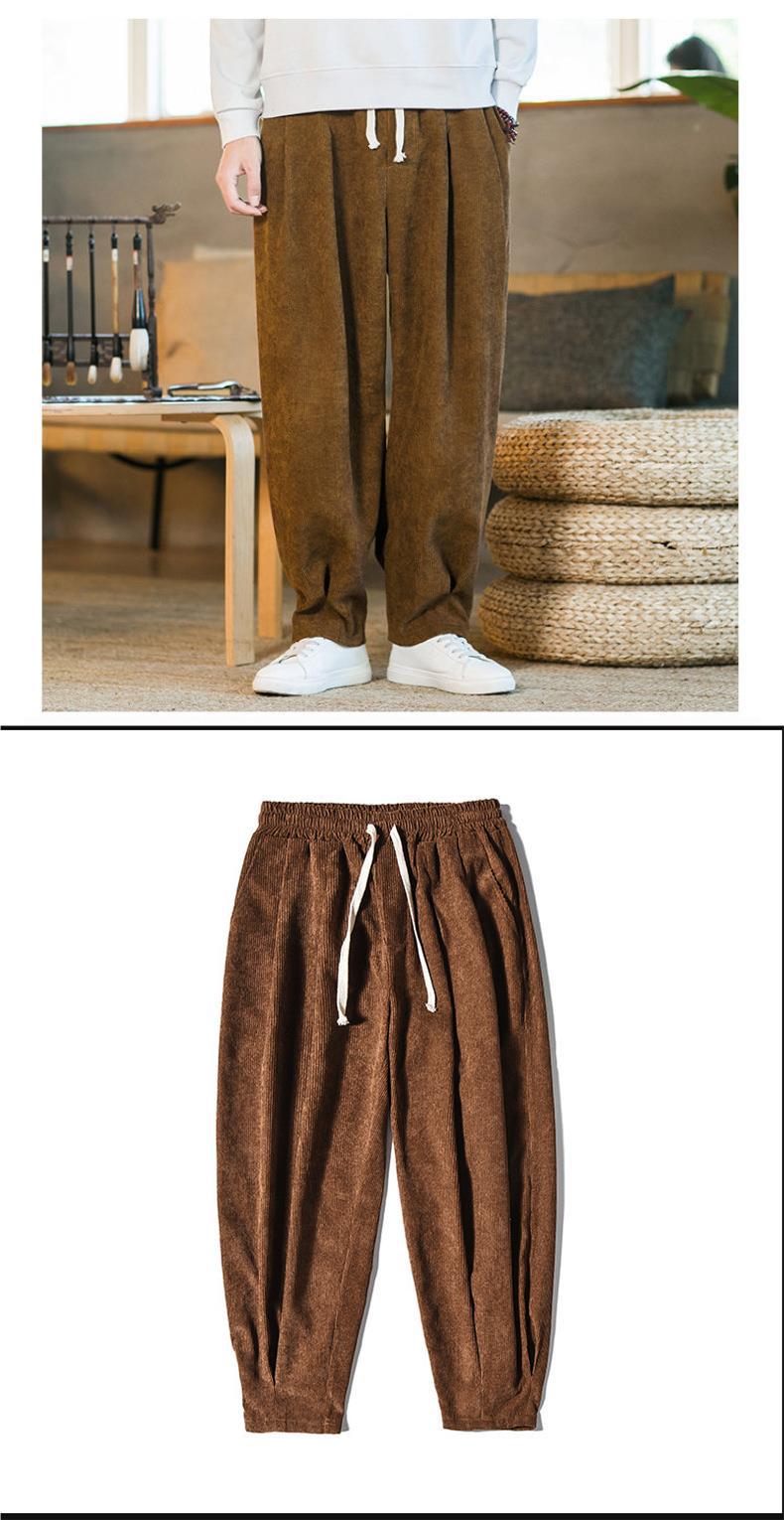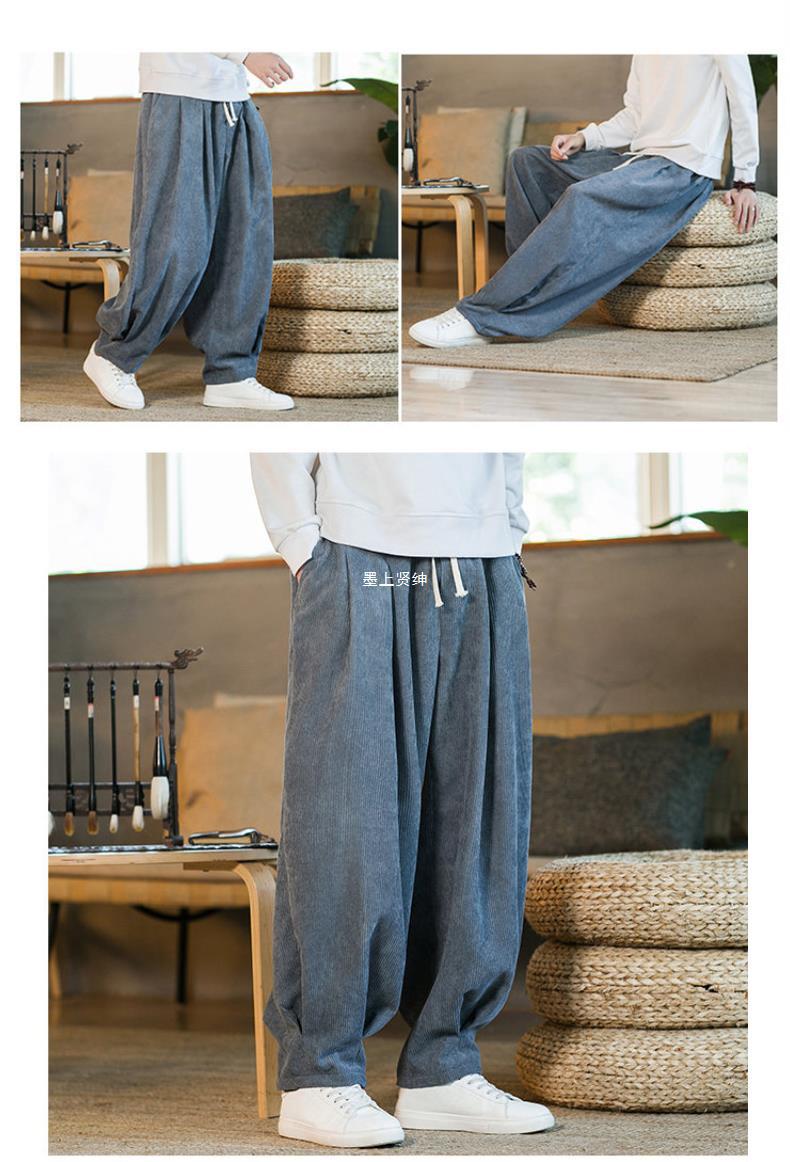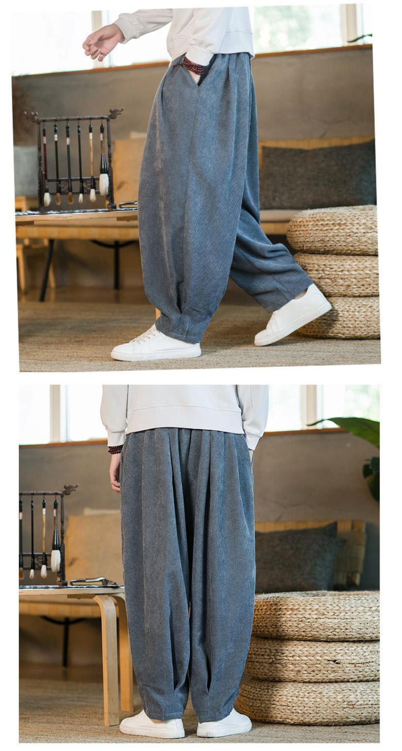 Invierno nuevos hombres de gran tamaño color sólido estilo chino pana más terciopelo engrosamiento pantalones sueltos pantalones casuales de pierna ancha de moda