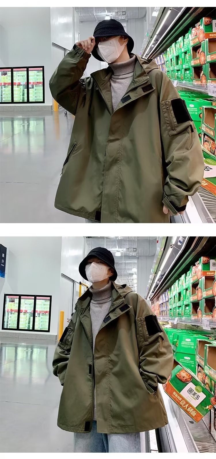 2024 nueva marca de moda de otoño chaqueta de herramientas retro americana chaqueta con capucha de todo fósforo de moda para hombres