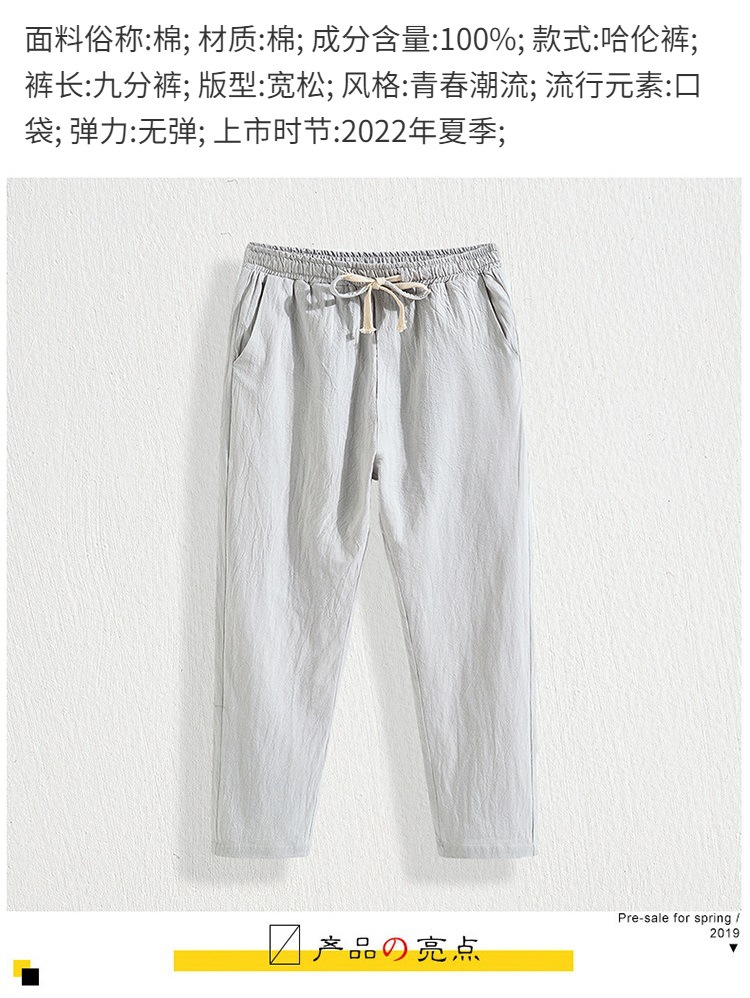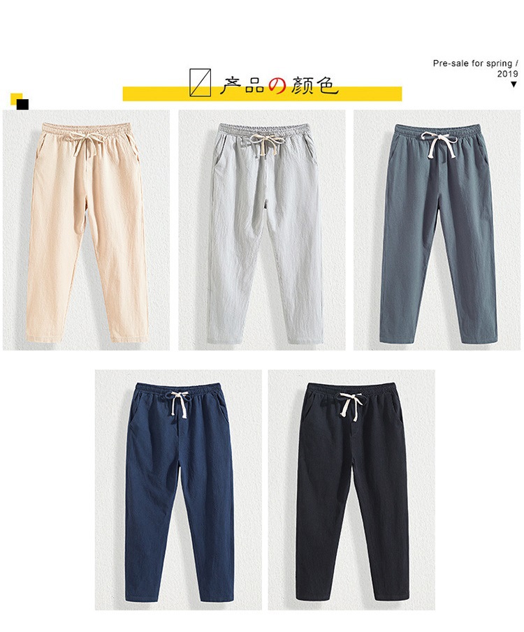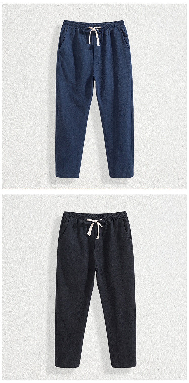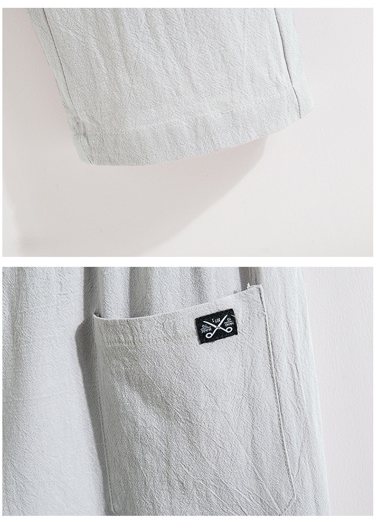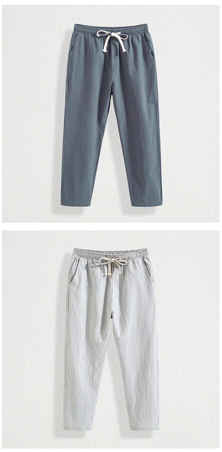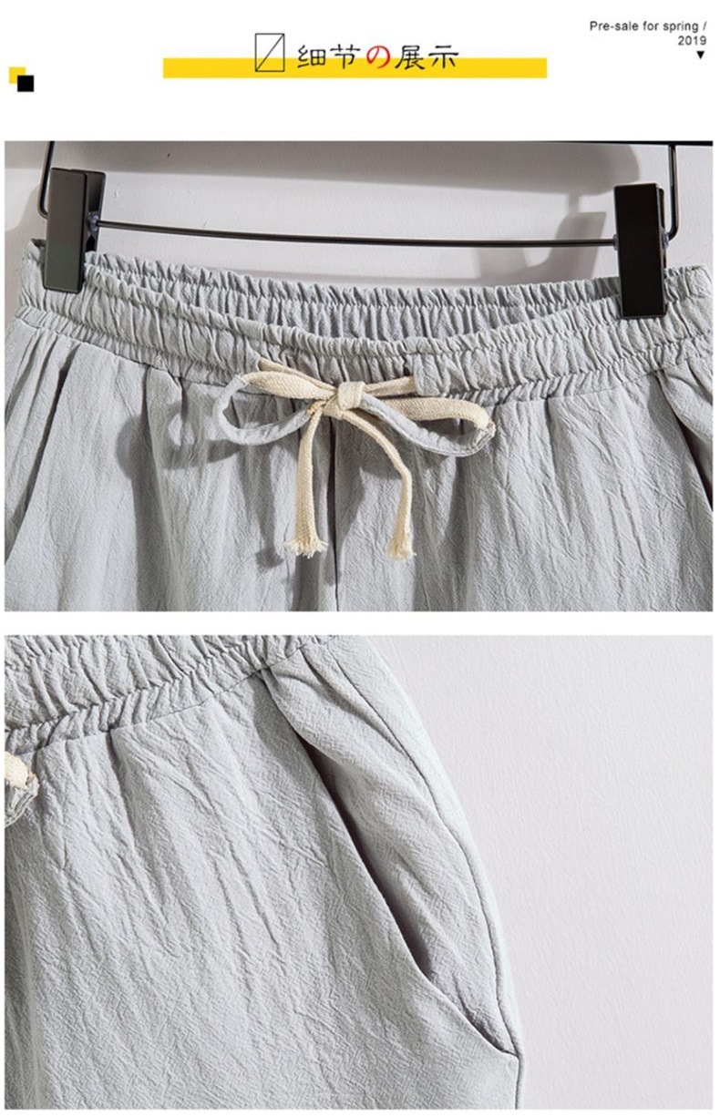 Pantalones cortos de lino casual para hombre, algodón de verano ancho y elástico, material de lino, tubo recto y lavado de grasa, pantalones largos simples de talla grande