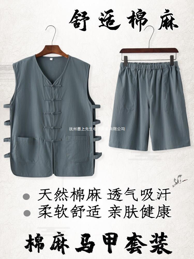 Traje Tang, traje de chaleco para hombres de mediana edad y ancianos, traje de papá para hombres de verano, chaleco de verano para ancianos, ropa de abuelo Hanfu