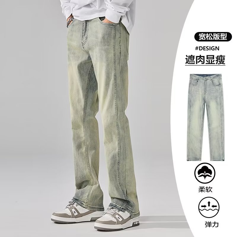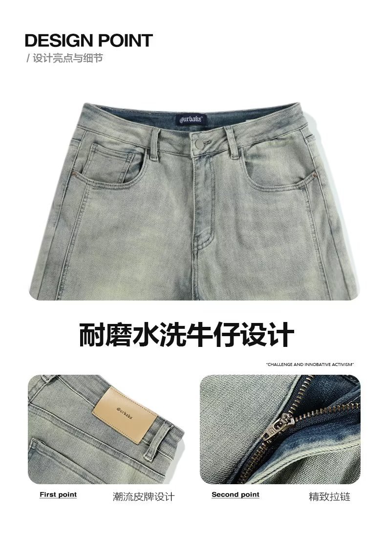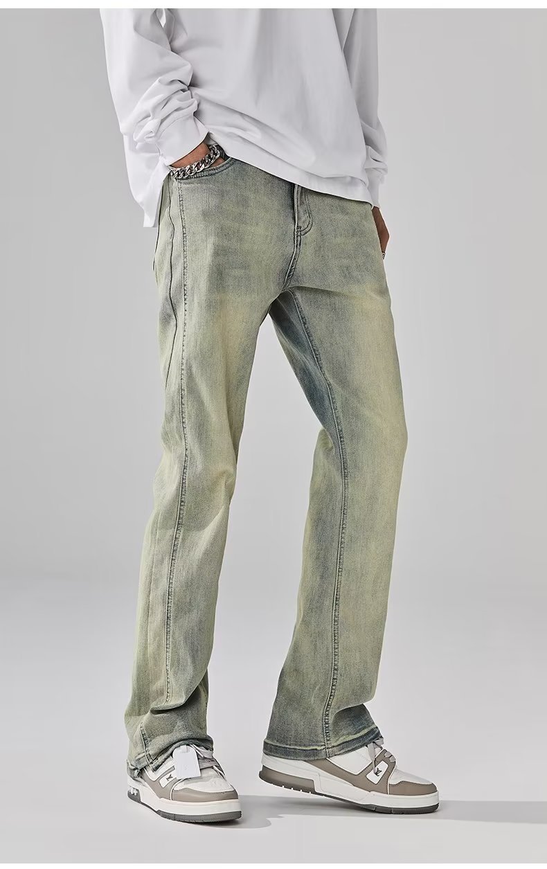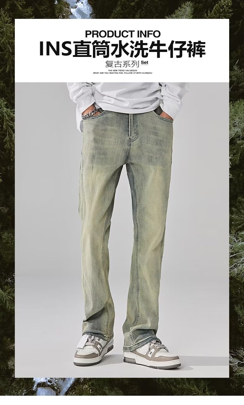 Vaqueros de moda anticuados lavados en la calle americana, pantalones largos de estilo vibe rectos sueltos de primavera y otoño para hombres