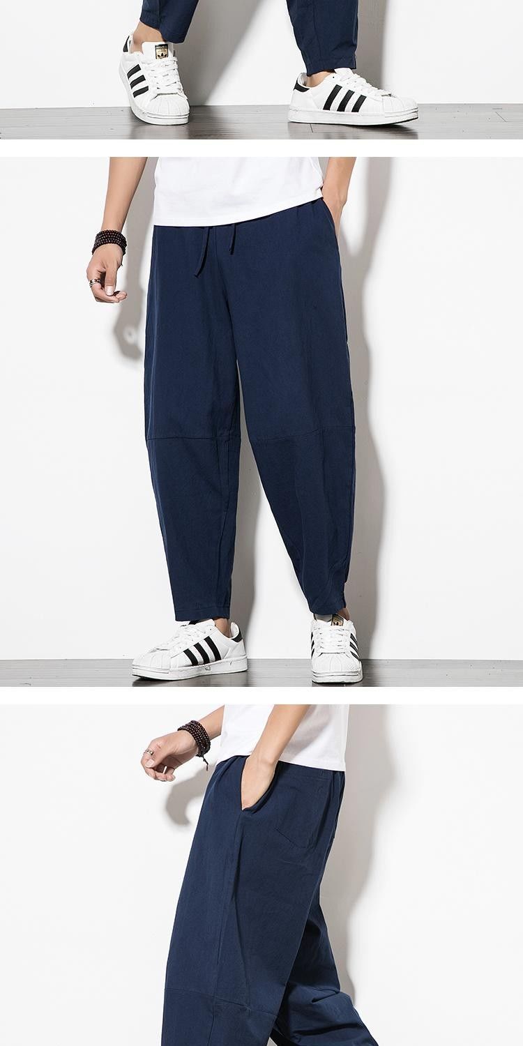 Pantalones de zanahoria, pantalones harem sueltos para hombre, pantalones finos de verano de nueve puntos, pantalones casuales de todo fósforo de tendencia, pantalones de hombre
