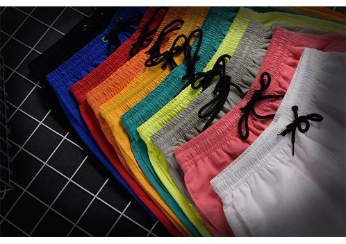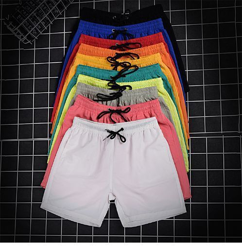 Pantalones de cuatro puntos Pantalones cortos casuales de verano para hombres Pantalones de playa de color caramelo para hombres de moda Pantalones de tres puntos deportivos sueltos de secado rápido