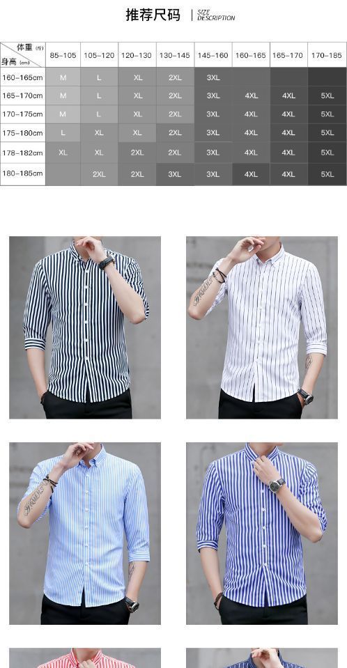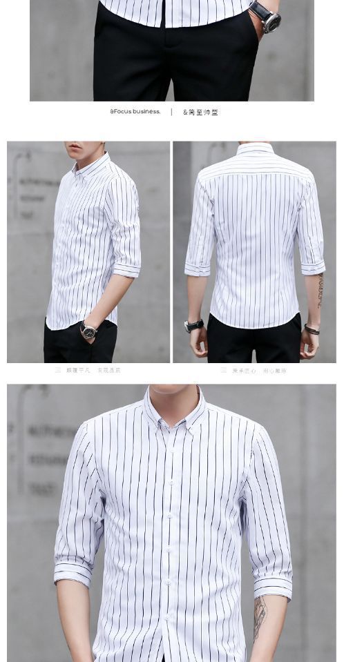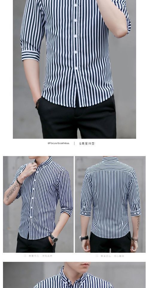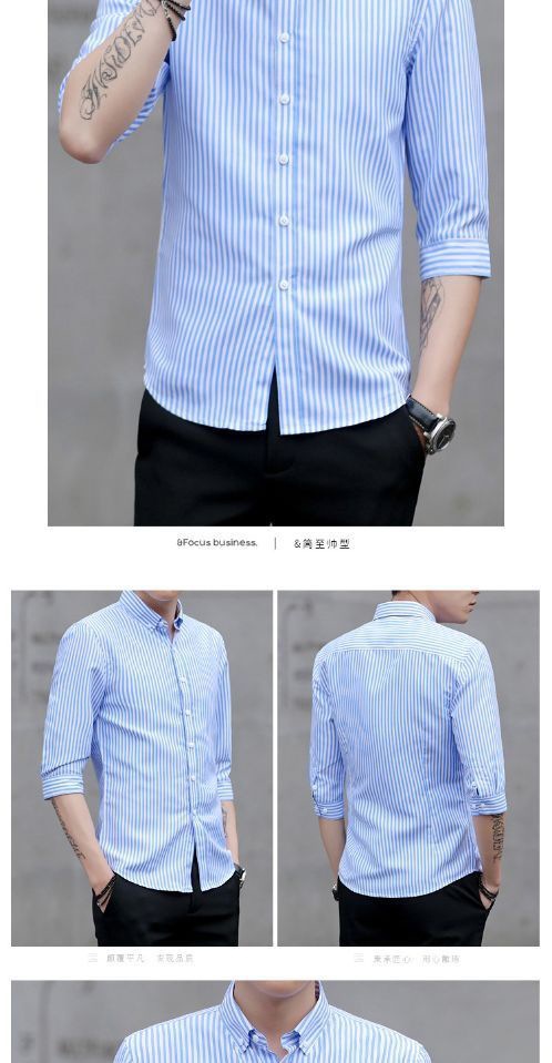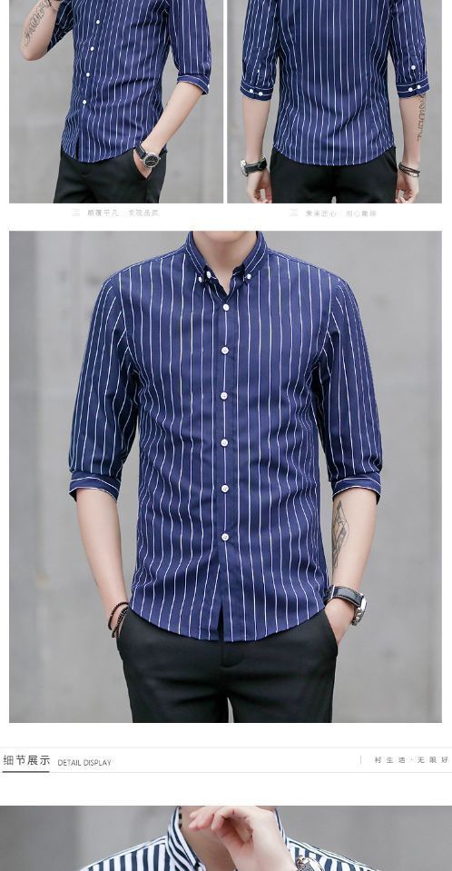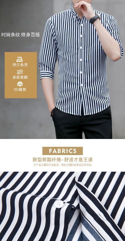Verano nuevo estilo camisa de manga media para hombre camisa delgada a rayas de todo fósforo camisa delgada de manga corta camisa de pulgadas de siete a cinco mangas de moda para hombre