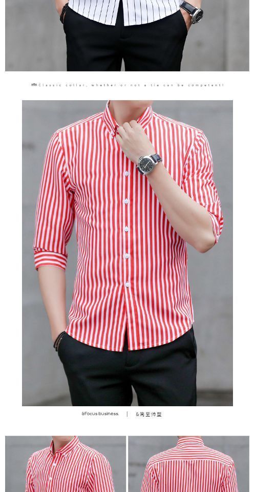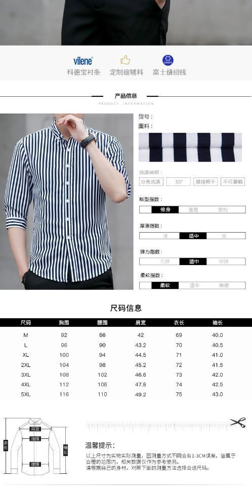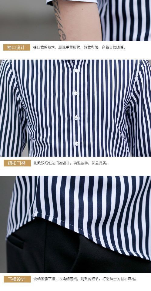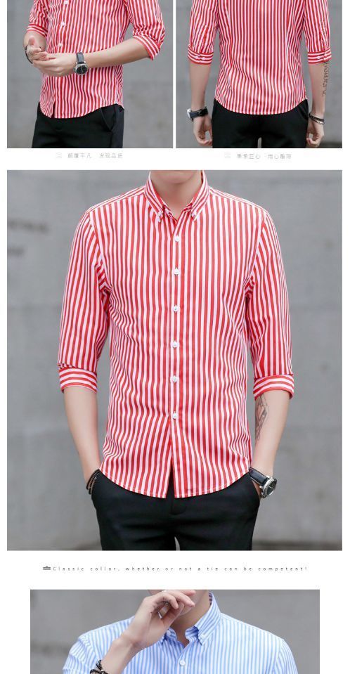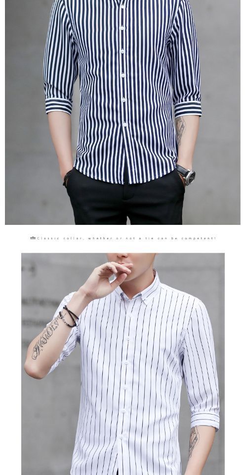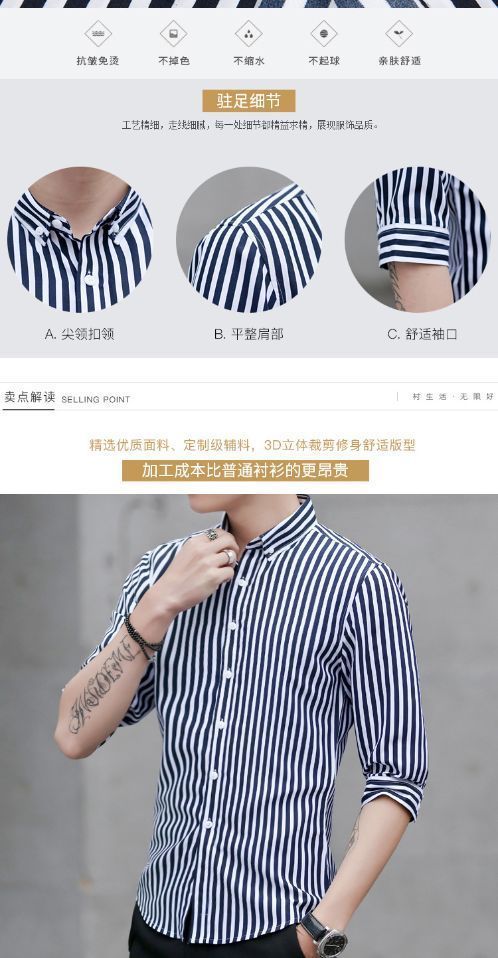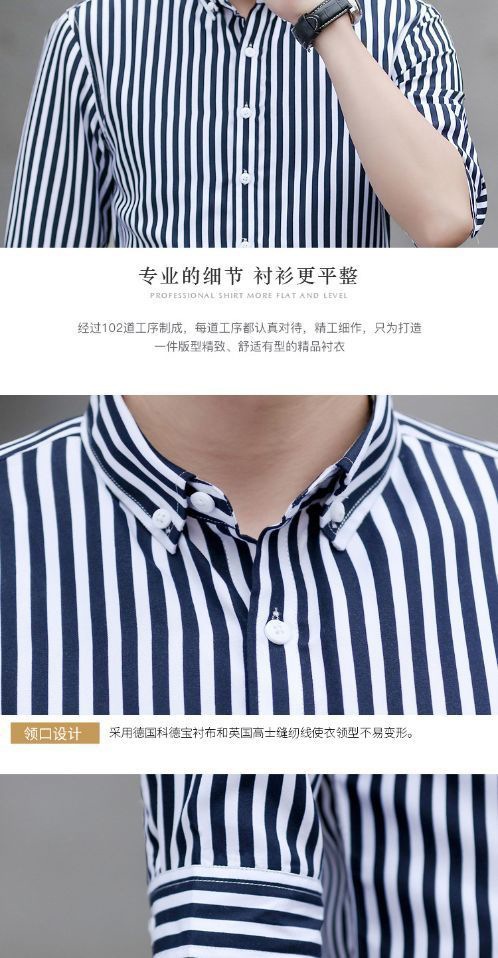 Verano nuevo estilo camisa de manga media para hombre camisa delgada a rayas de todo fósforo camisa delgada de manga corta camisa de pulgadas de siete a cinco mangas de moda para hombre
