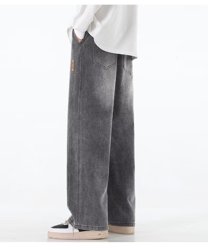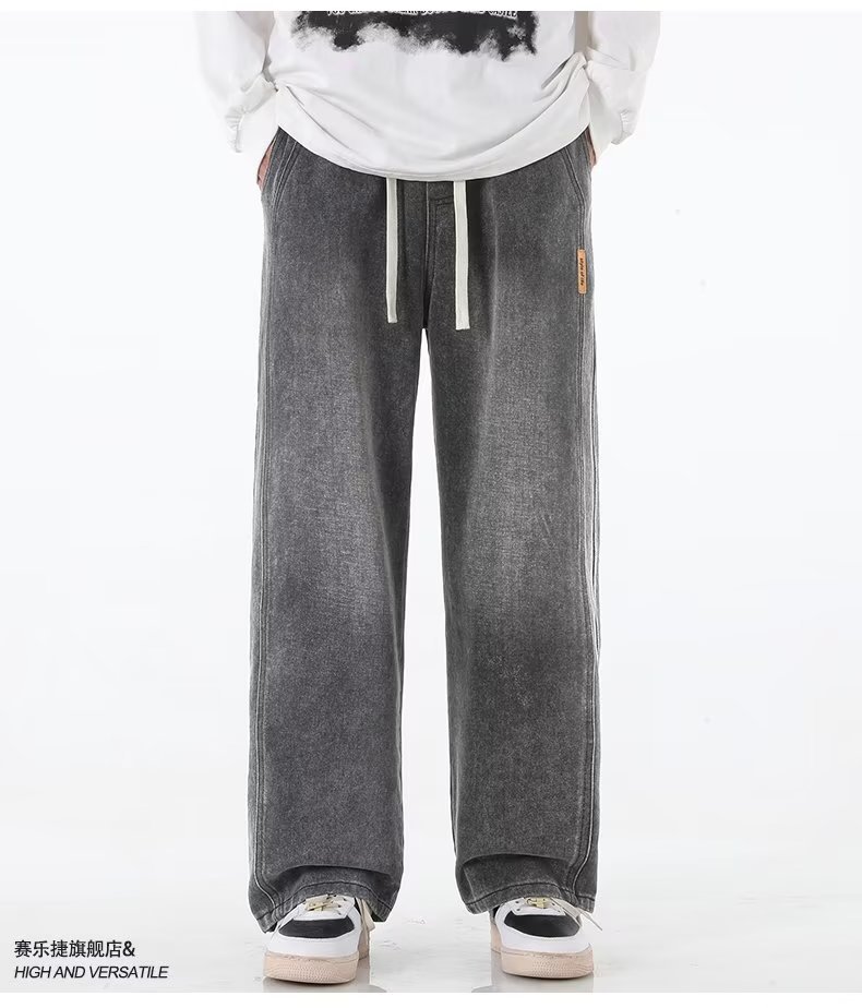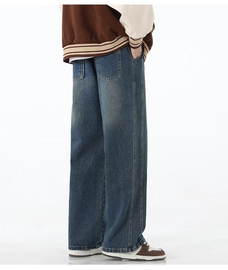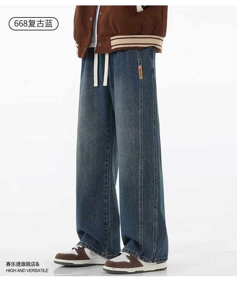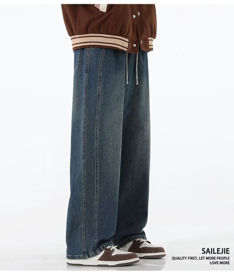 Vintage americano lavado 2024 primavera y otoño jeans pesados marca de moda ins pantalones anchos sueltos rectos para hombres de la calle