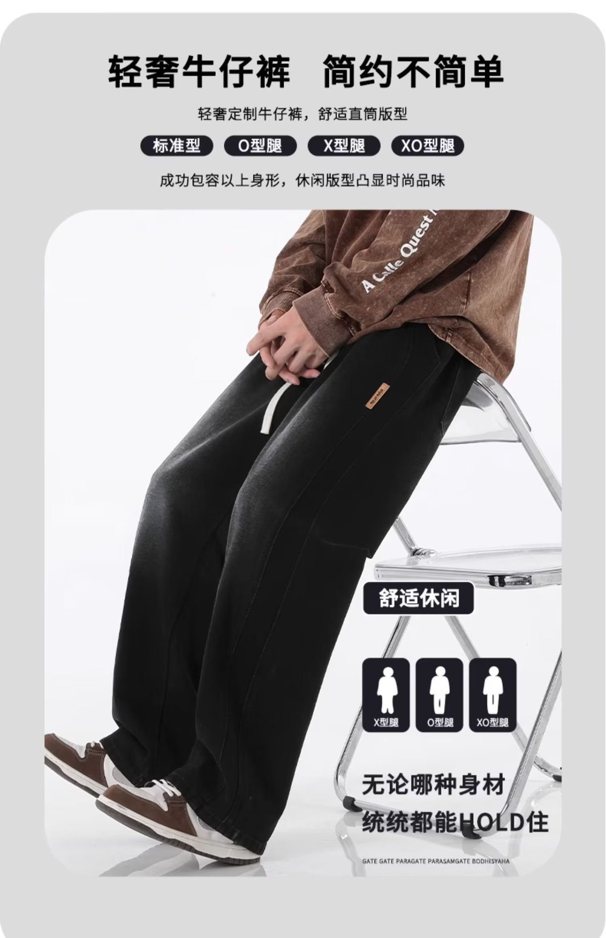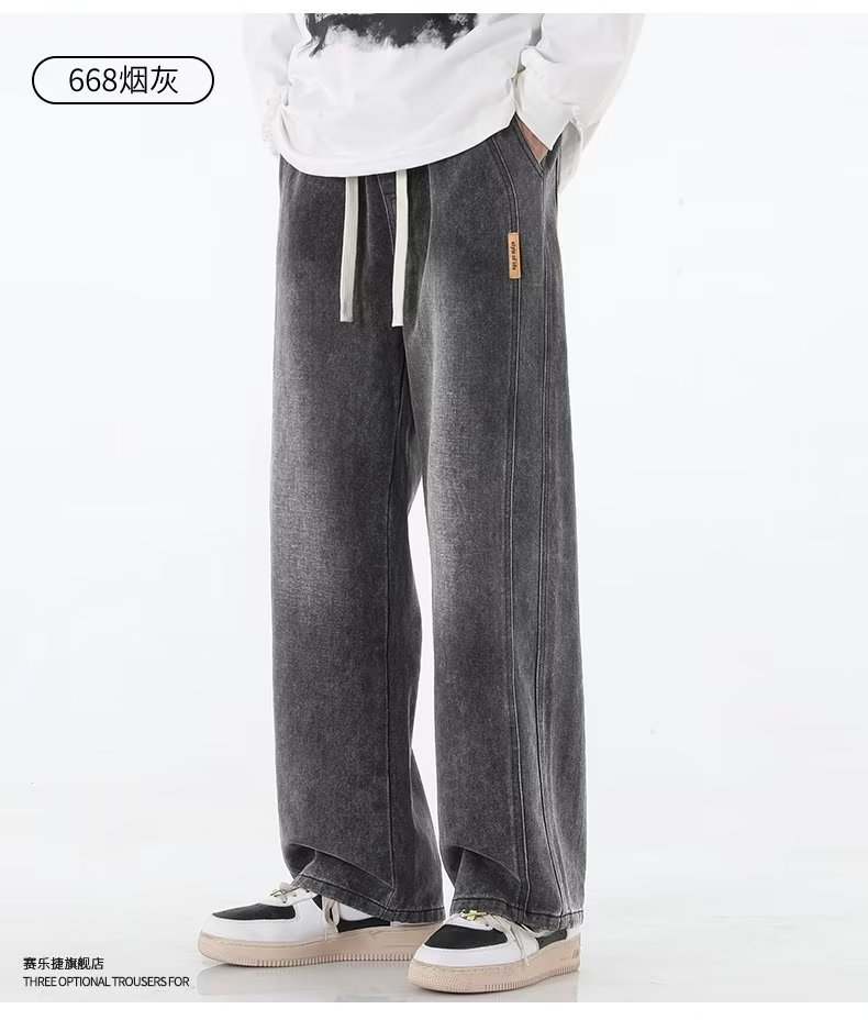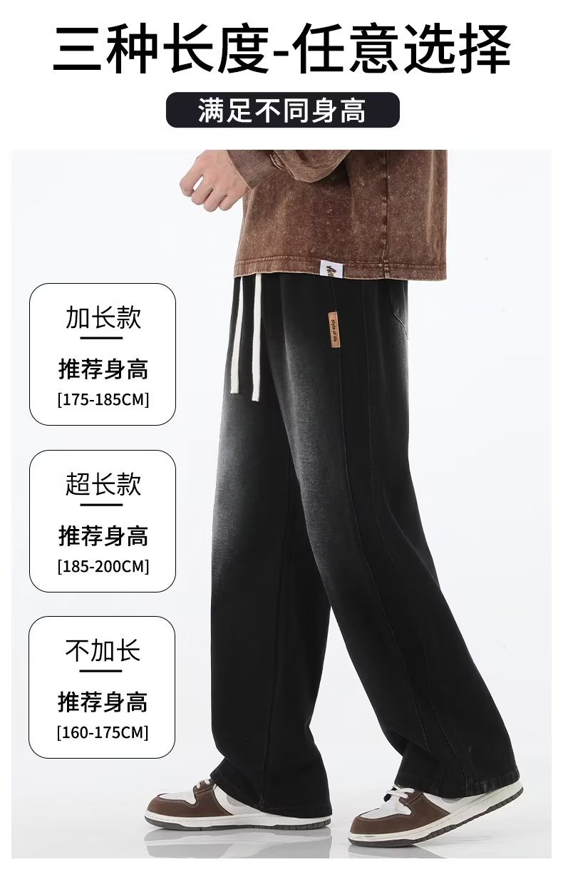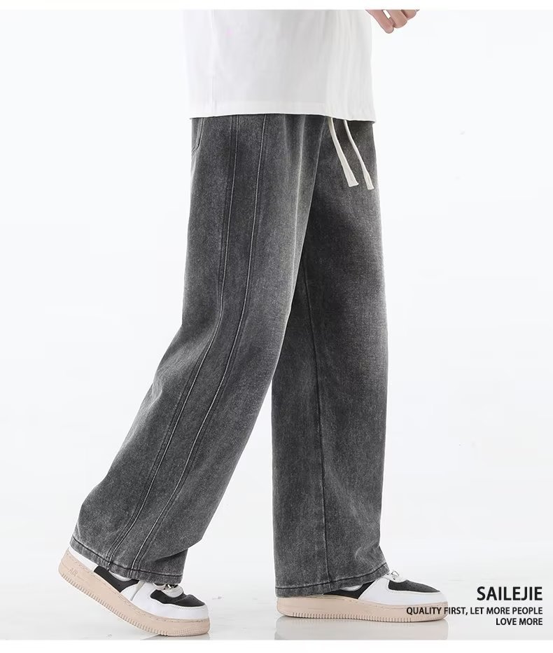 Vintage americano lavado 2024 primavera y otoño jeans pesados marca de moda ins pantalones anchos sueltos rectos para hombres de la calle
