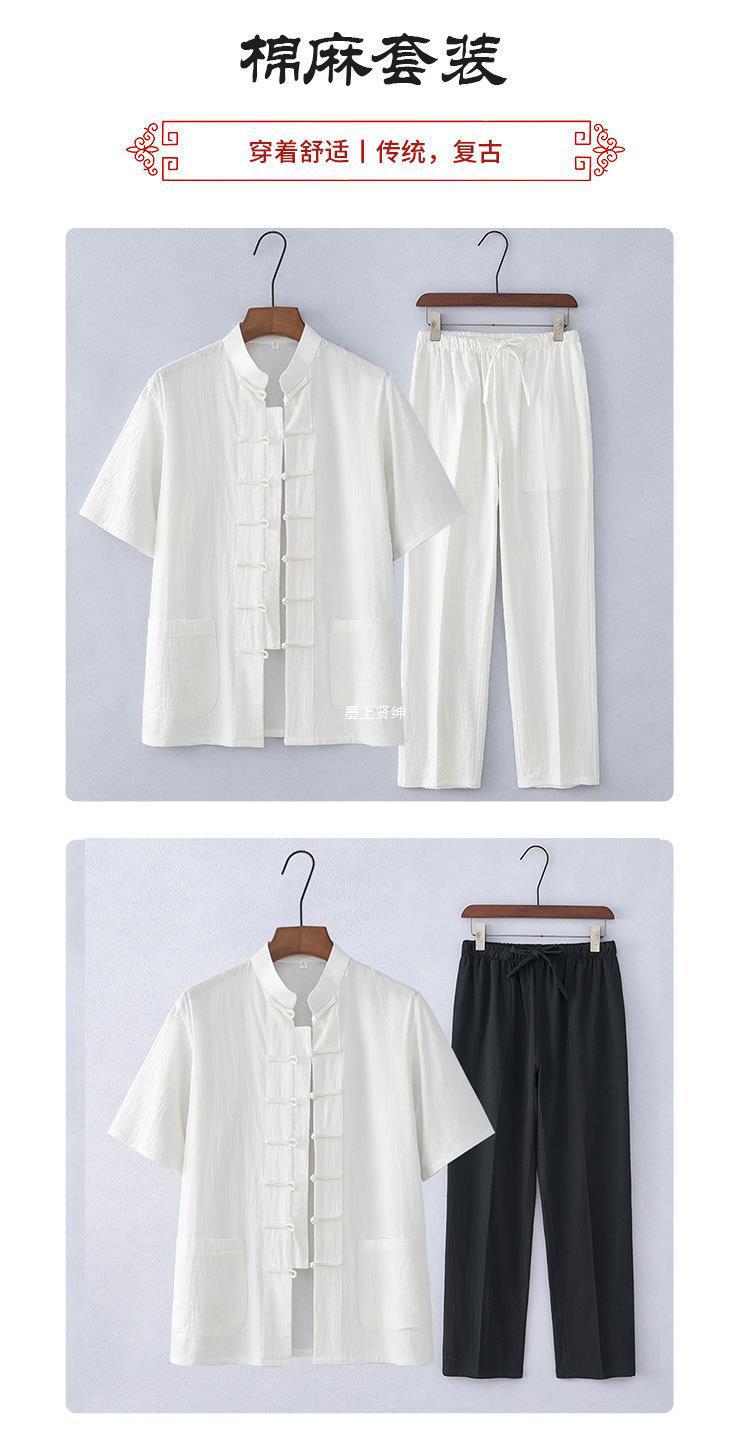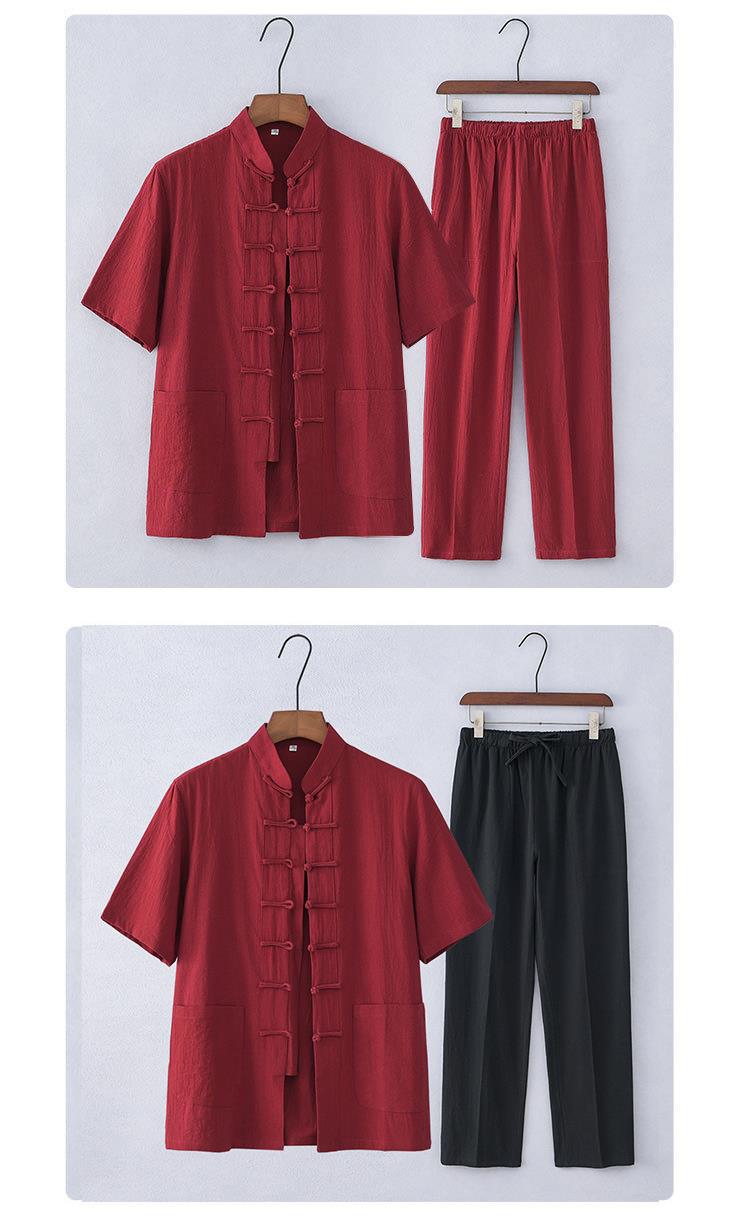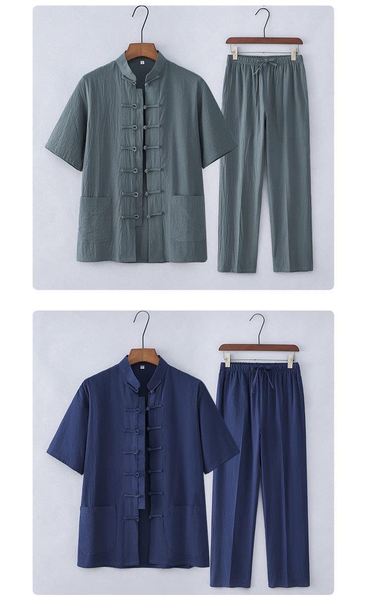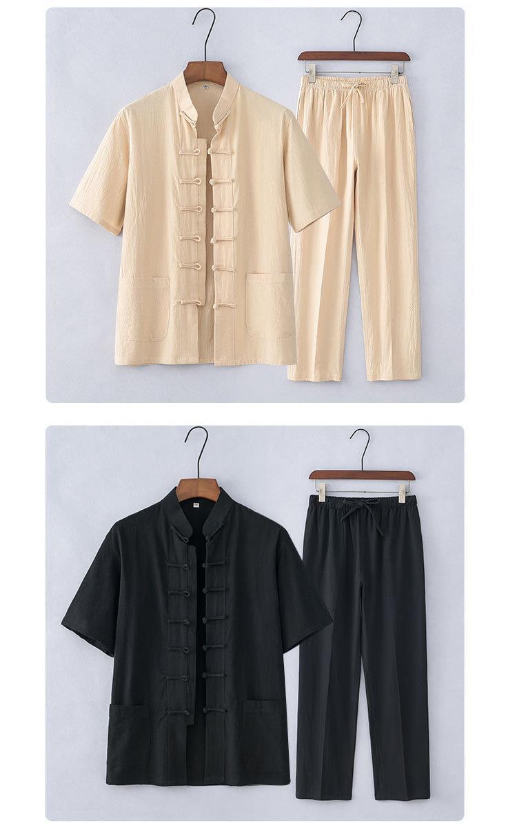 Traje Tang de estilo chino Traje de manga corta de algodón y lino para hombres de mediana edad y ancianos Traje Hanfu casual para hombres retro Traje delgado de verano