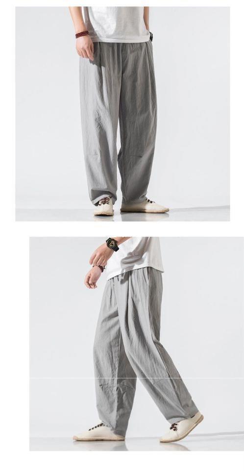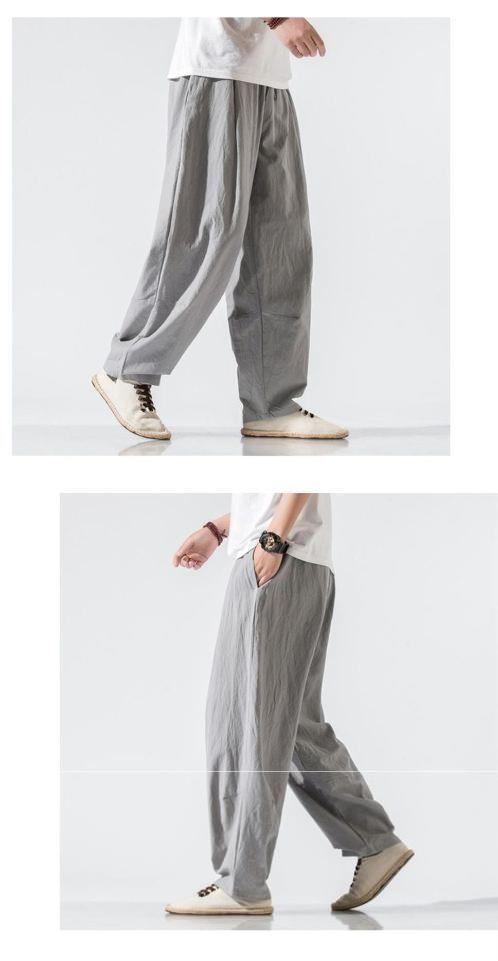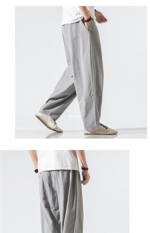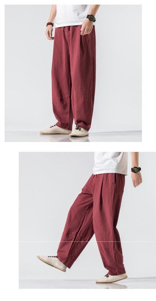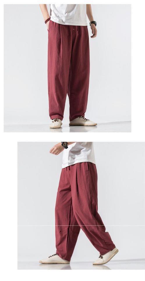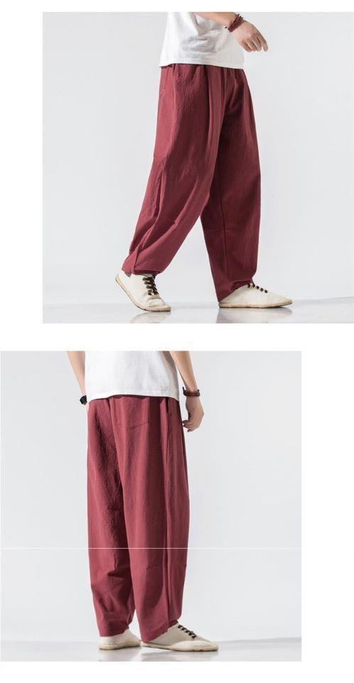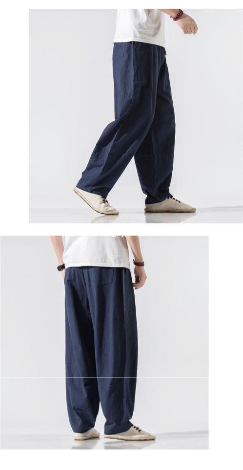 Pantalones de lino de traje Tang de estilo chino para hombres Pantalones de harén de pierna ancha de gran tamaño sueltos casuales para hombres Pantalones de linterna para jóvenes
