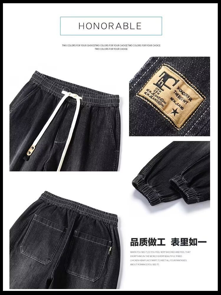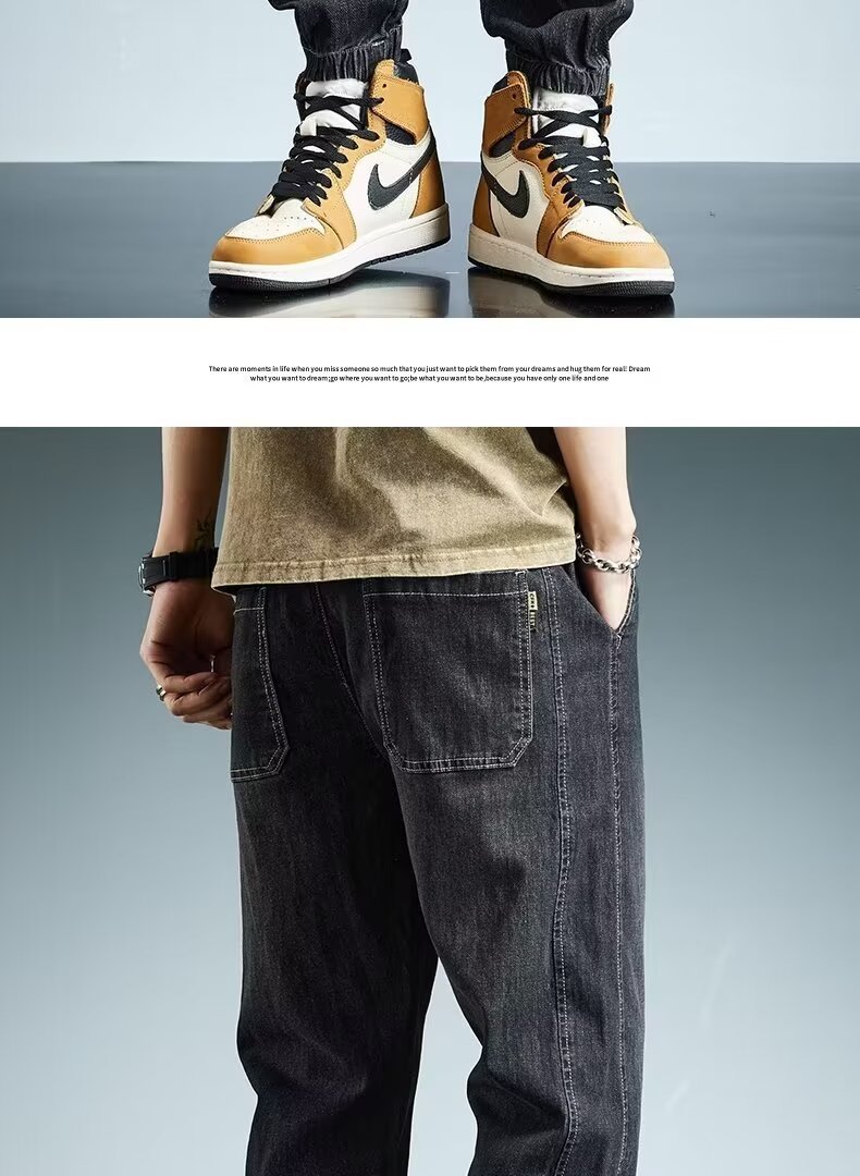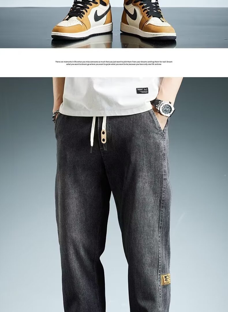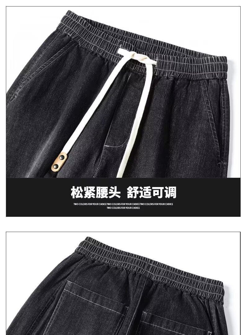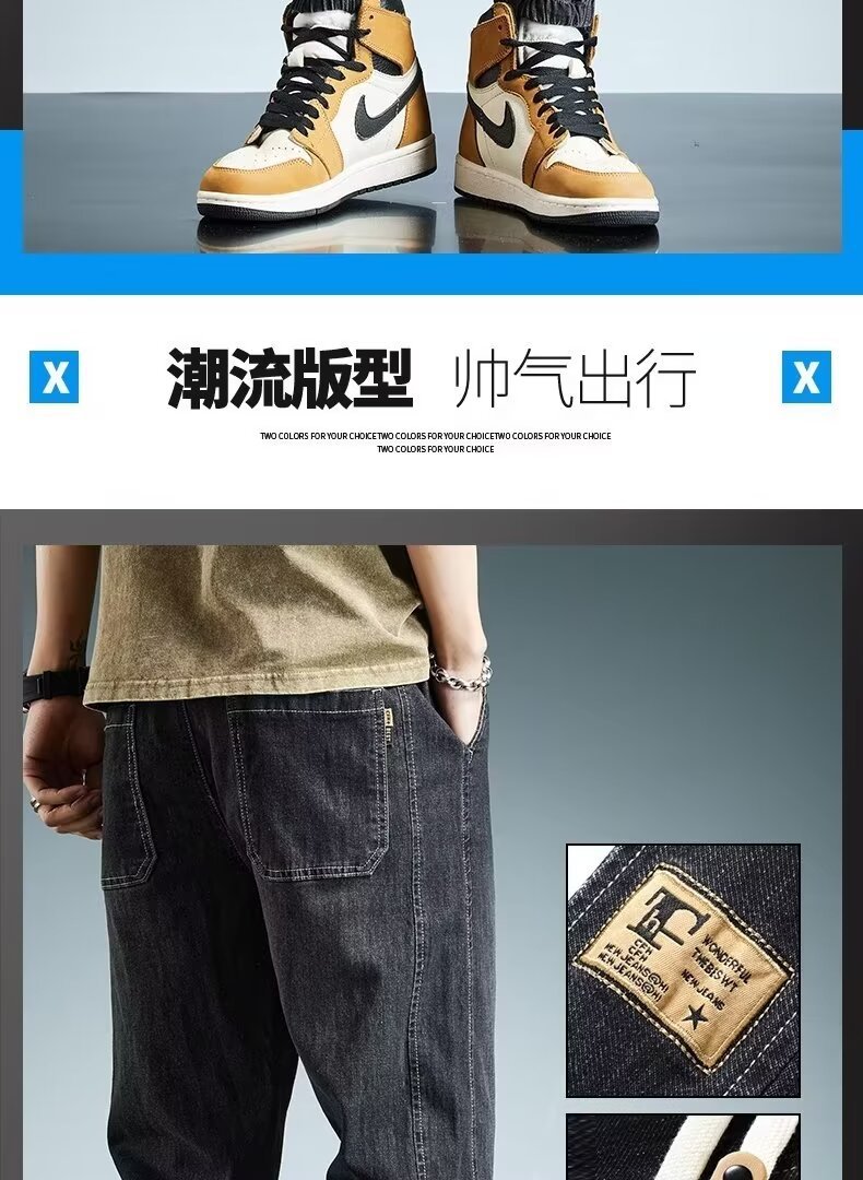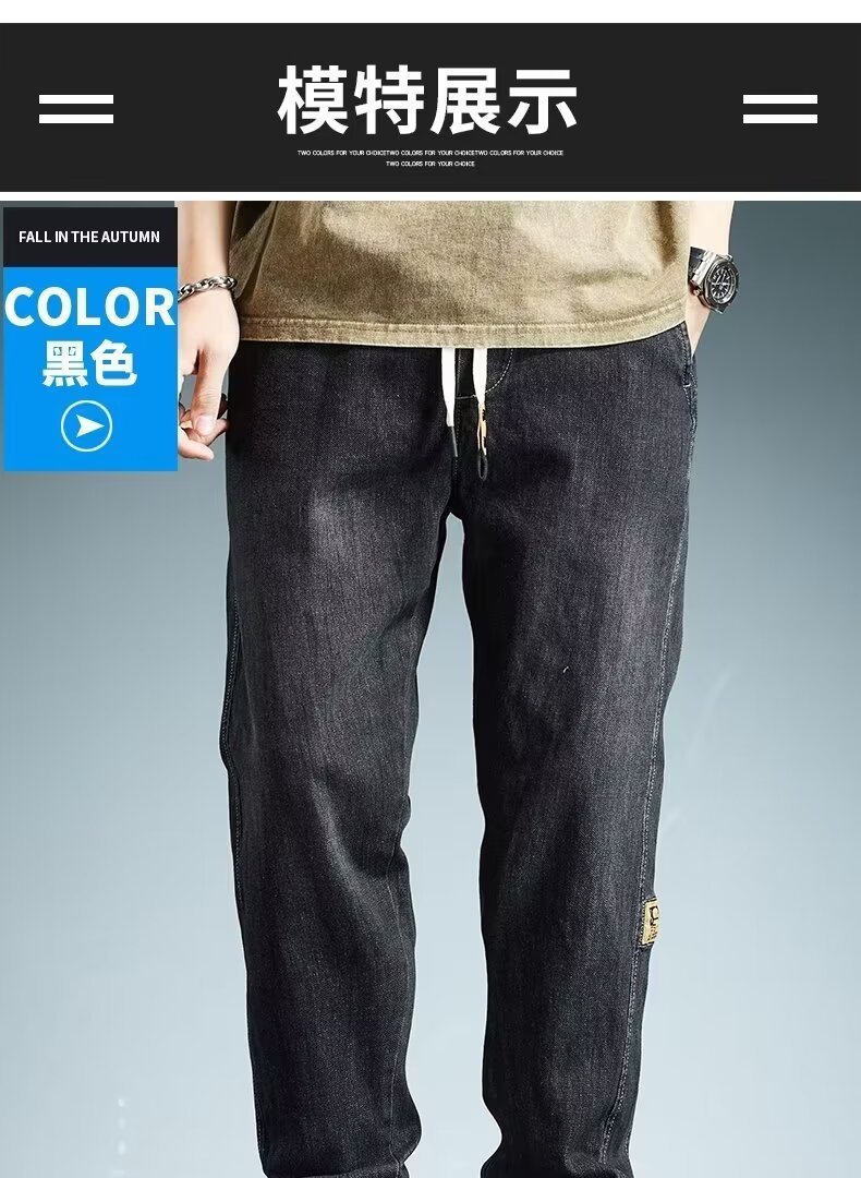 2024 primavera y otoño pantalones vaqueros de cintura elástica todo fósforo para hombres, pantalones de pierna ancha rectos sueltos para adolescentes de la calle principal