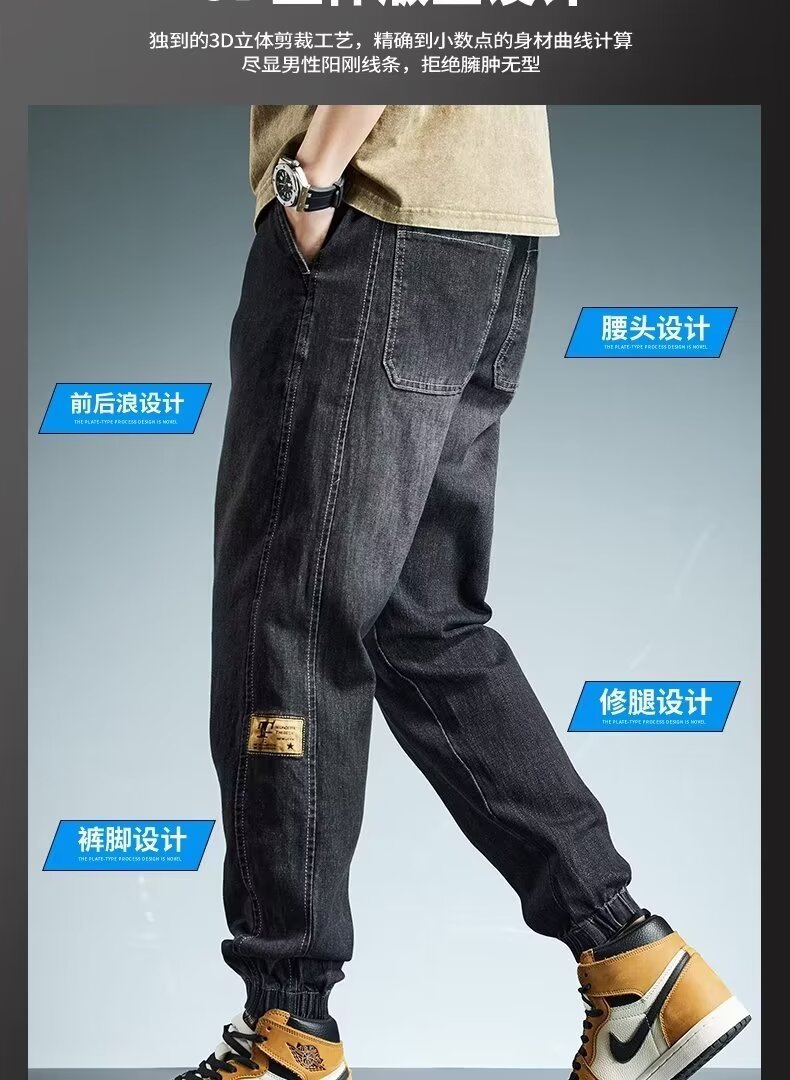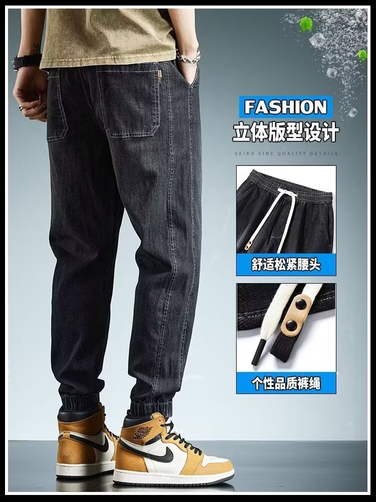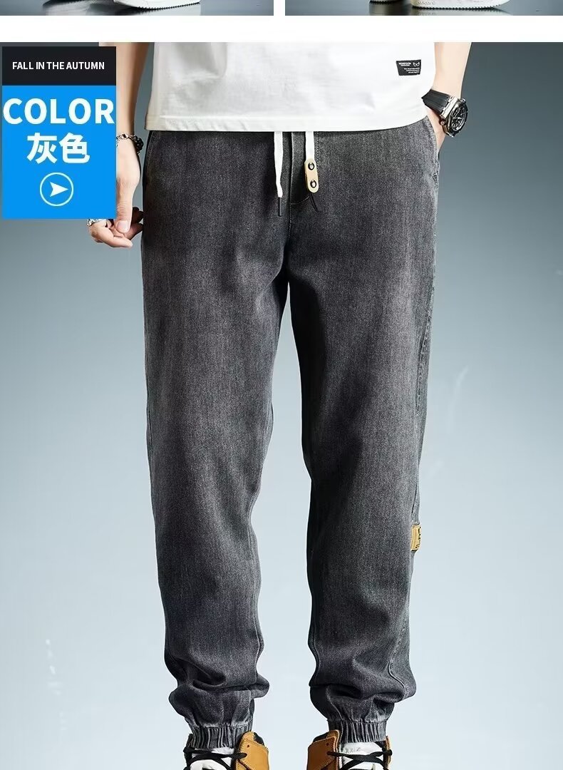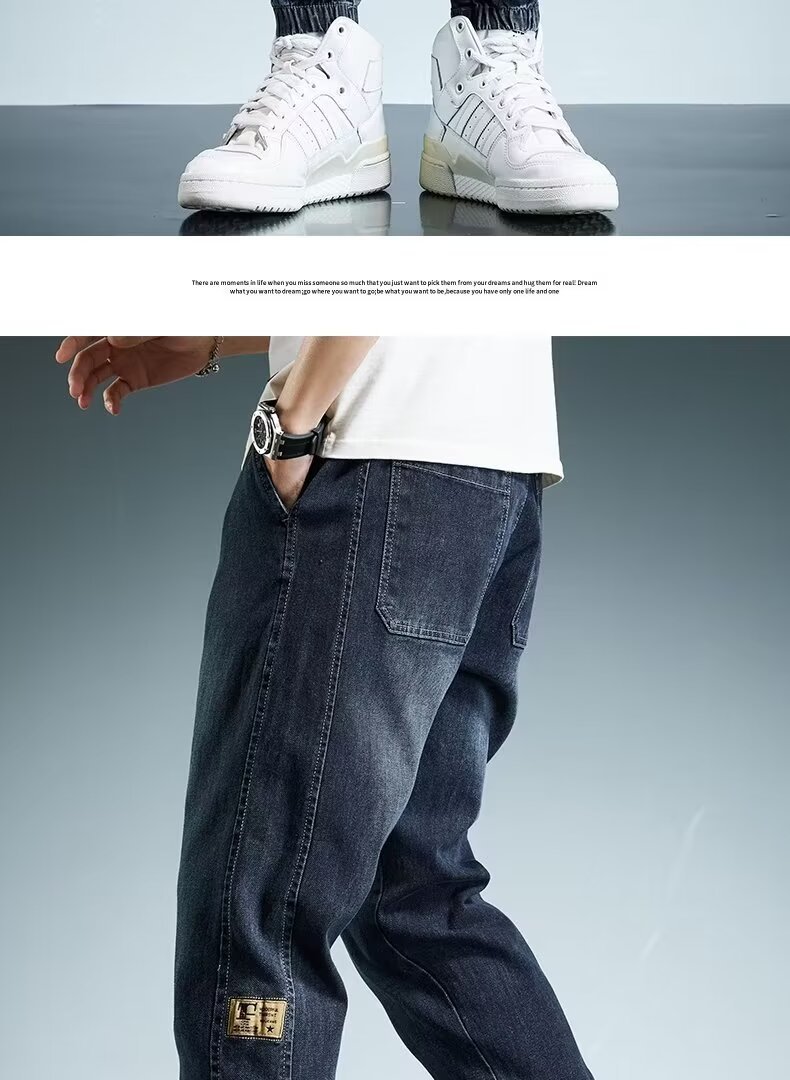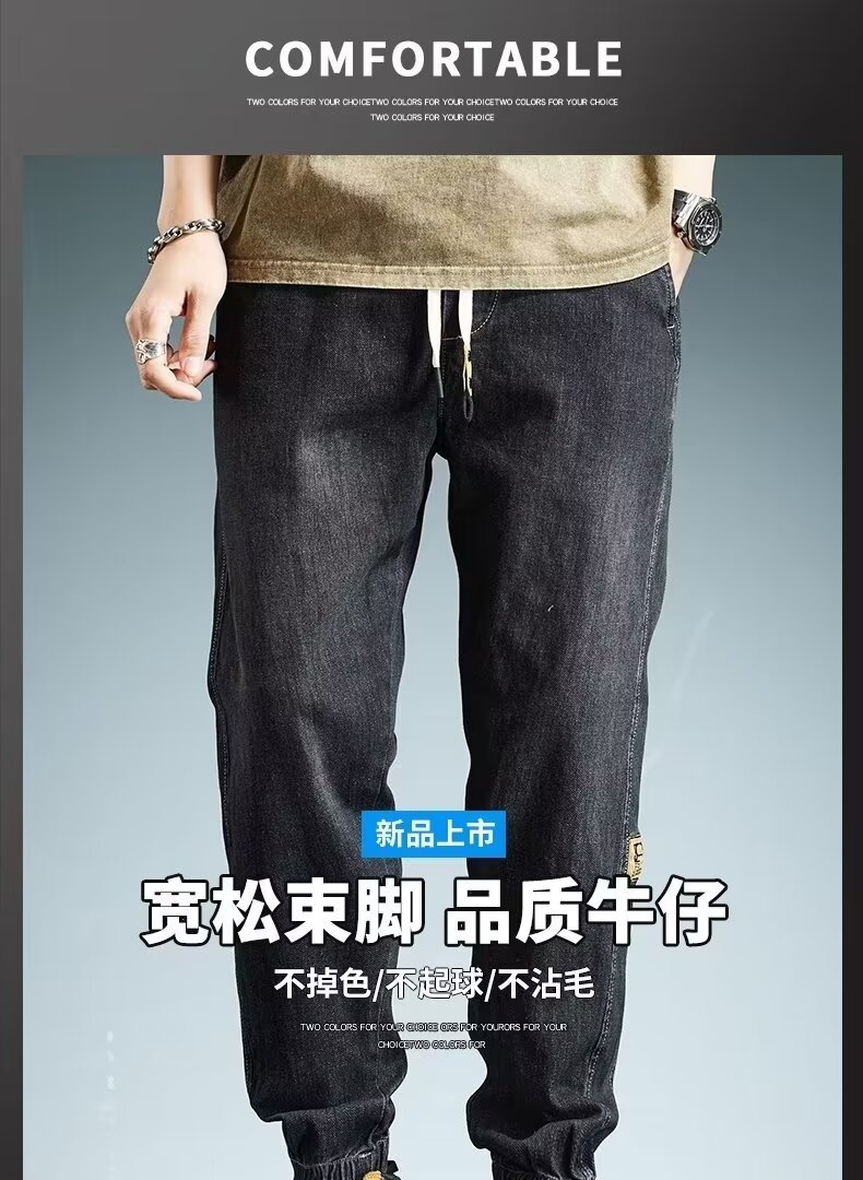 2024 primavera y otoño pantalones vaqueros de cintura elástica todo fósforo para hombres, pantalones de pierna ancha rectos sueltos para adolescentes de la calle principal