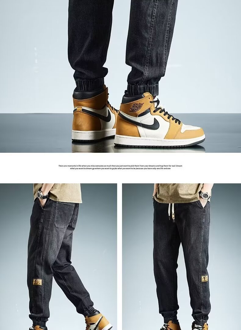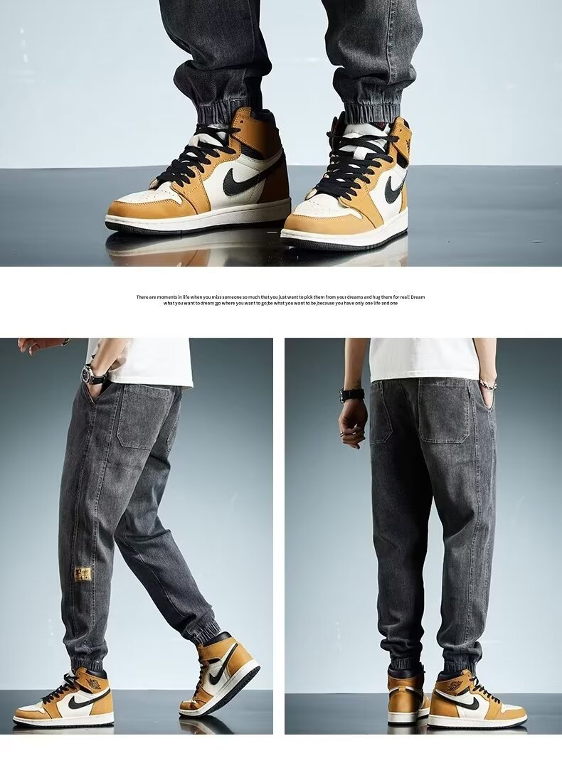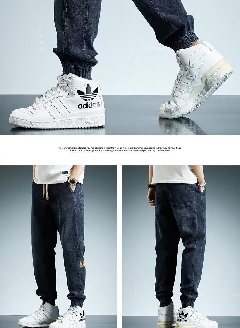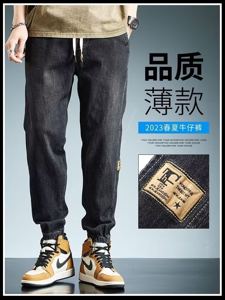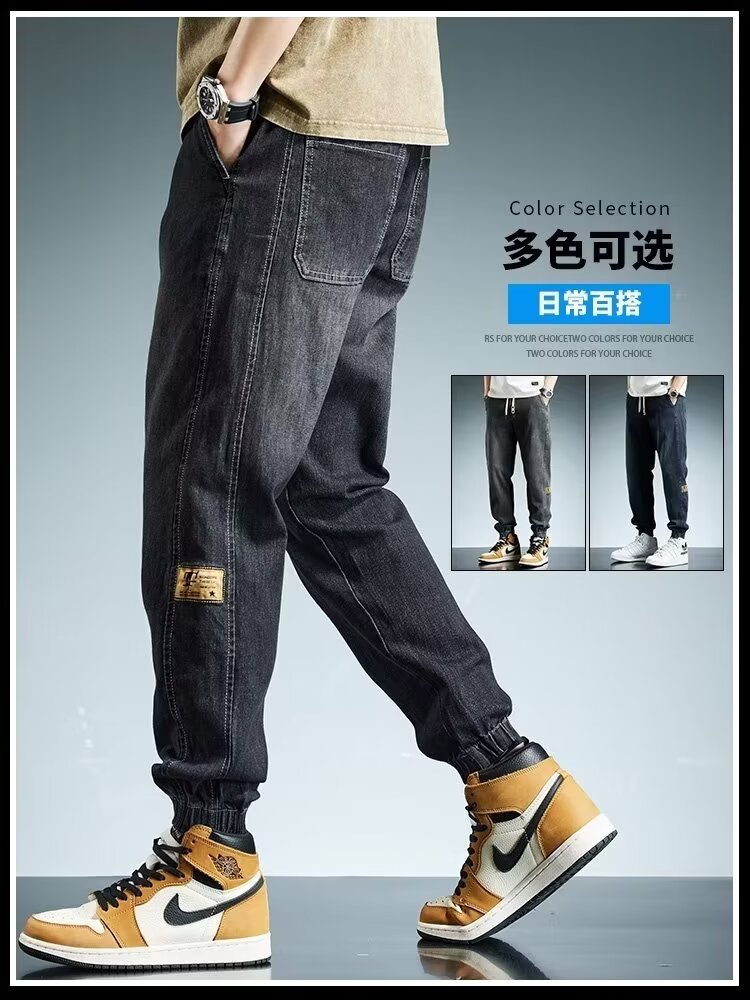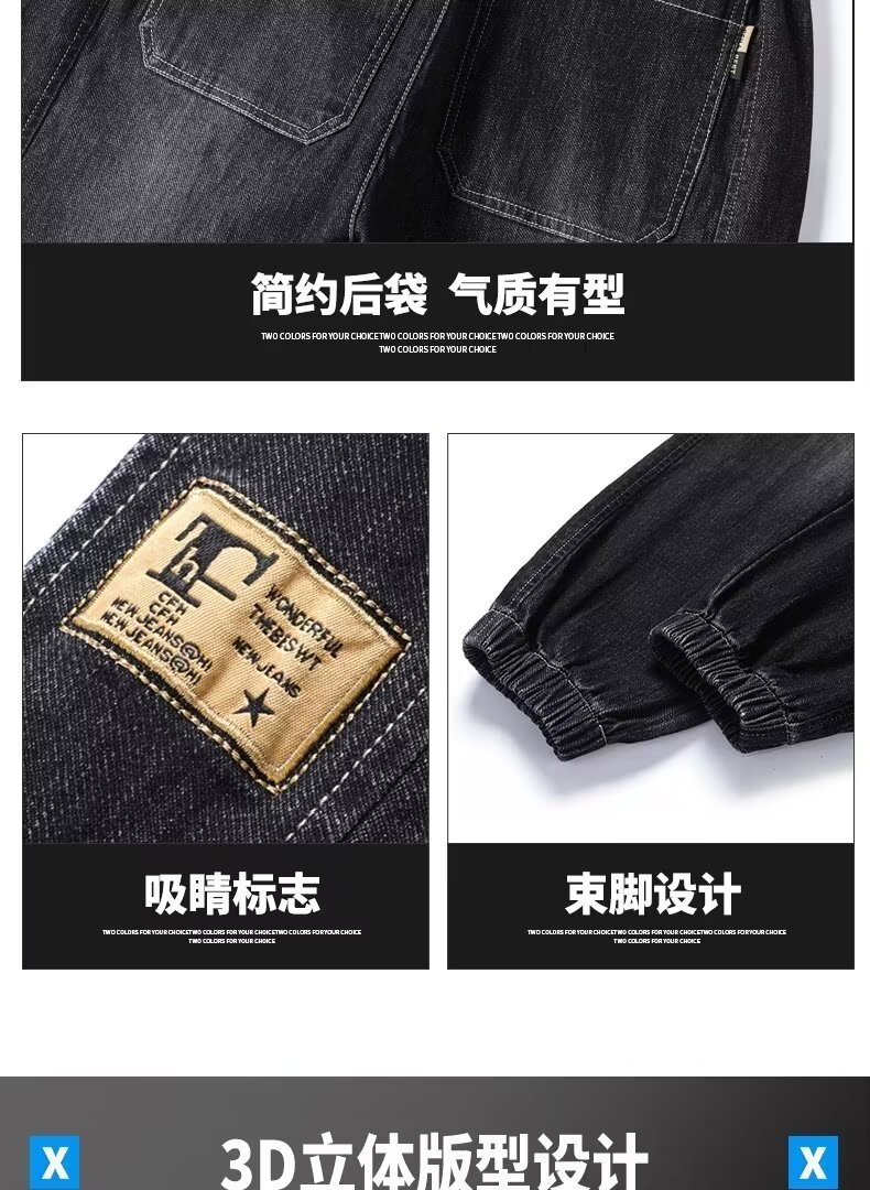 2024 primavera y otoño pantalones vaqueros de cintura elástica todo fósforo para hombres, pantalones de pierna ancha rectos sueltos para adolescentes de la calle principal