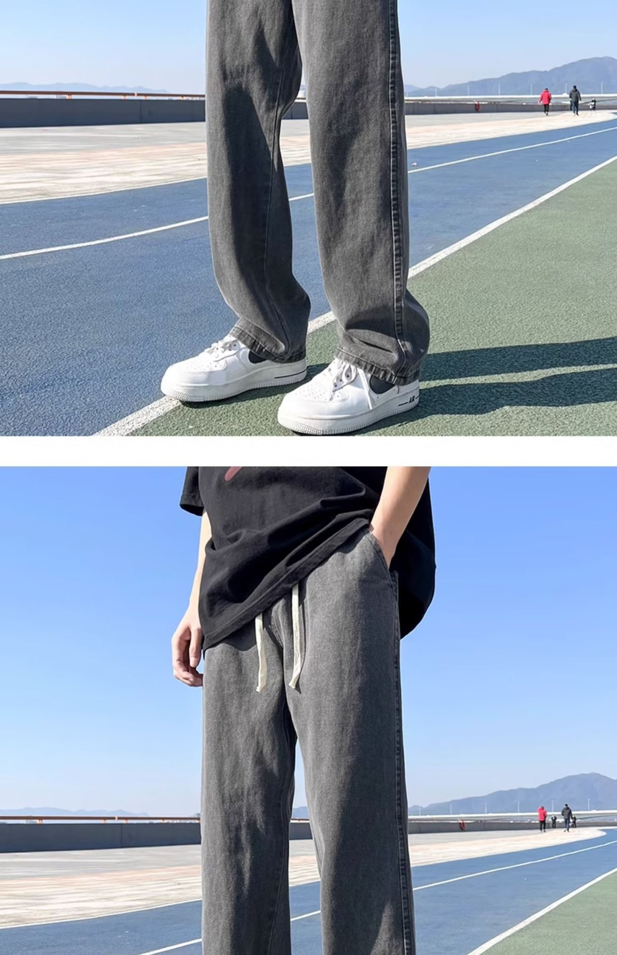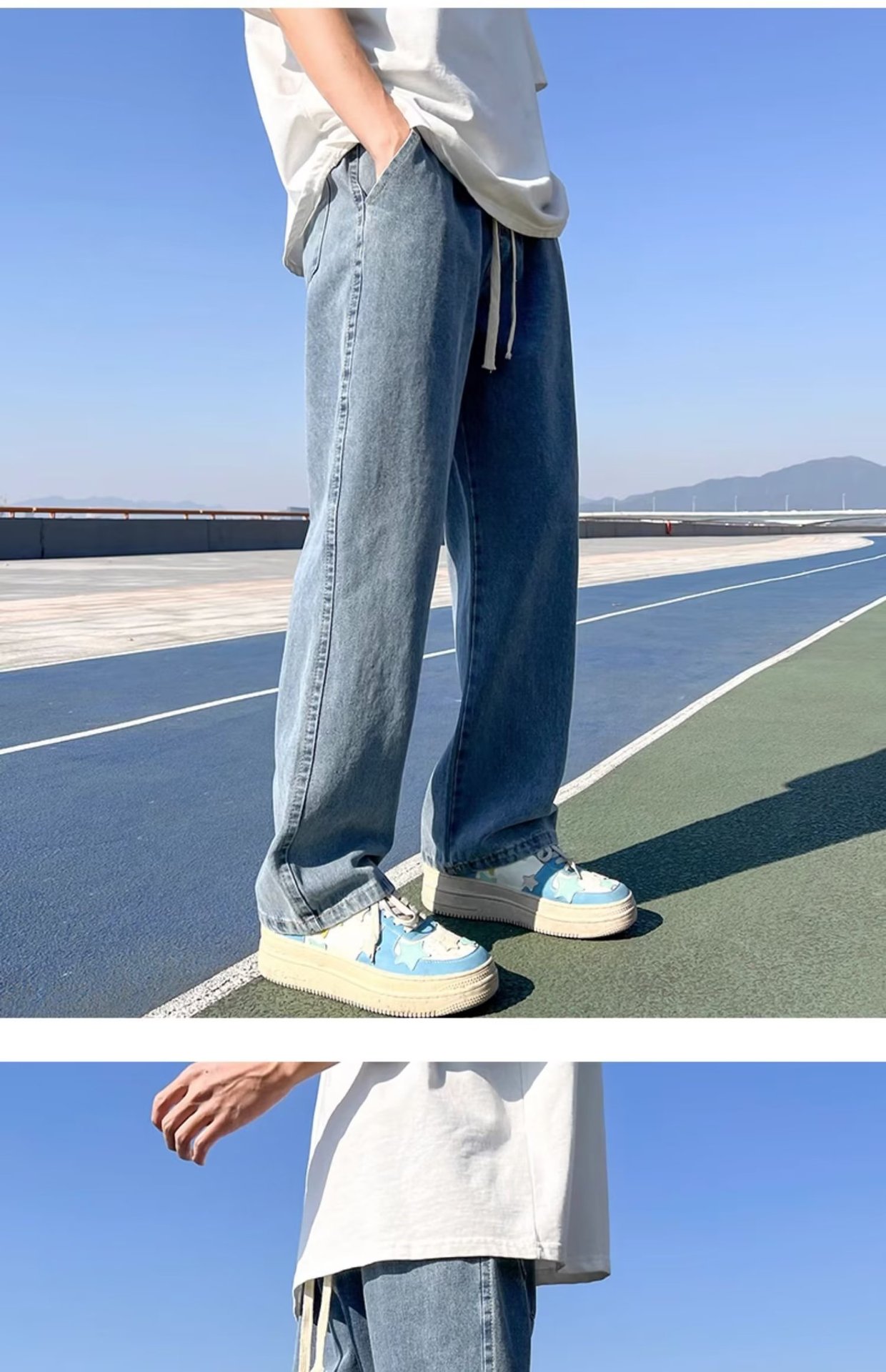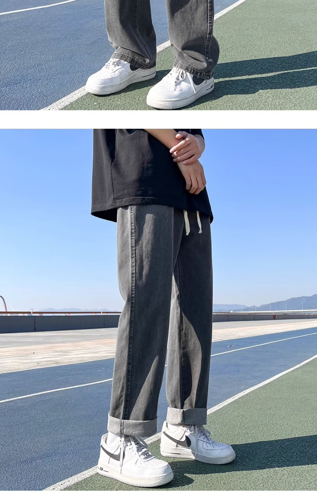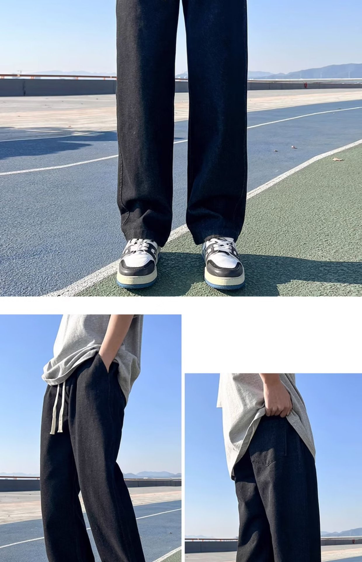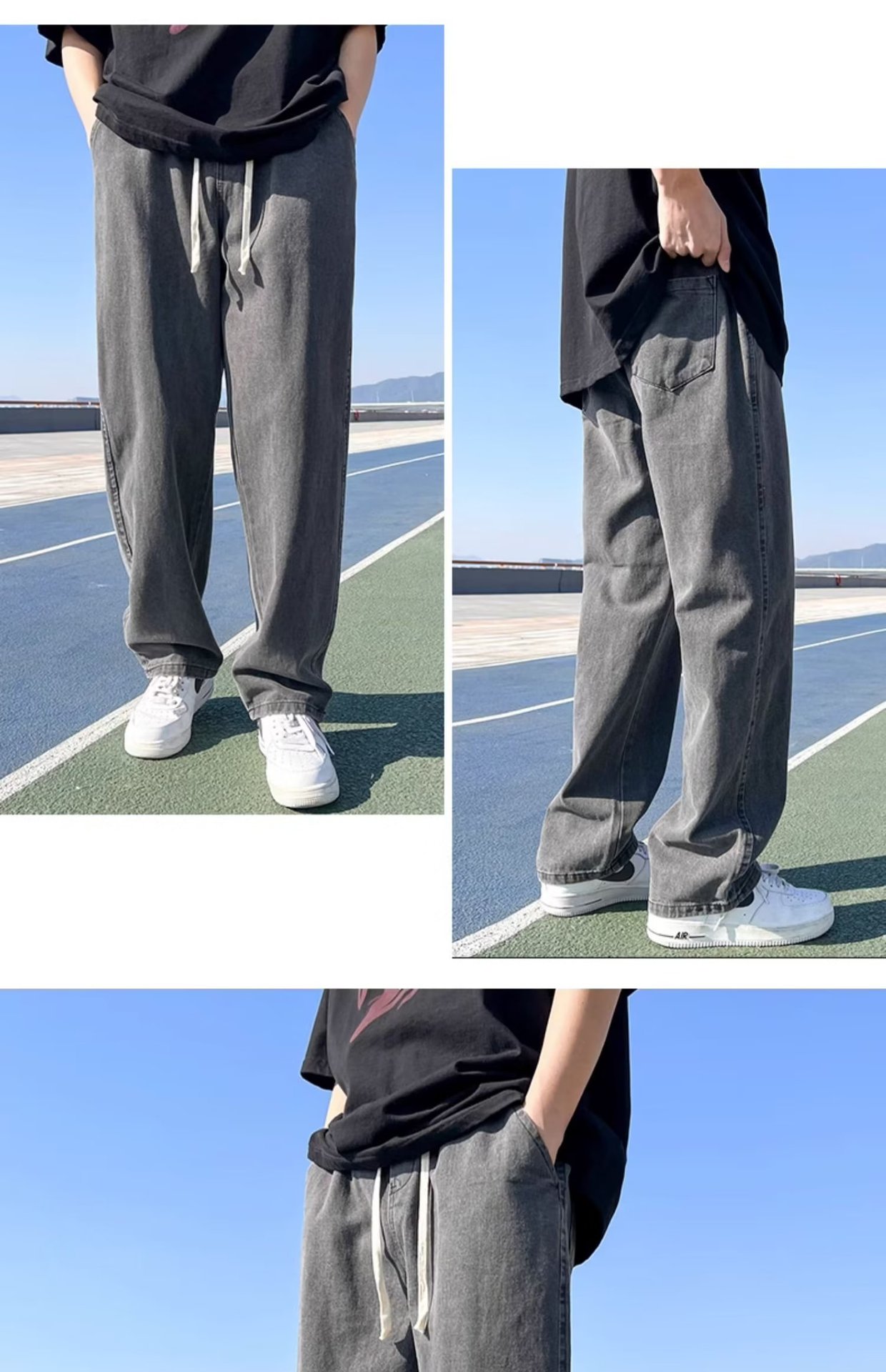 Sentido colgante 2024 primavera y otoño jeans de calle americana pantalones largos de pierna ancha de pierna ancha de la marca de moda de los hombres rectos sueltos de los hombres