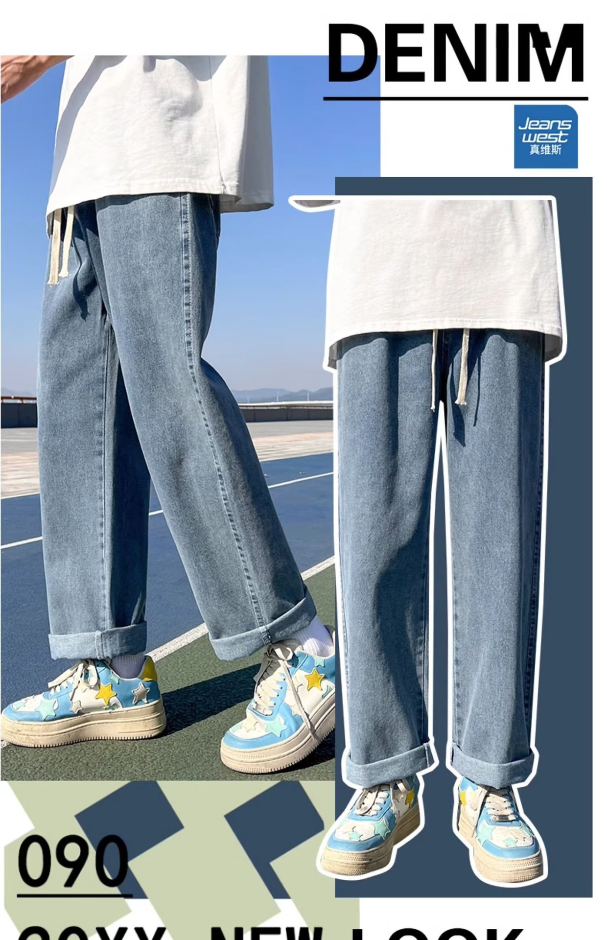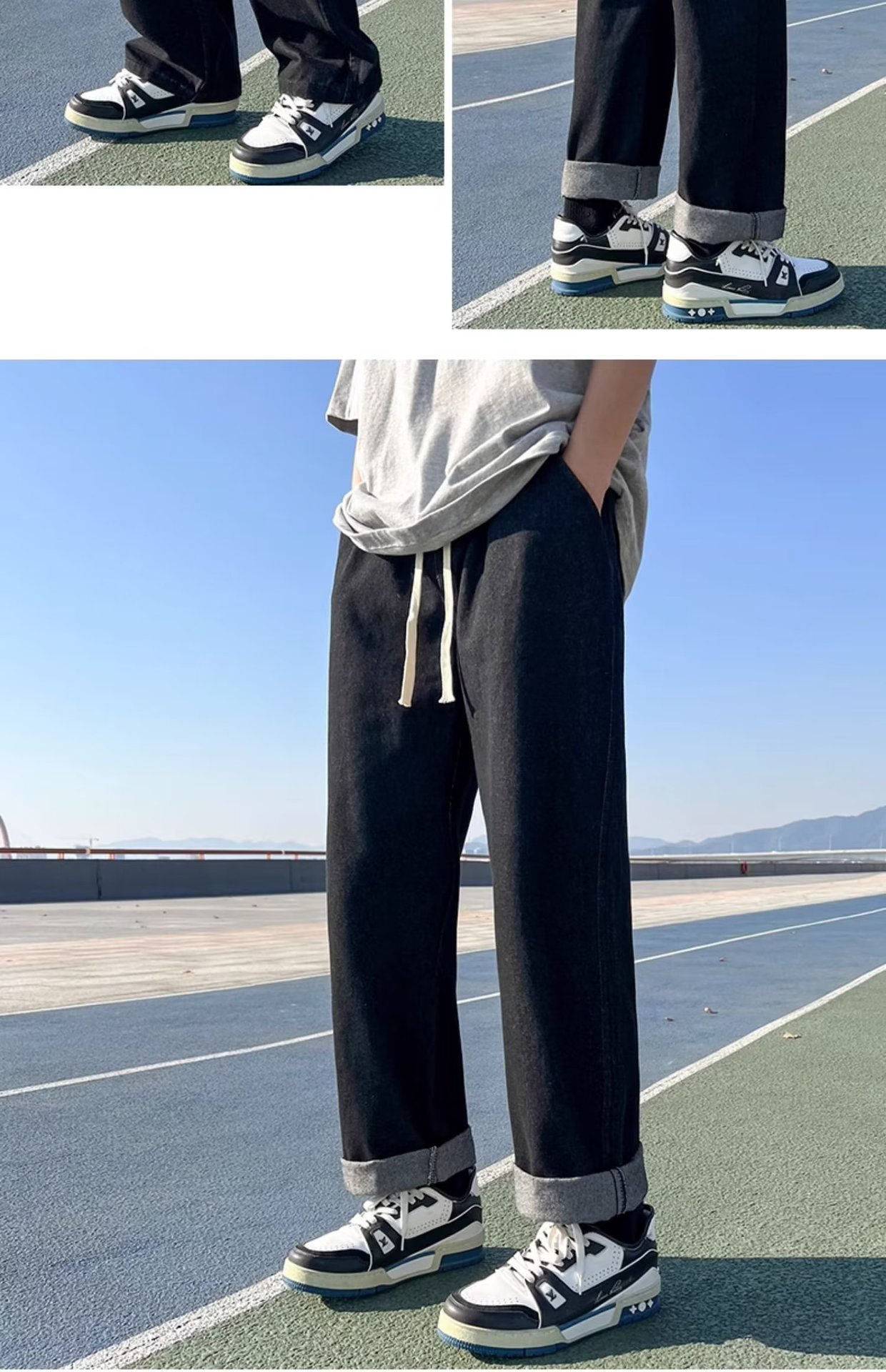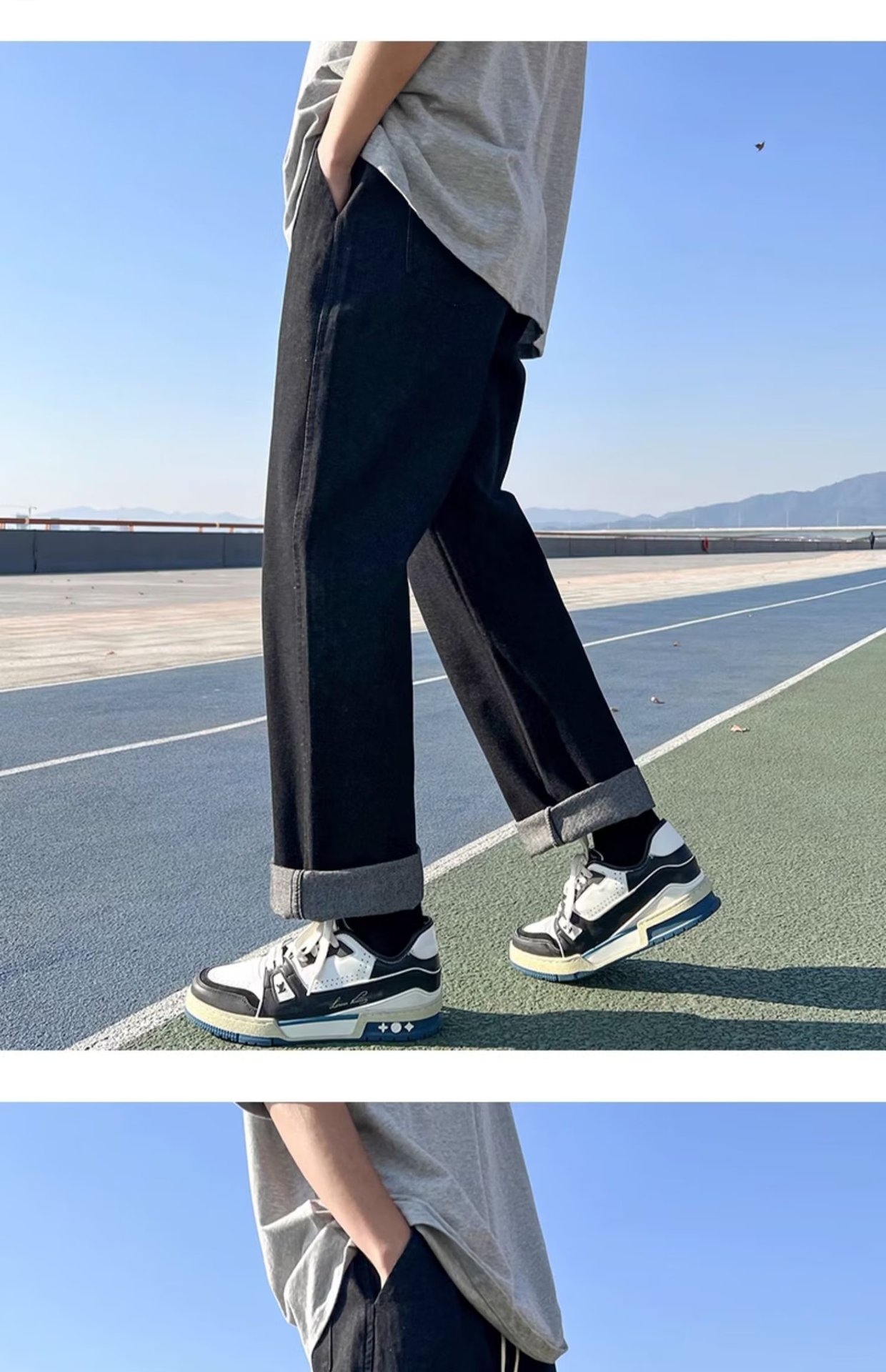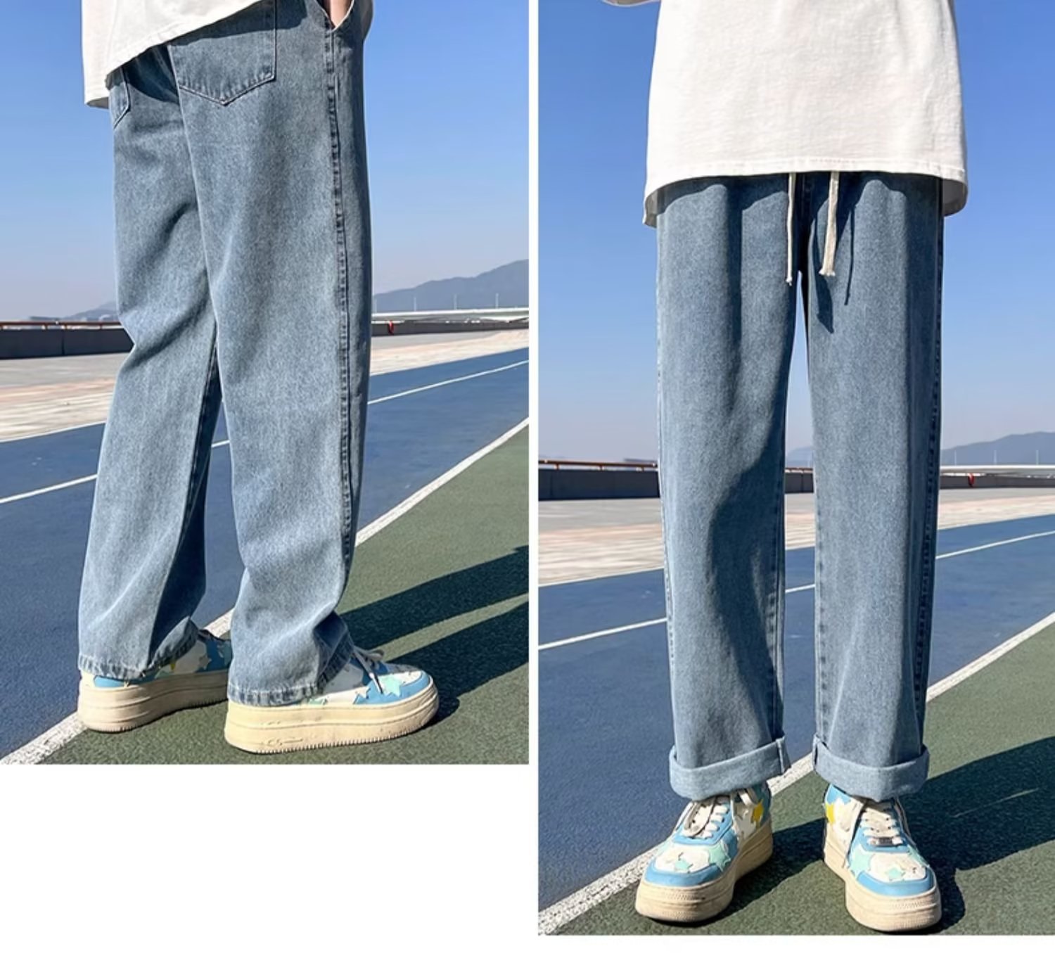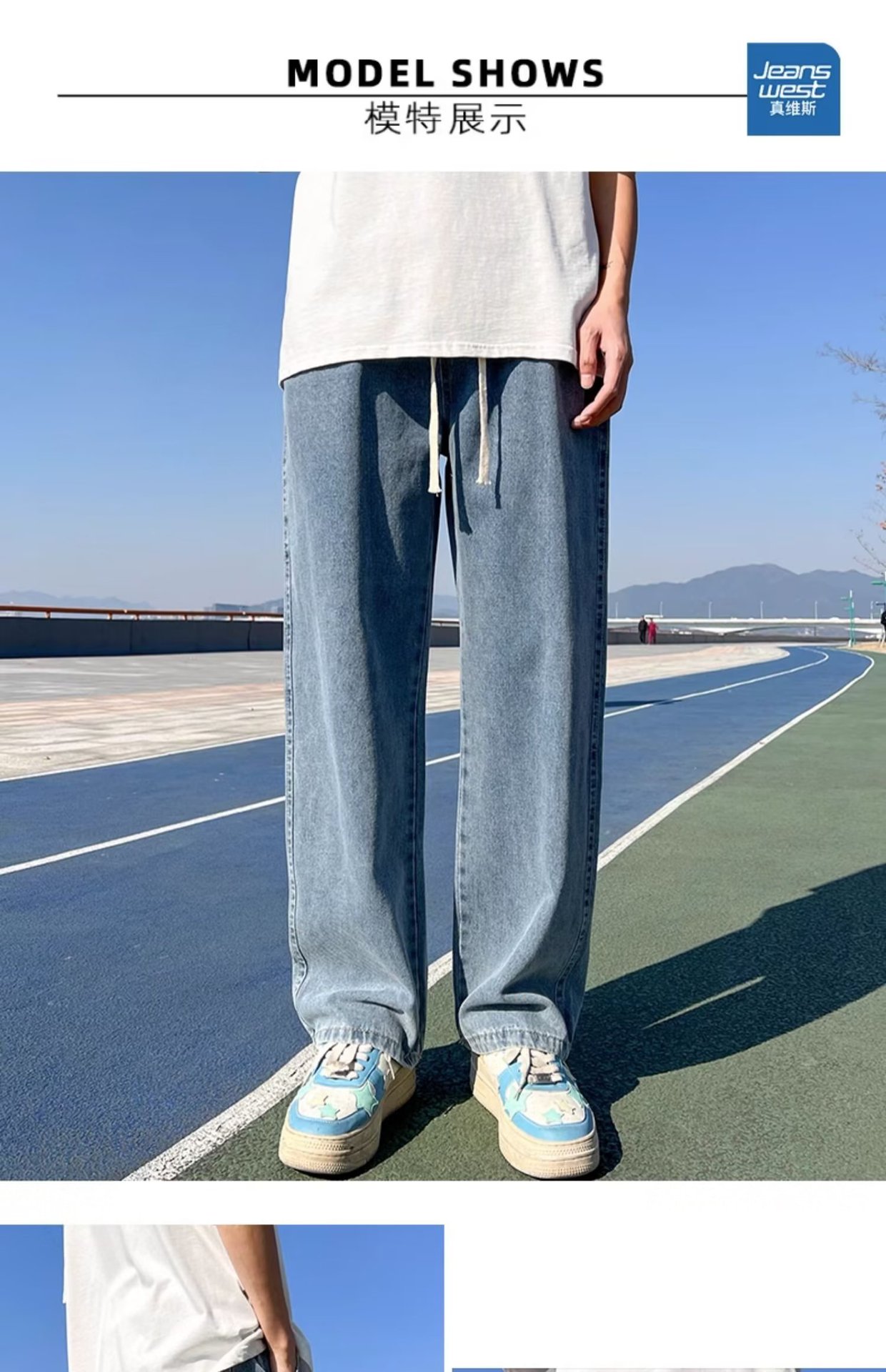 Sentido colgante 2024 primavera y otoño jeans de calle americana pantalones largos de pierna ancha de pierna ancha de la marca de moda de los hombres rectos sueltos de los hombres