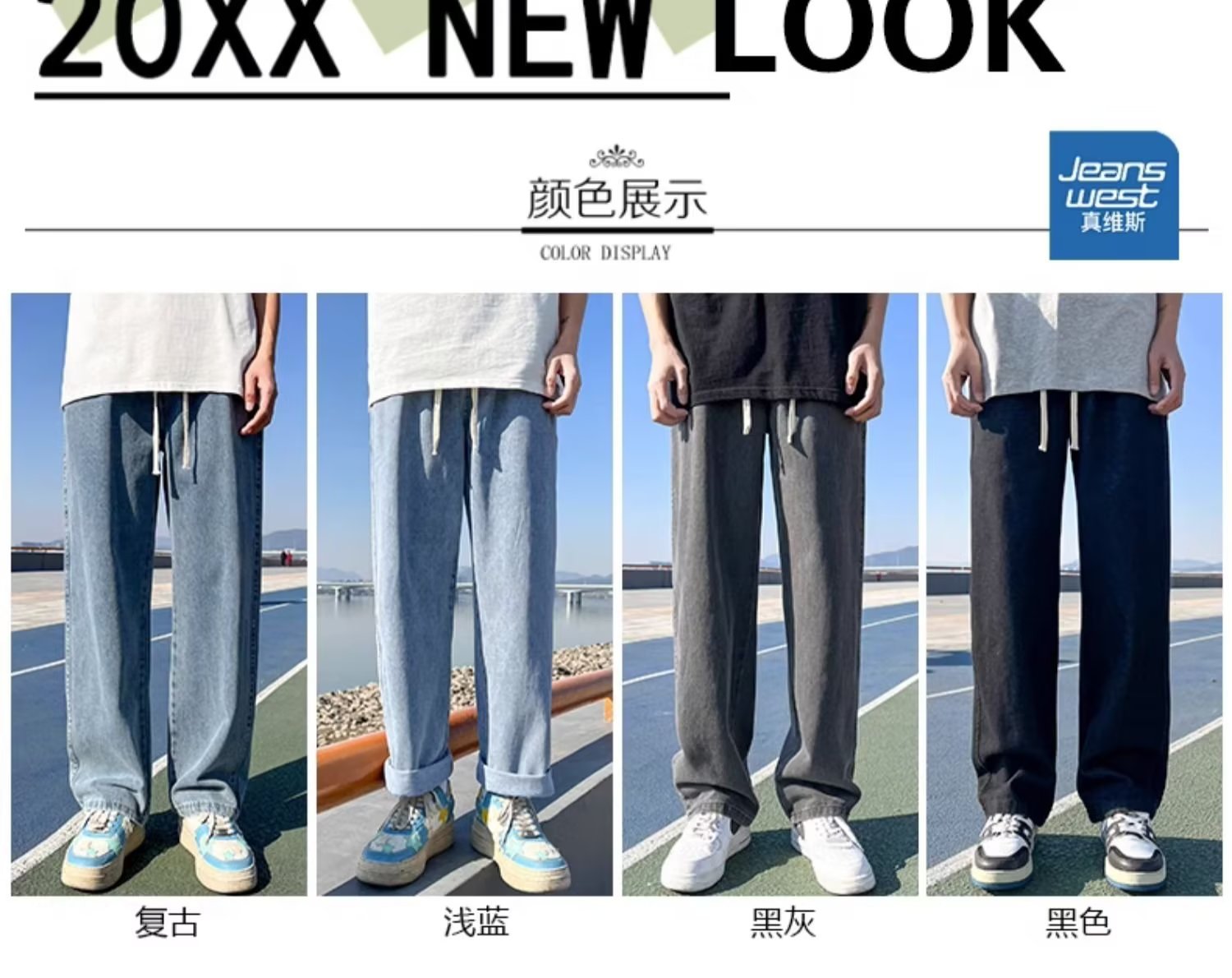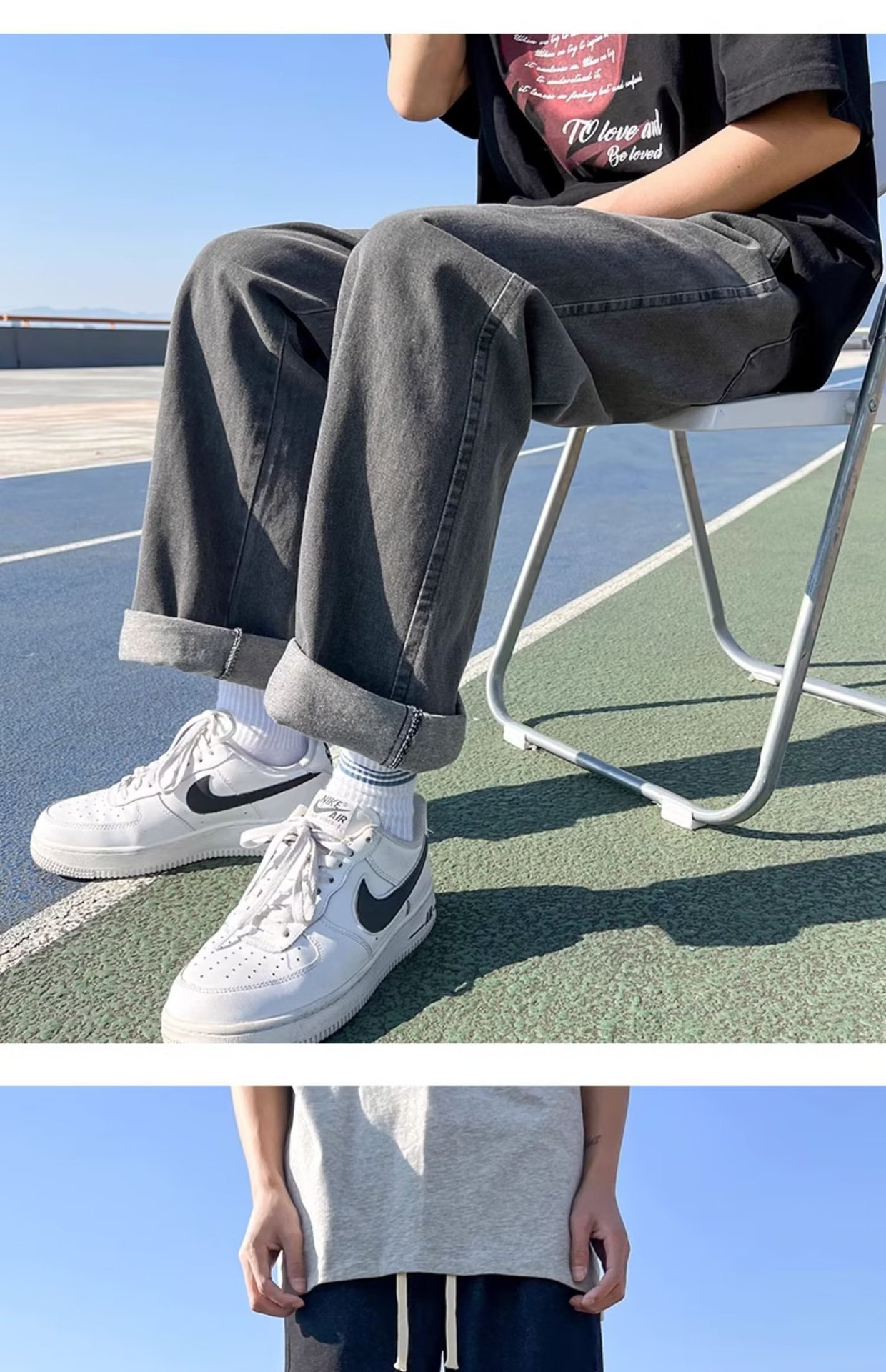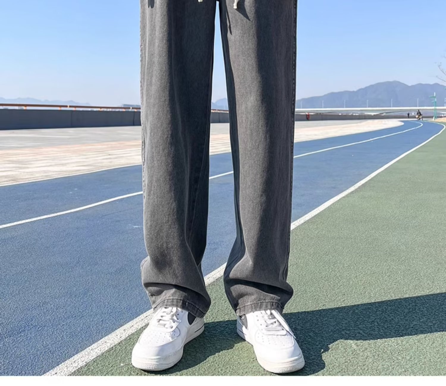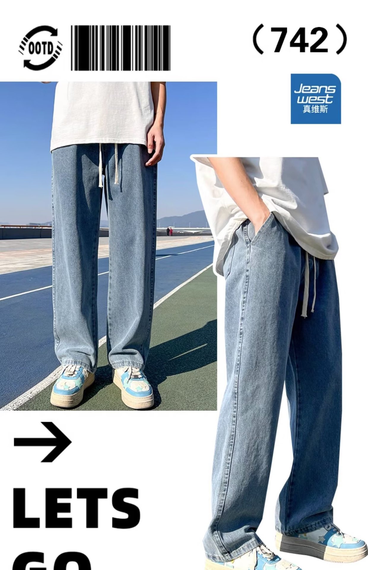 Sentido colgante 2024 primavera y otoño jeans de calle americana pantalones largos de pierna ancha de pierna ancha de la marca de moda de los hombres rectos sueltos de los hombres