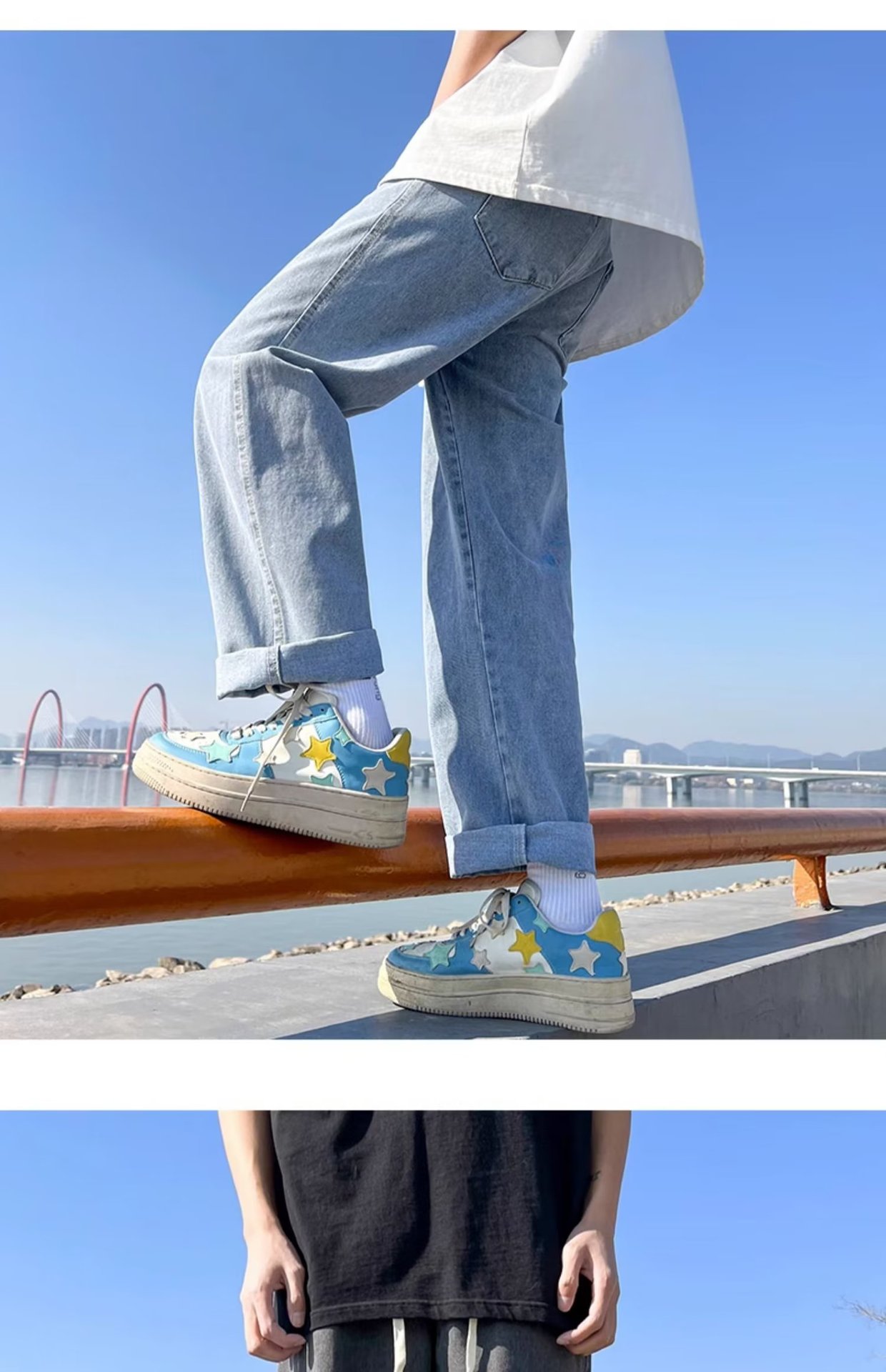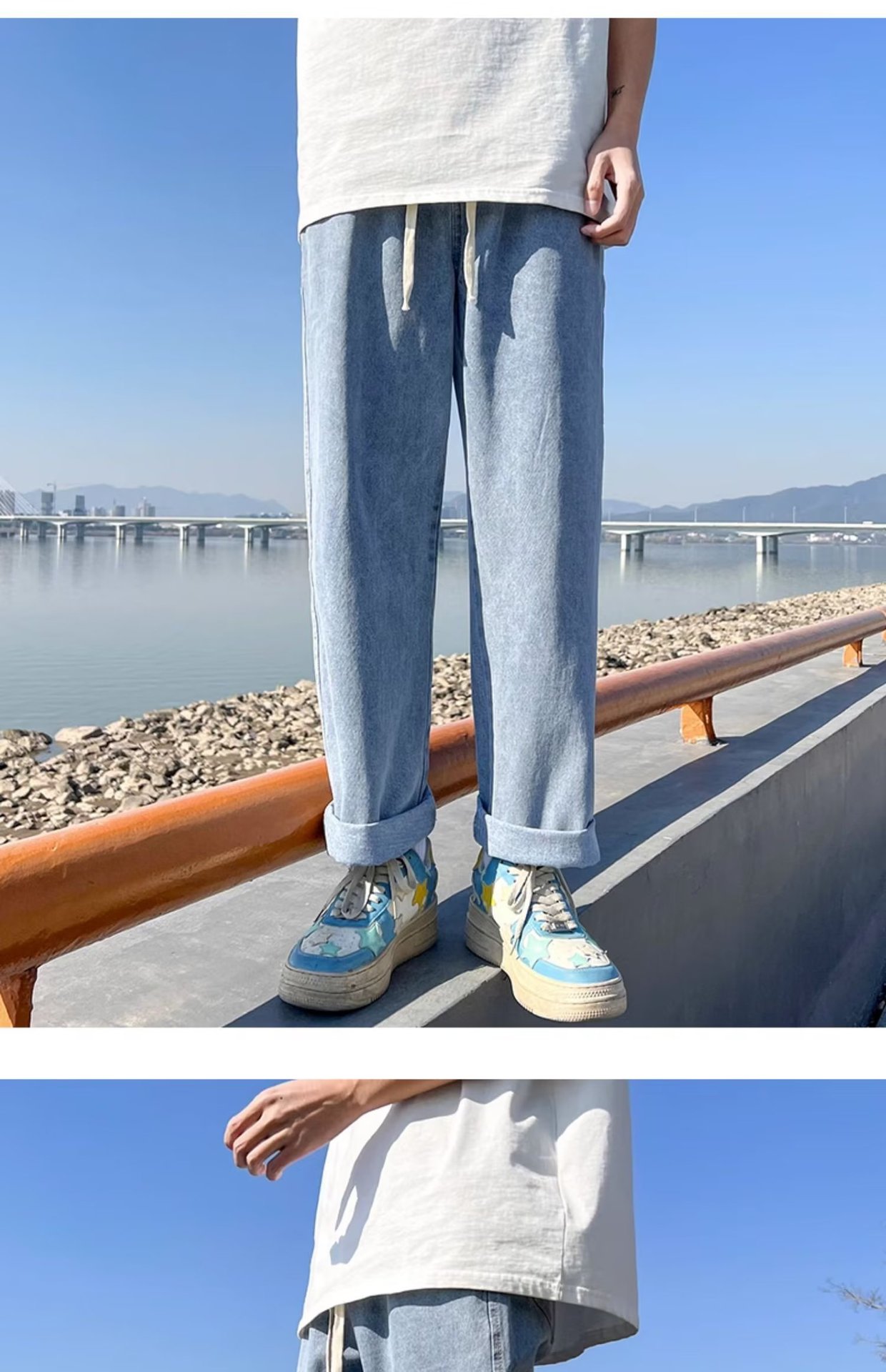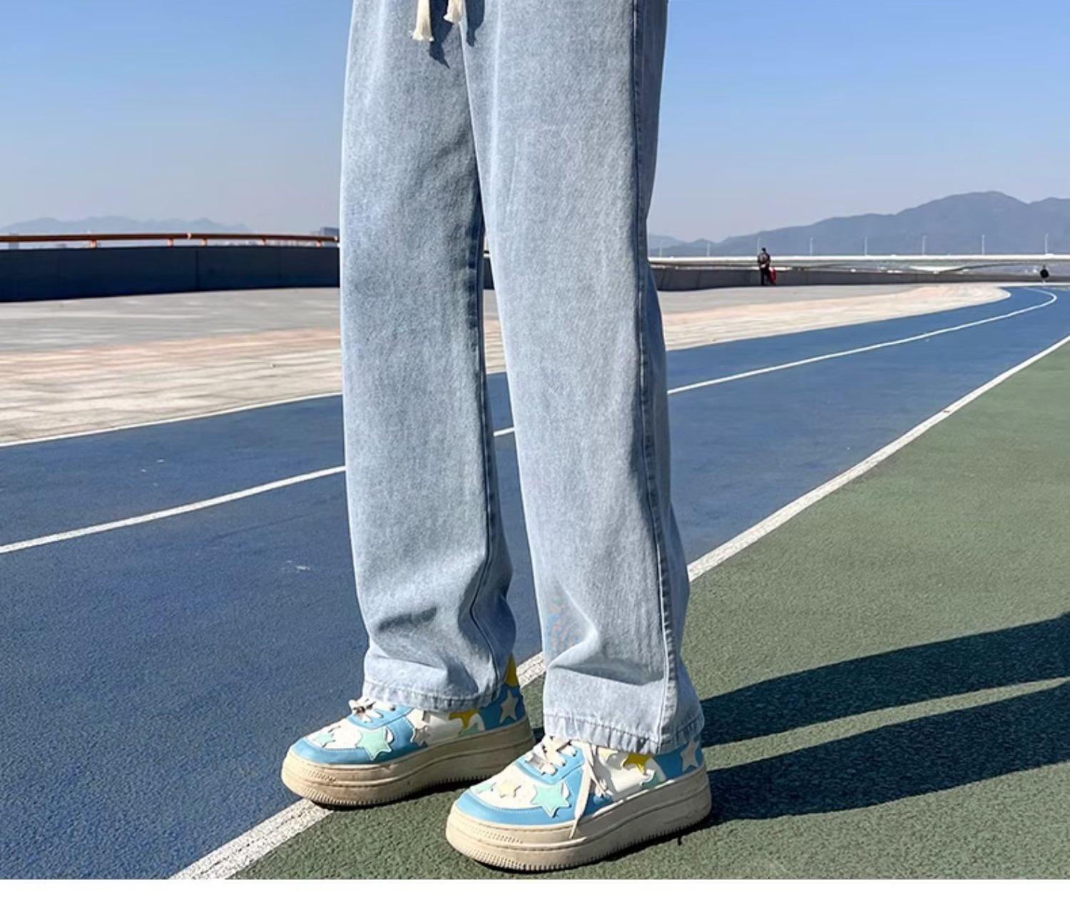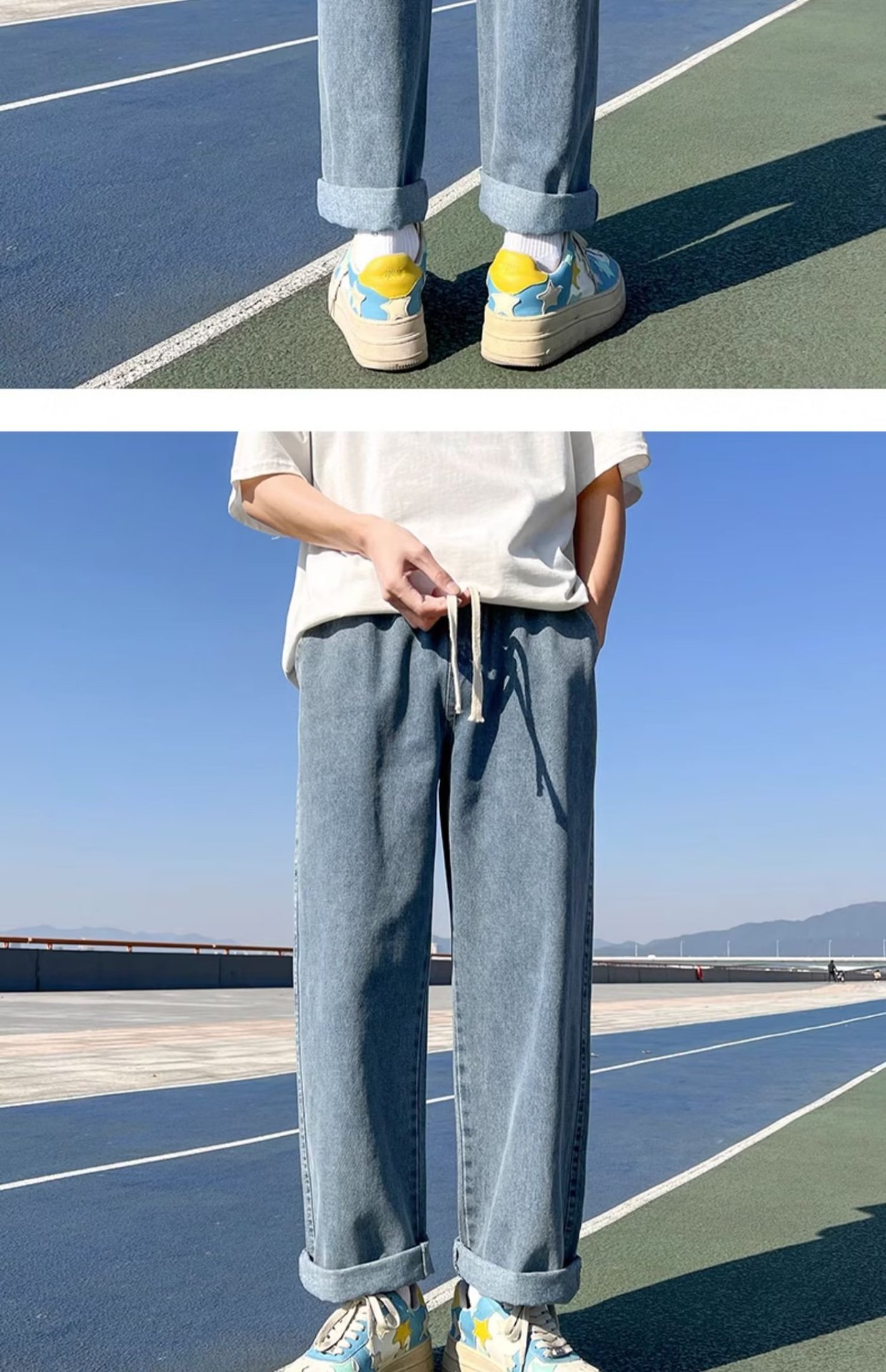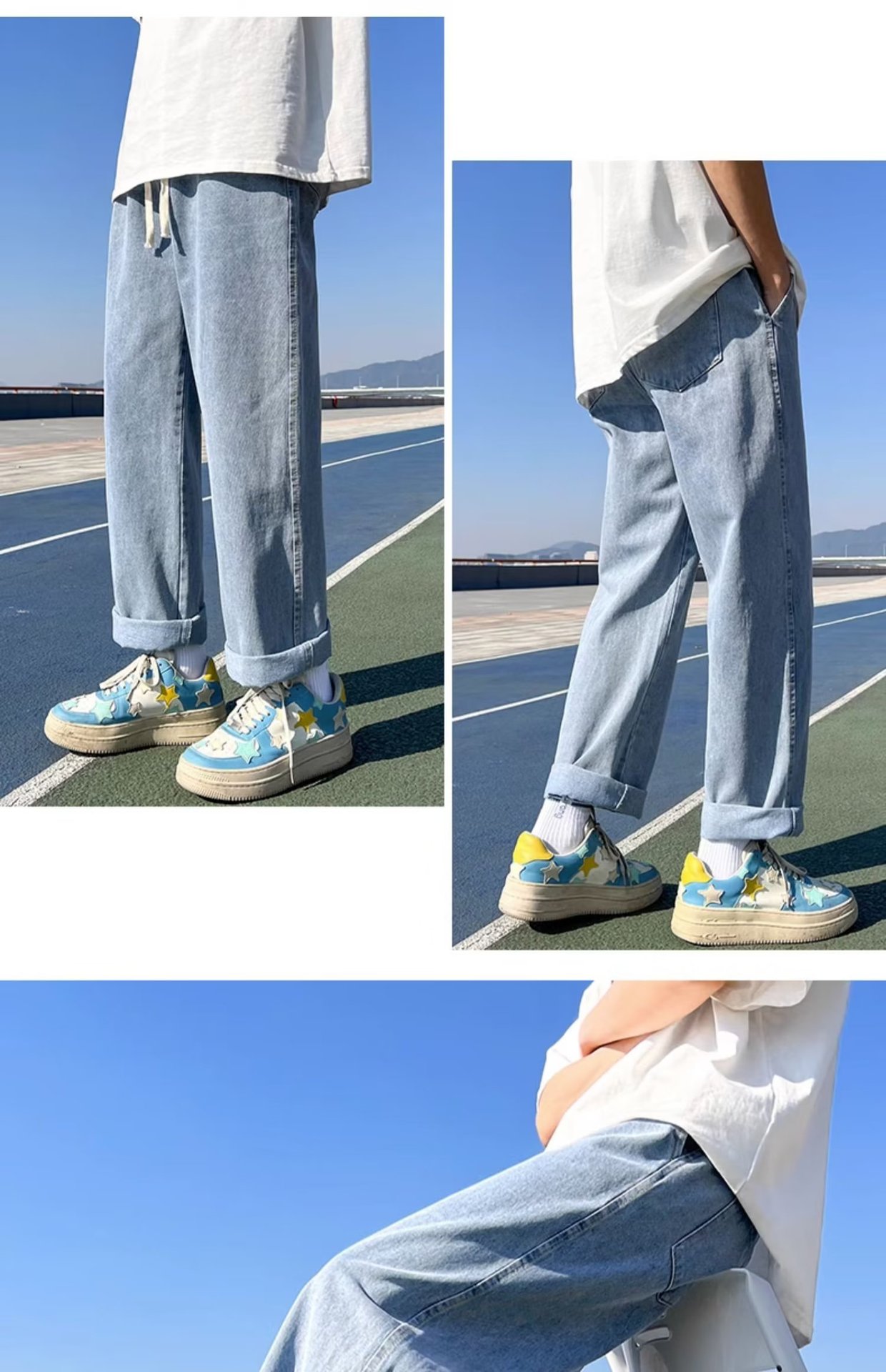 Sentido colgante 2024 primavera y otoño jeans de calle americana pantalones largos de pierna ancha de pierna ancha de la marca de moda de los hombres rectos sueltos de los hombres