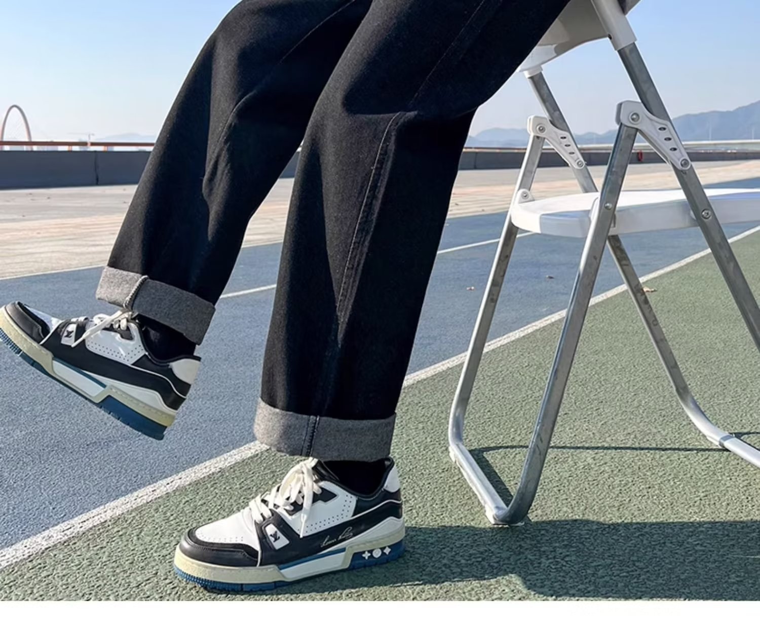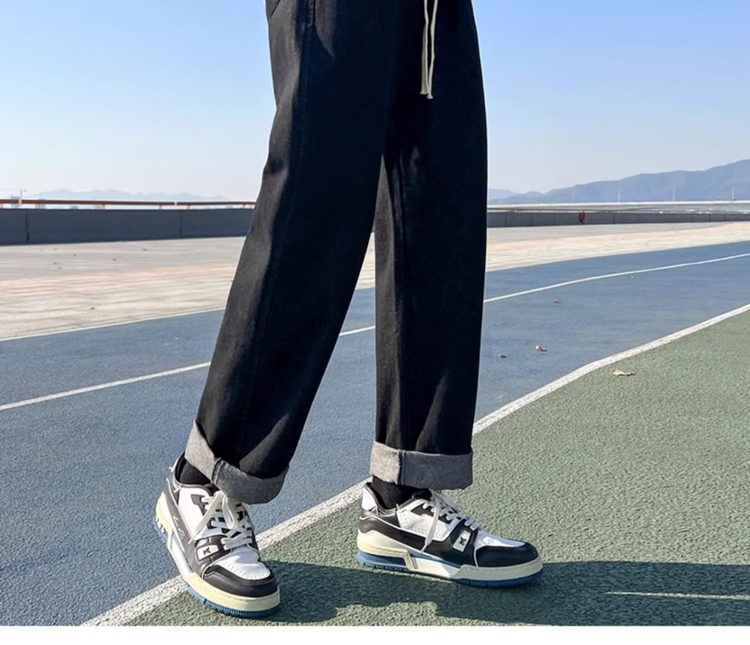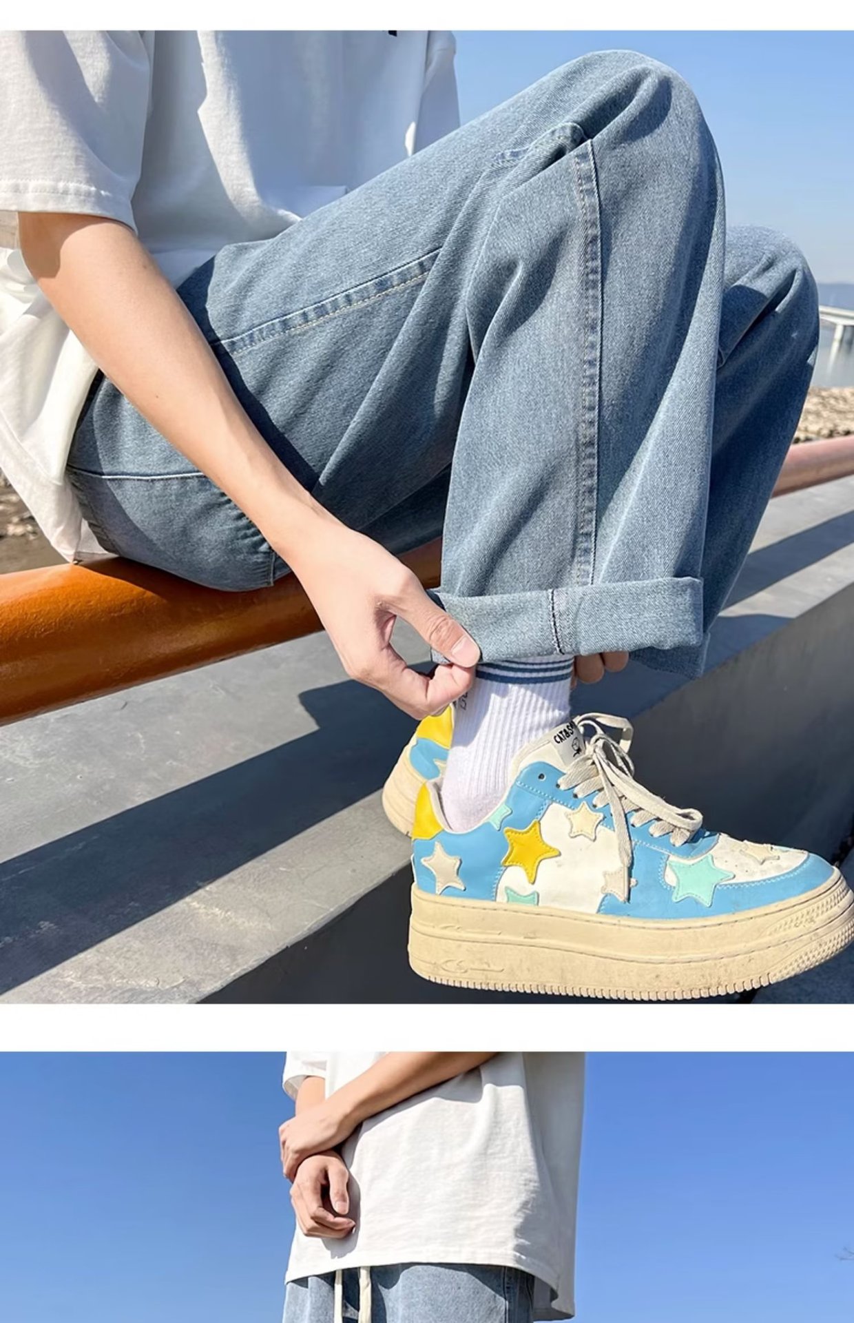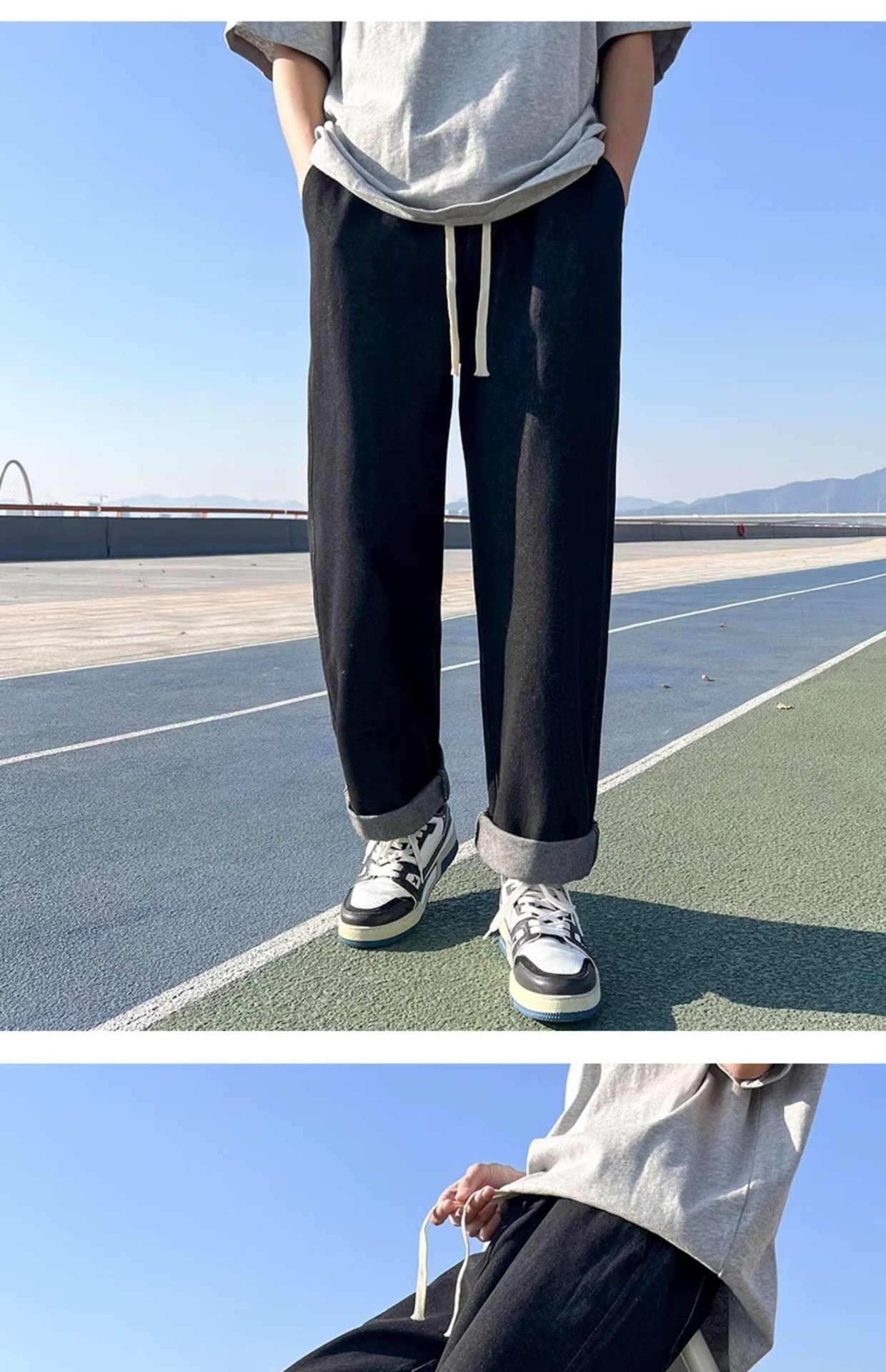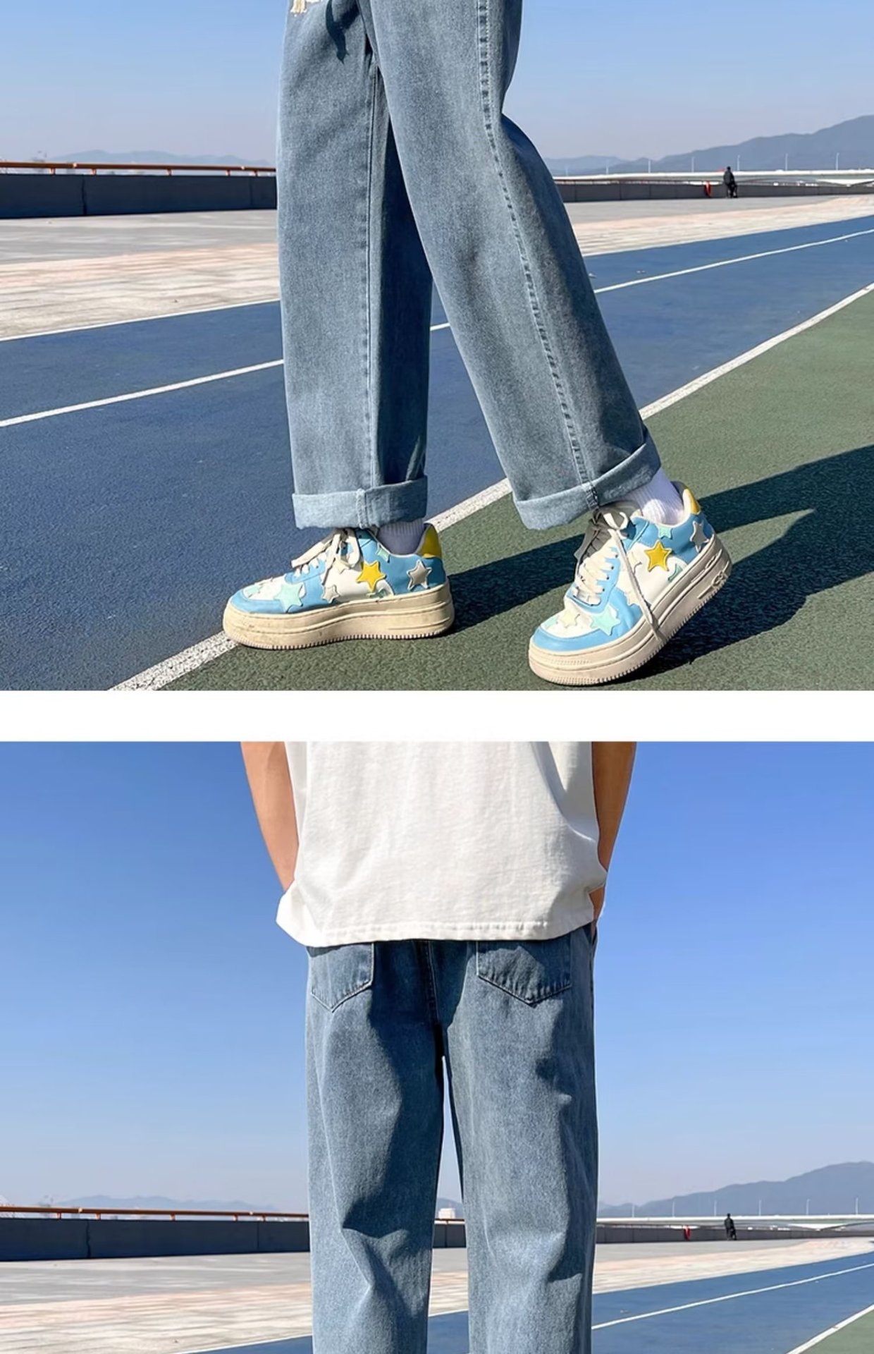 Sentido colgante 2024 primavera y otoño jeans de calle americana pantalones largos de pierna ancha de pierna ancha de la marca de moda de los hombres rectos sueltos de los hombres