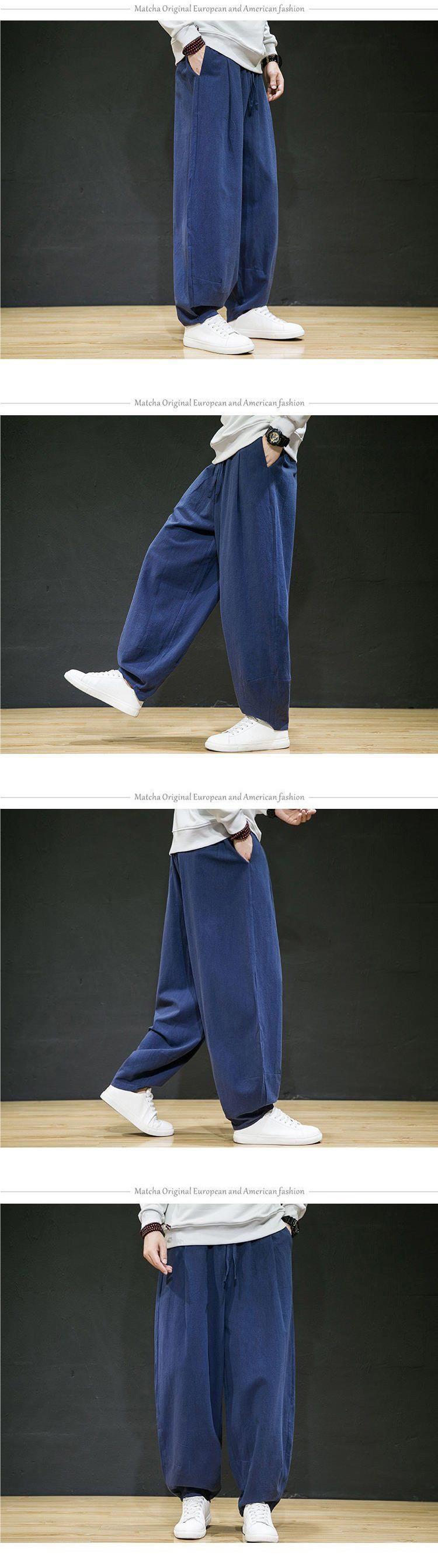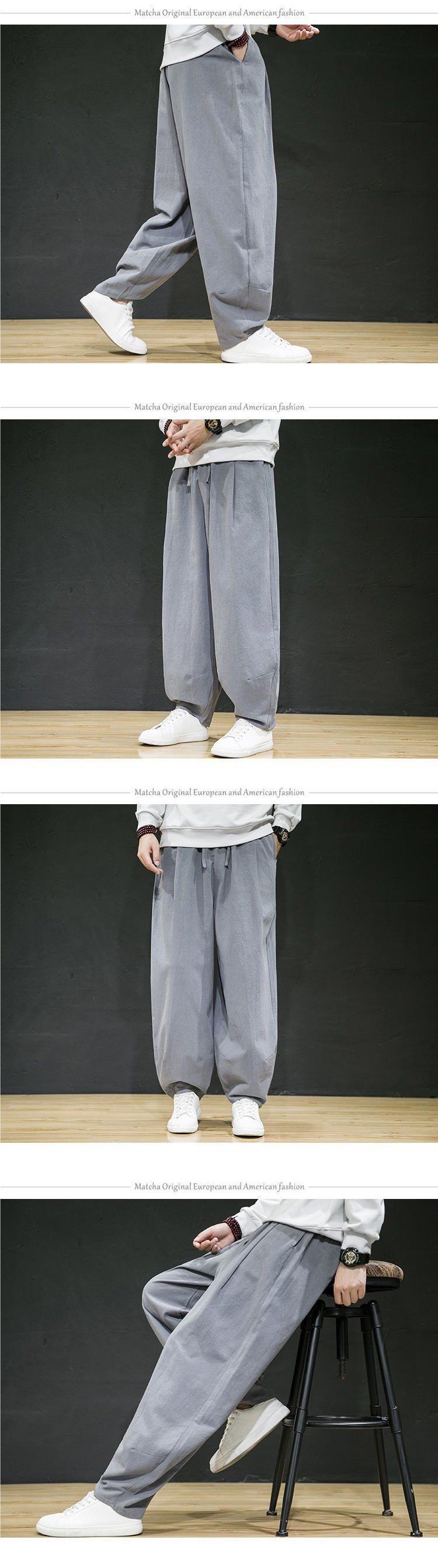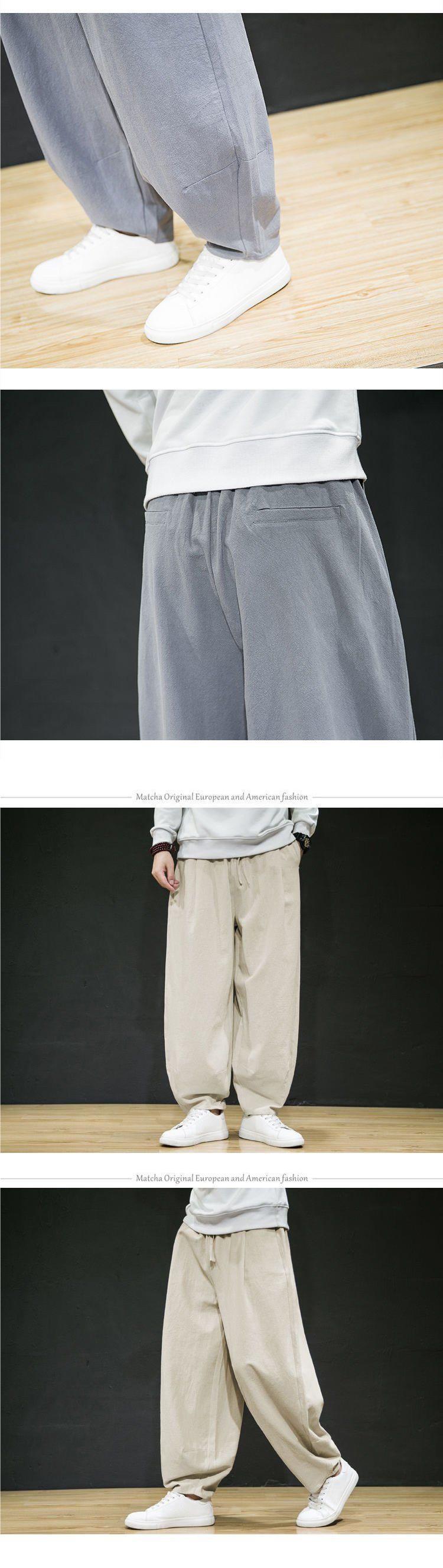 Pantalones largos de lino fino de primavera y verano de estilo chino, pantalones largos de pierna ancha de talla grande más gordos, pantalones harem casuales de algodón y lino