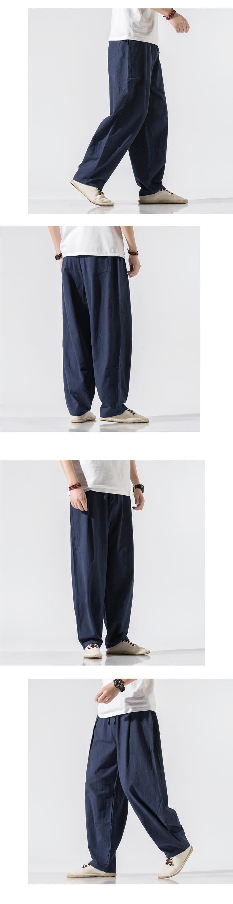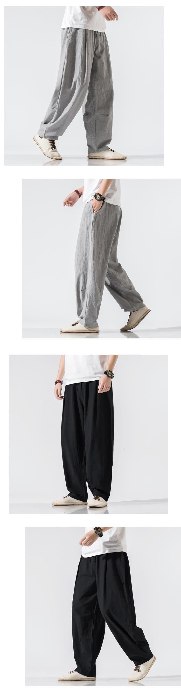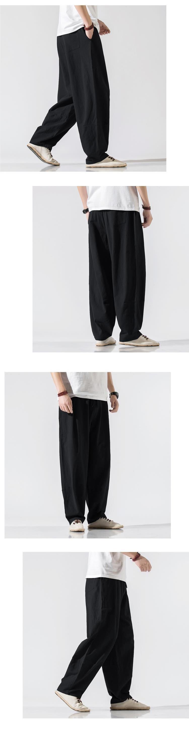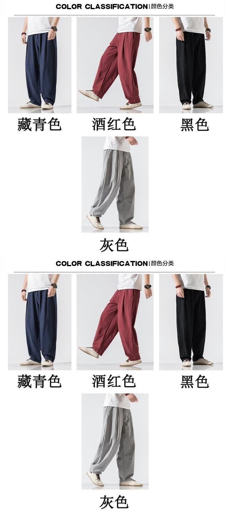 Pantalones de lino de traje Tang de estilo chino para hombres Pantalones de harén de pierna ancha de gran tamaño sueltos casuales para hombres