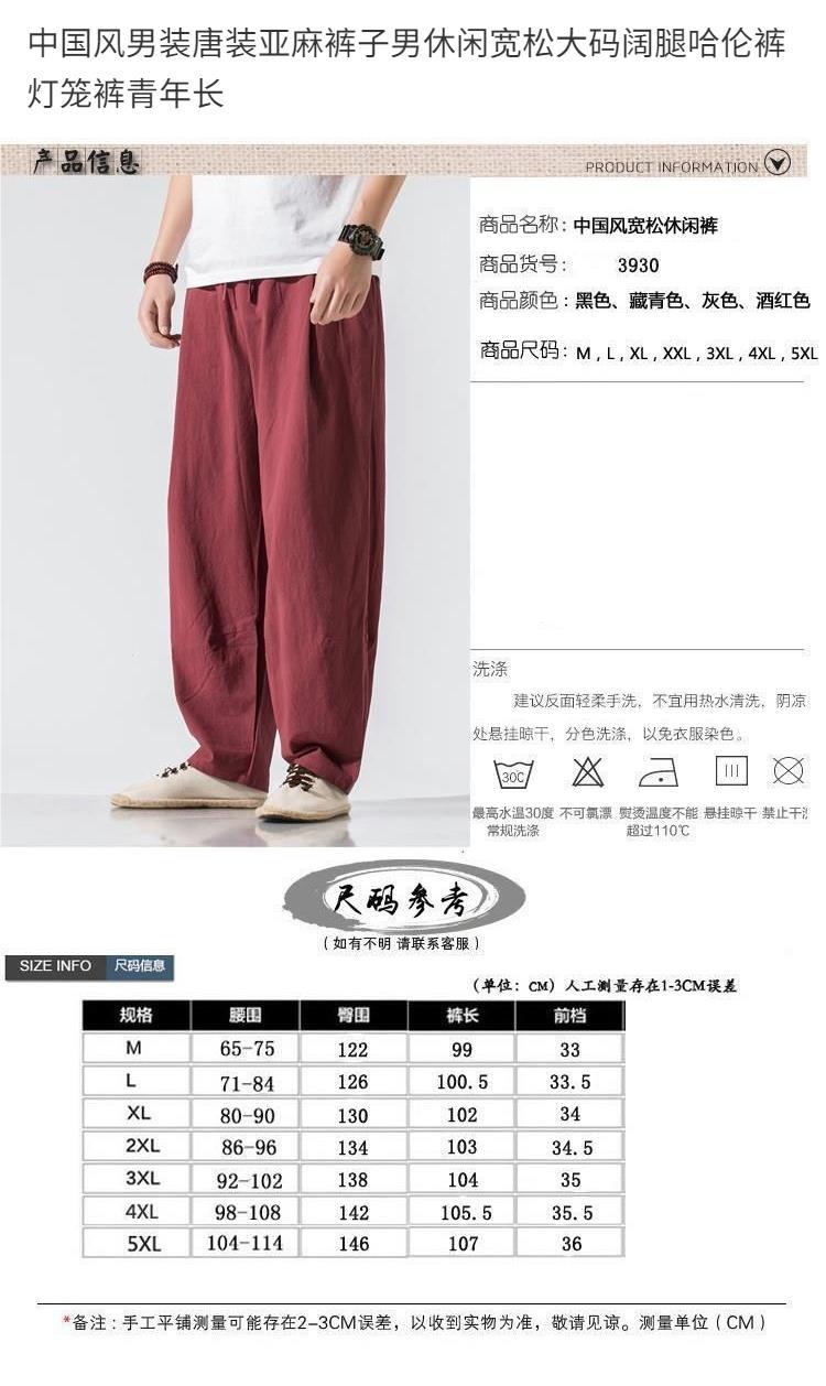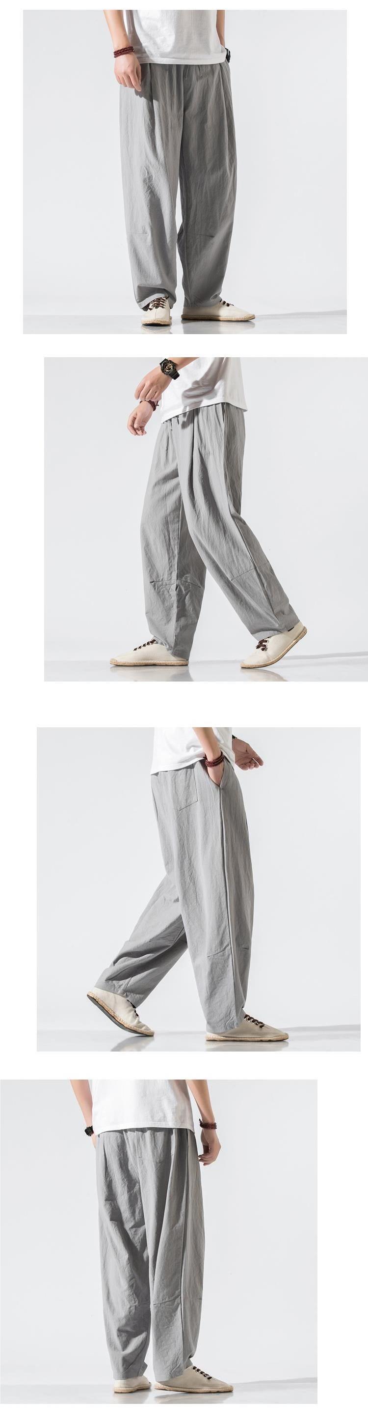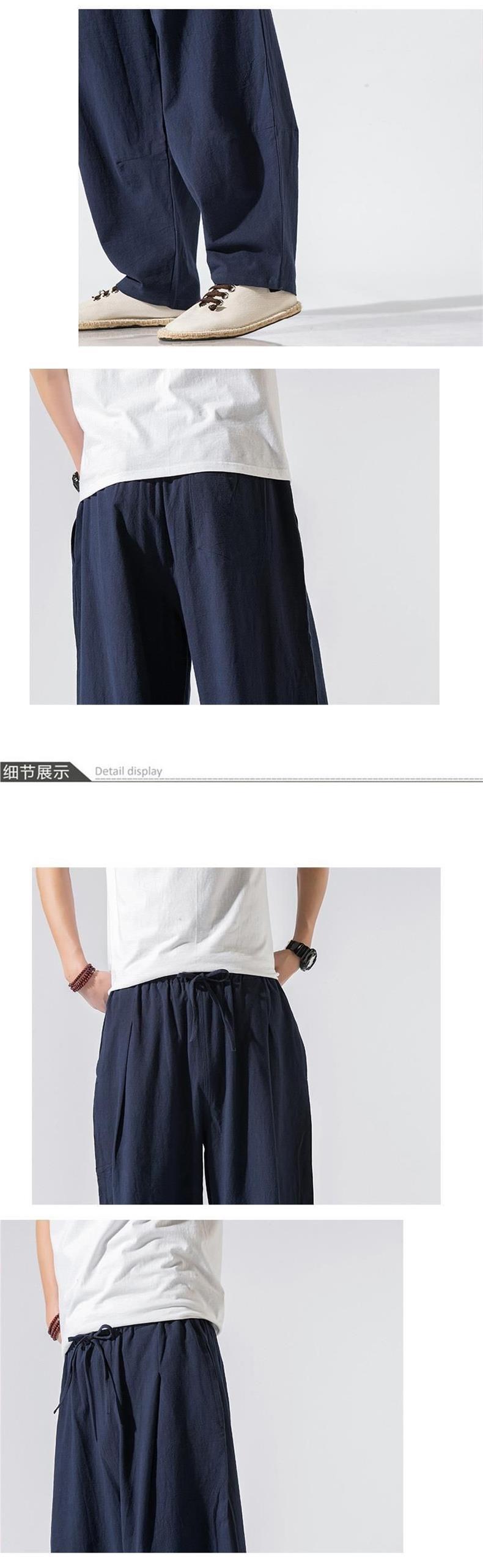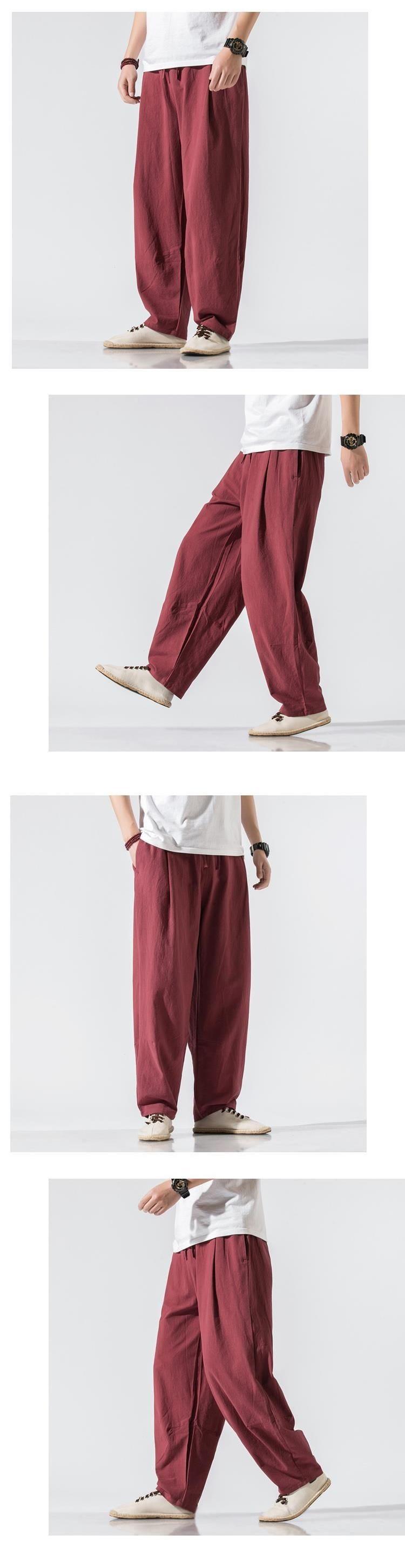 Pantalones de lino de traje Tang de estilo chino para hombres Pantalones de harén de pierna ancha de gran tamaño sueltos casuales para hombres