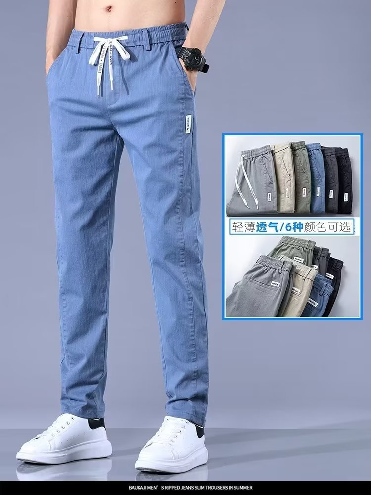 2024 modelos de primavera y otoño nueva moda de mezclilla de imitación de todo fósforo pantalones rectos delgados pantalones casuales sueltos de todo fósforo hombres de moda