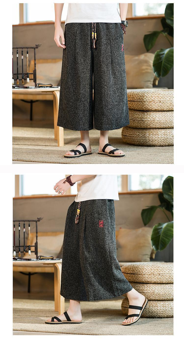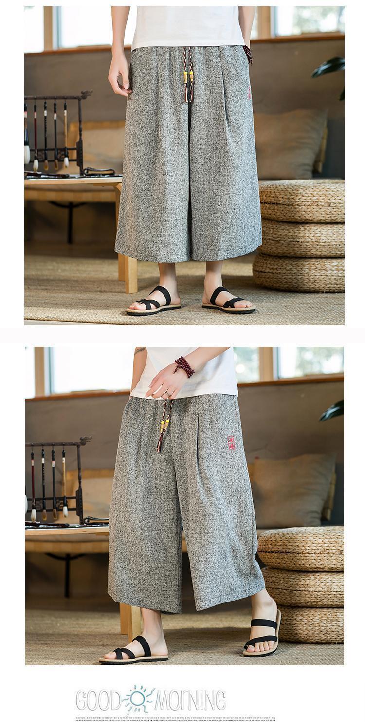 Pantalones de hombre de estilo chino, pantalones cortos de seda de hielo finos de verano, pantalones rectos anchos de gran tamaño sueltos, pantalones cortos de playa