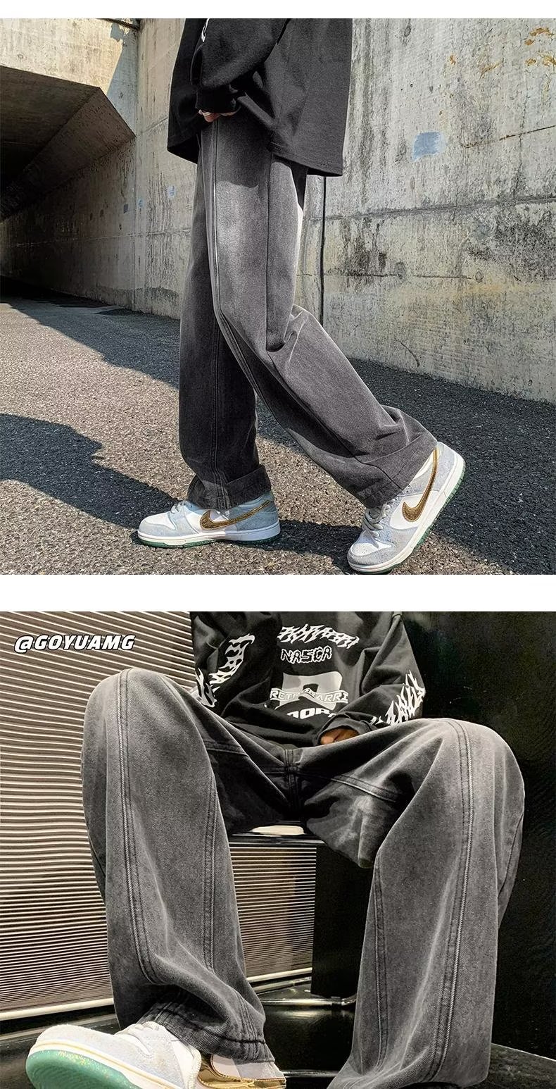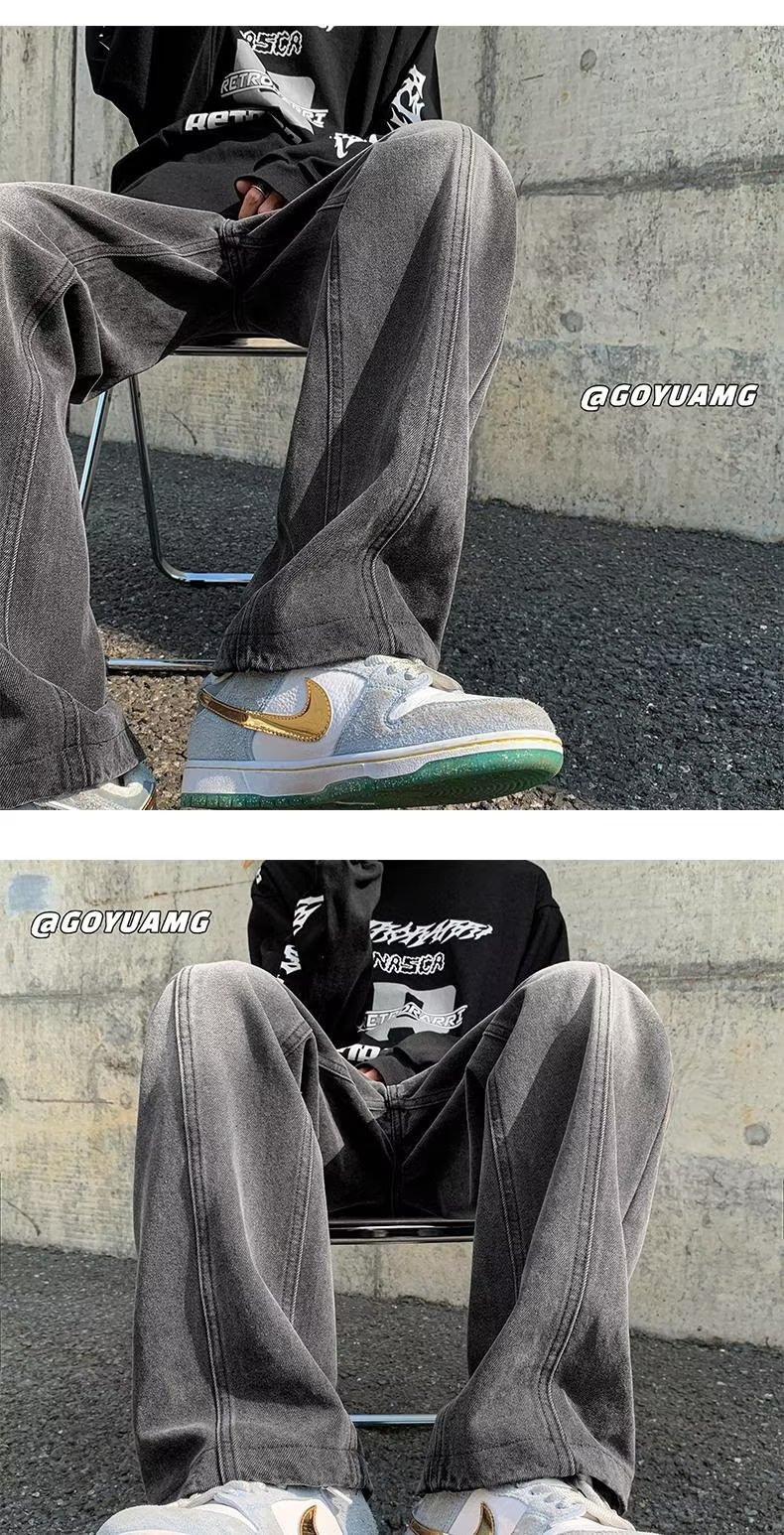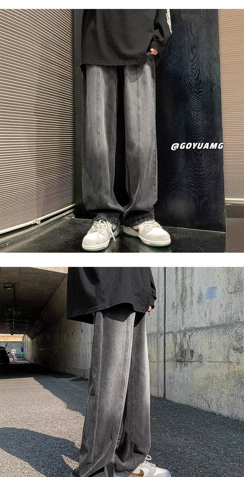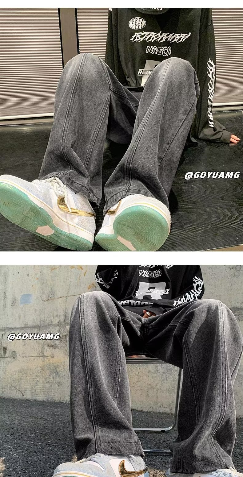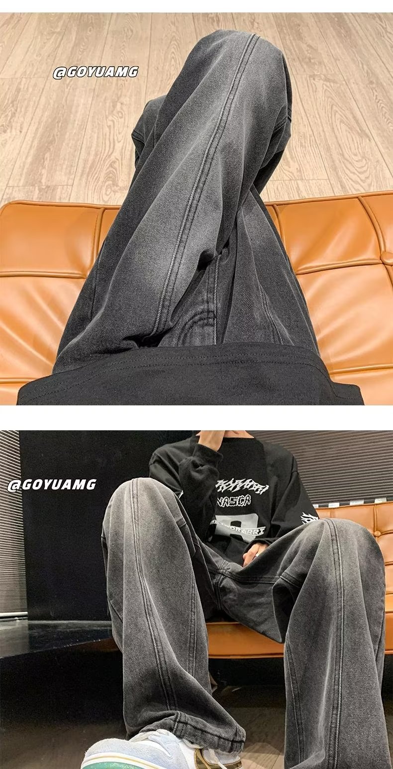 Vaqueros americanos de otoño pantalones negros y grises lavados para hombre