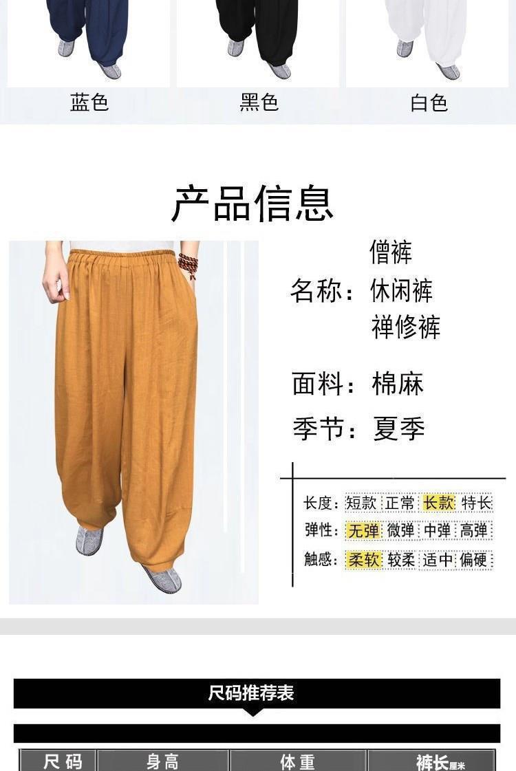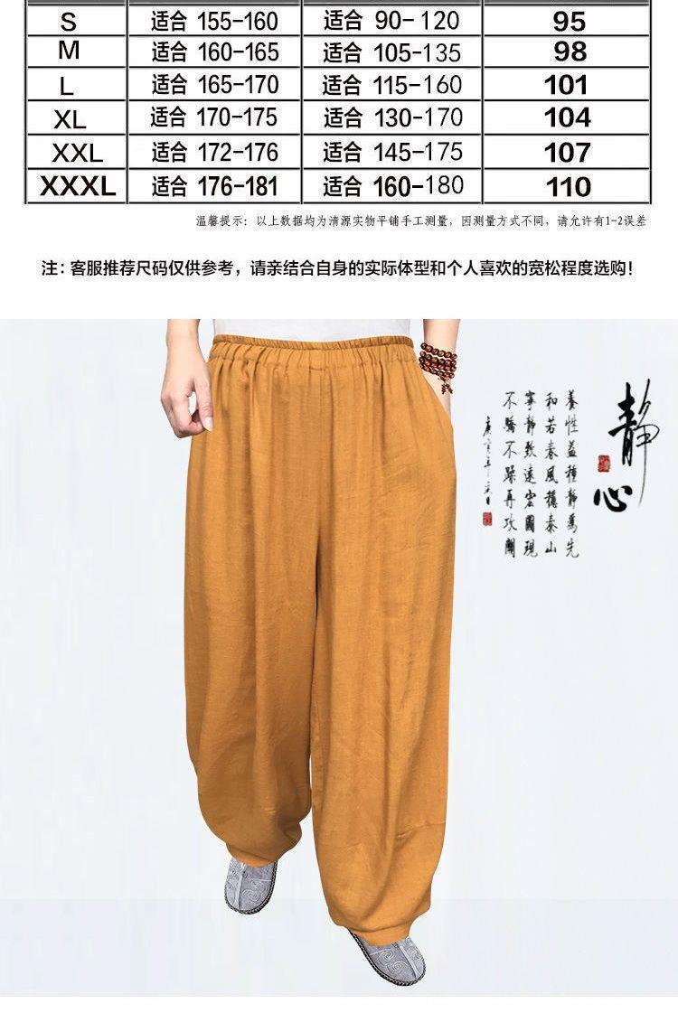 Nuevos pantalones de monje, algodón y lino para hombre, leggings gratis de verano, ropa de meditación para laicas, ropa fina, ropa de práctica suelta de lino, pantalones casuales