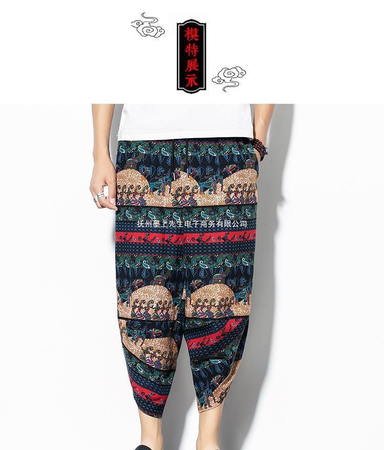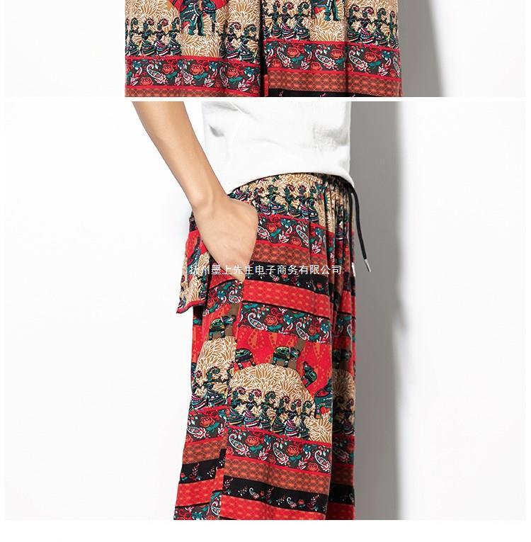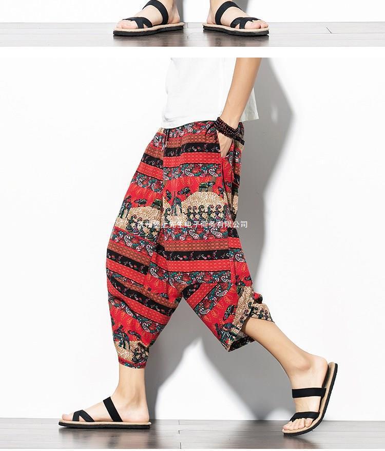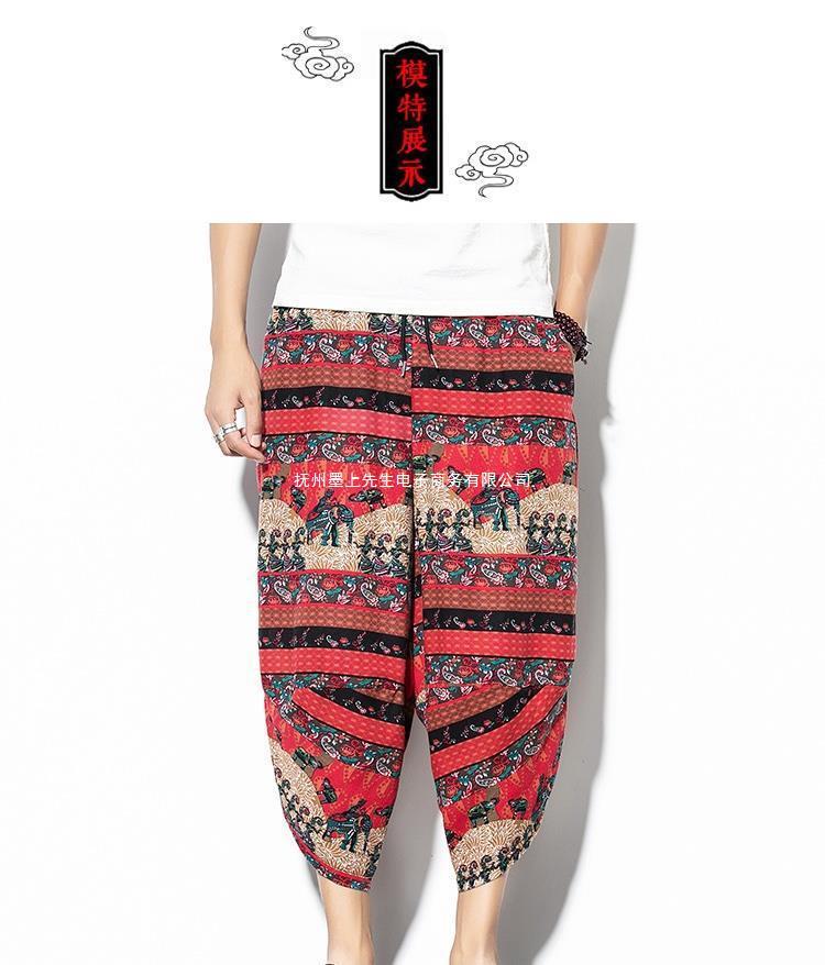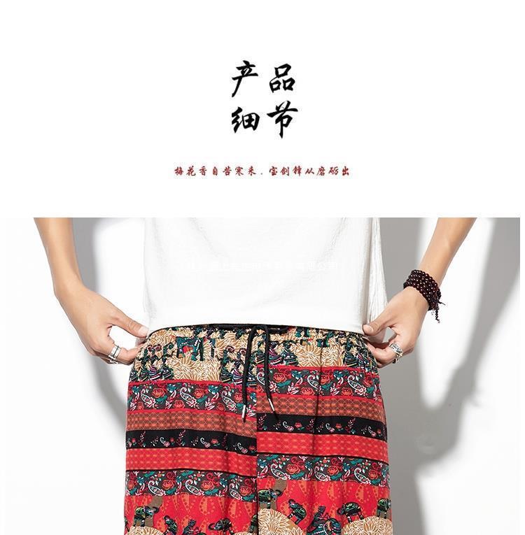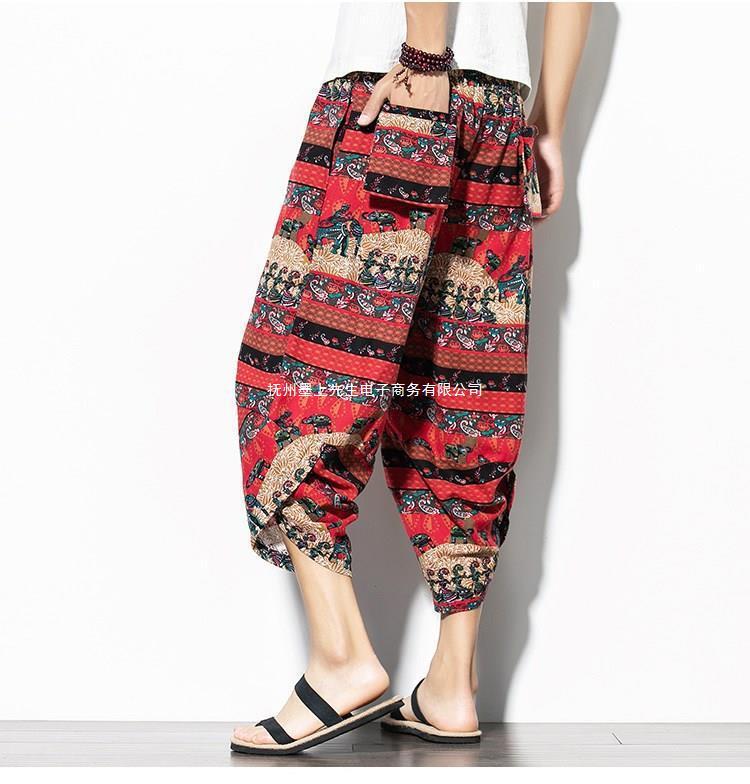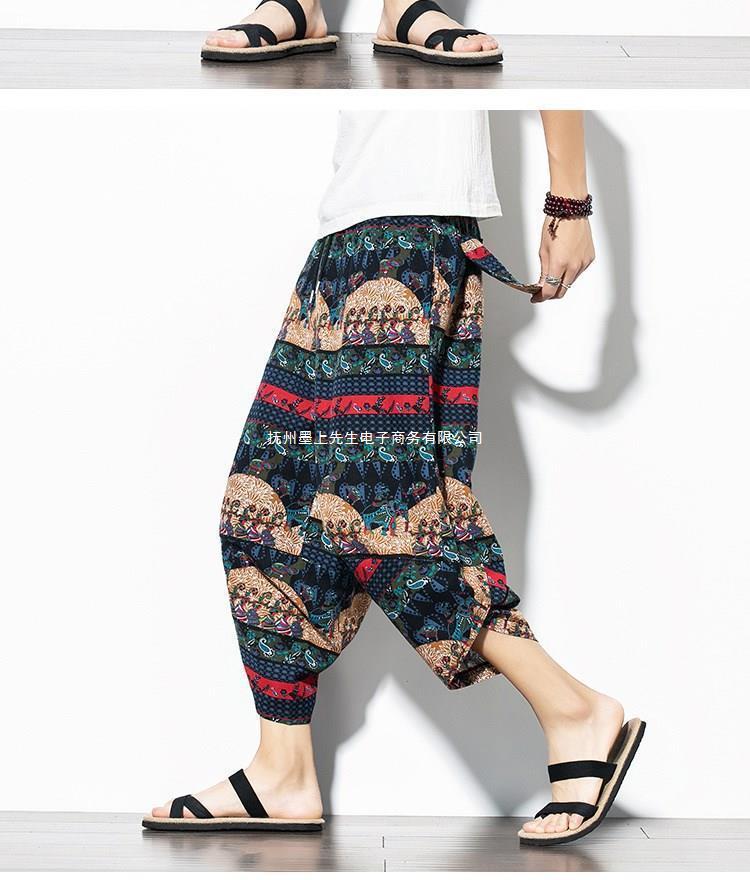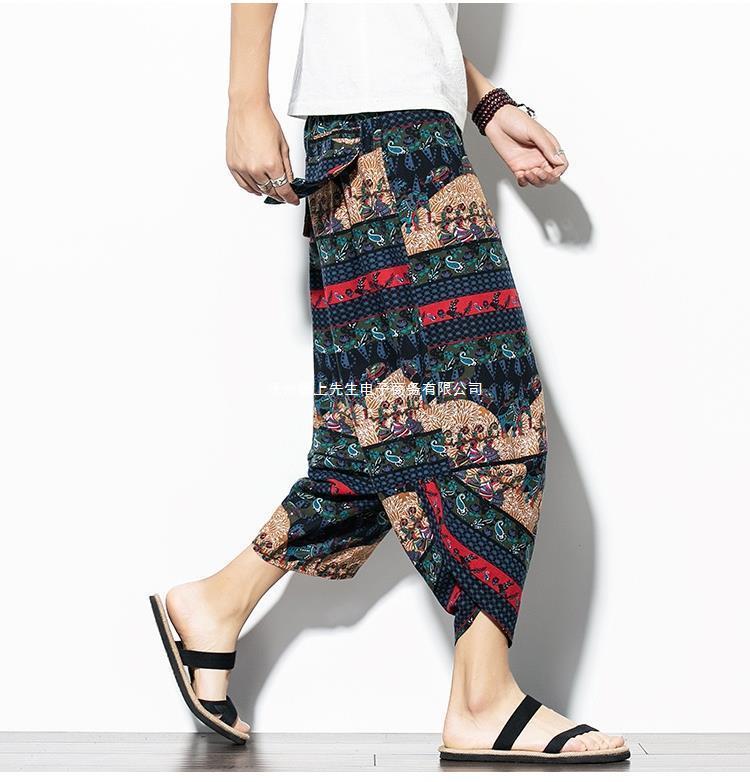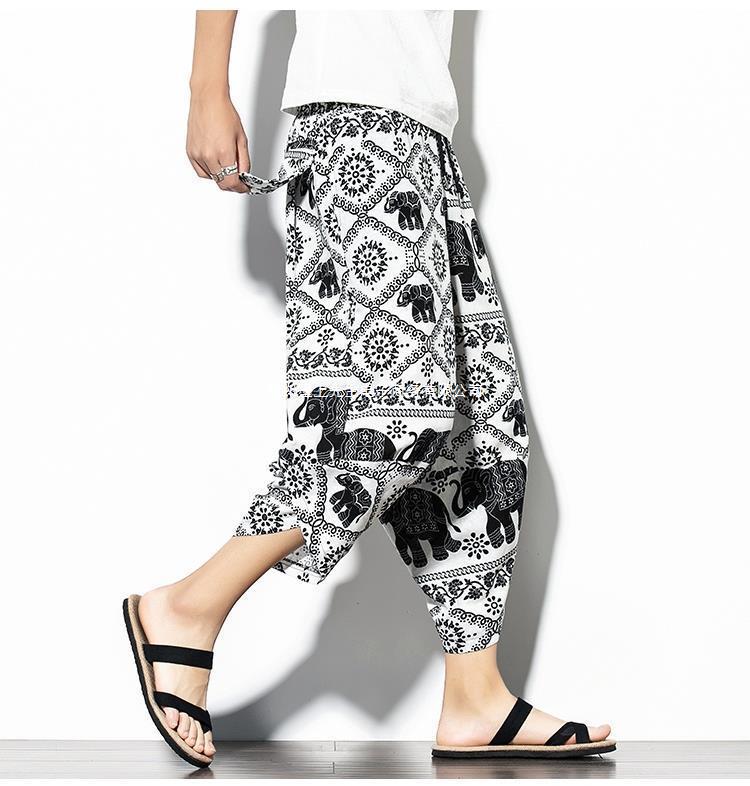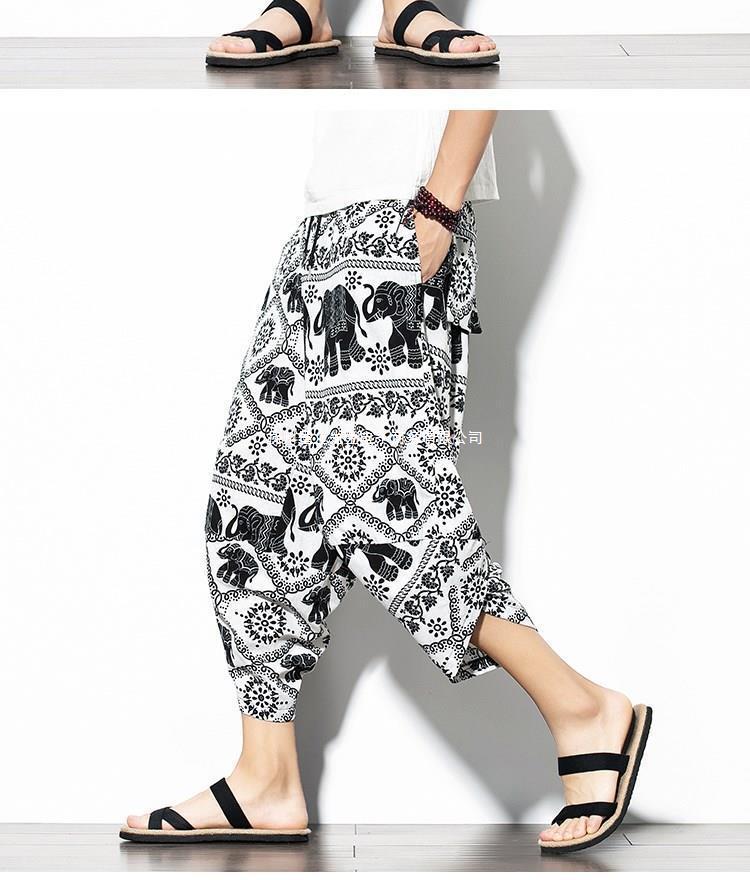 Pantalones anchos de algodón y lino gordo de verano para hombres pantalones de flores recortados sueltos de gran tamaño pantalones de estilo étnico pantalones de elefante tailandés