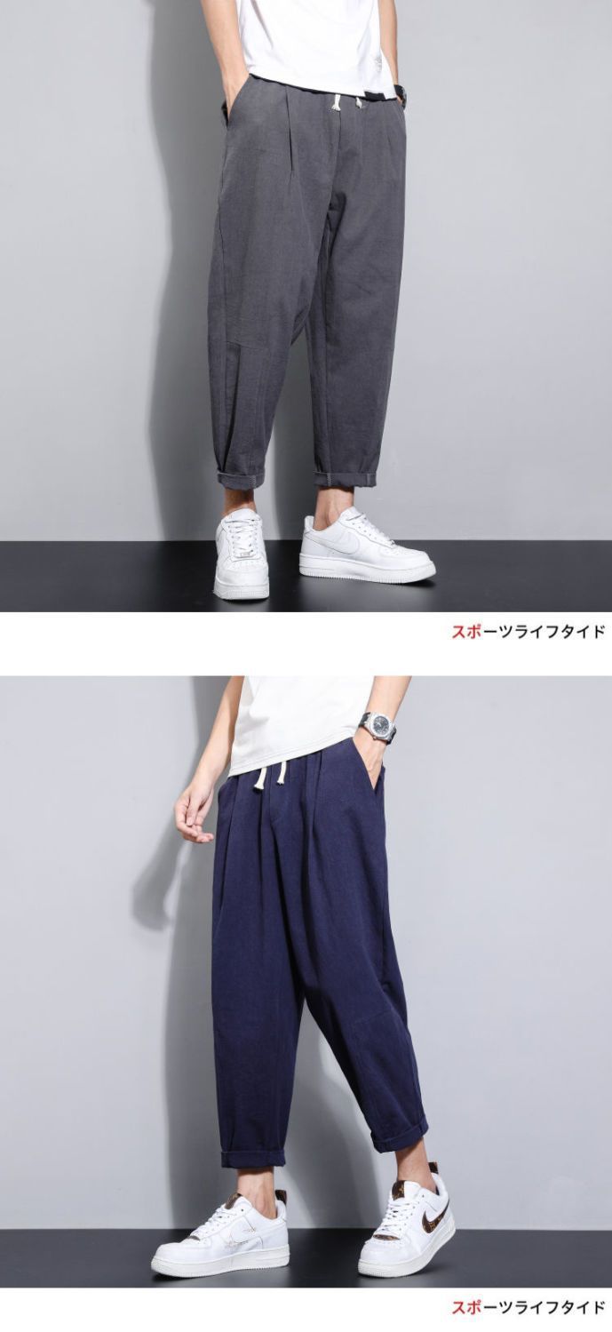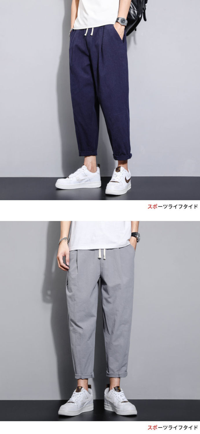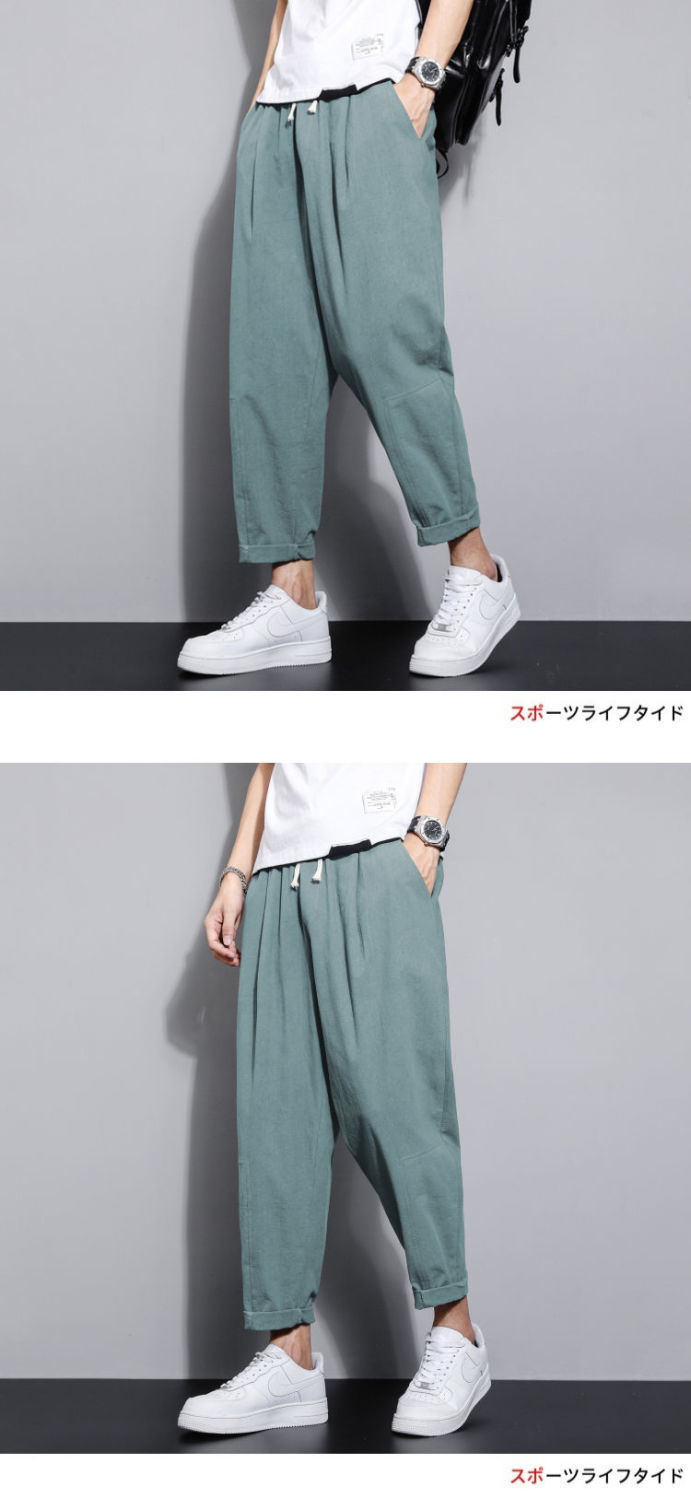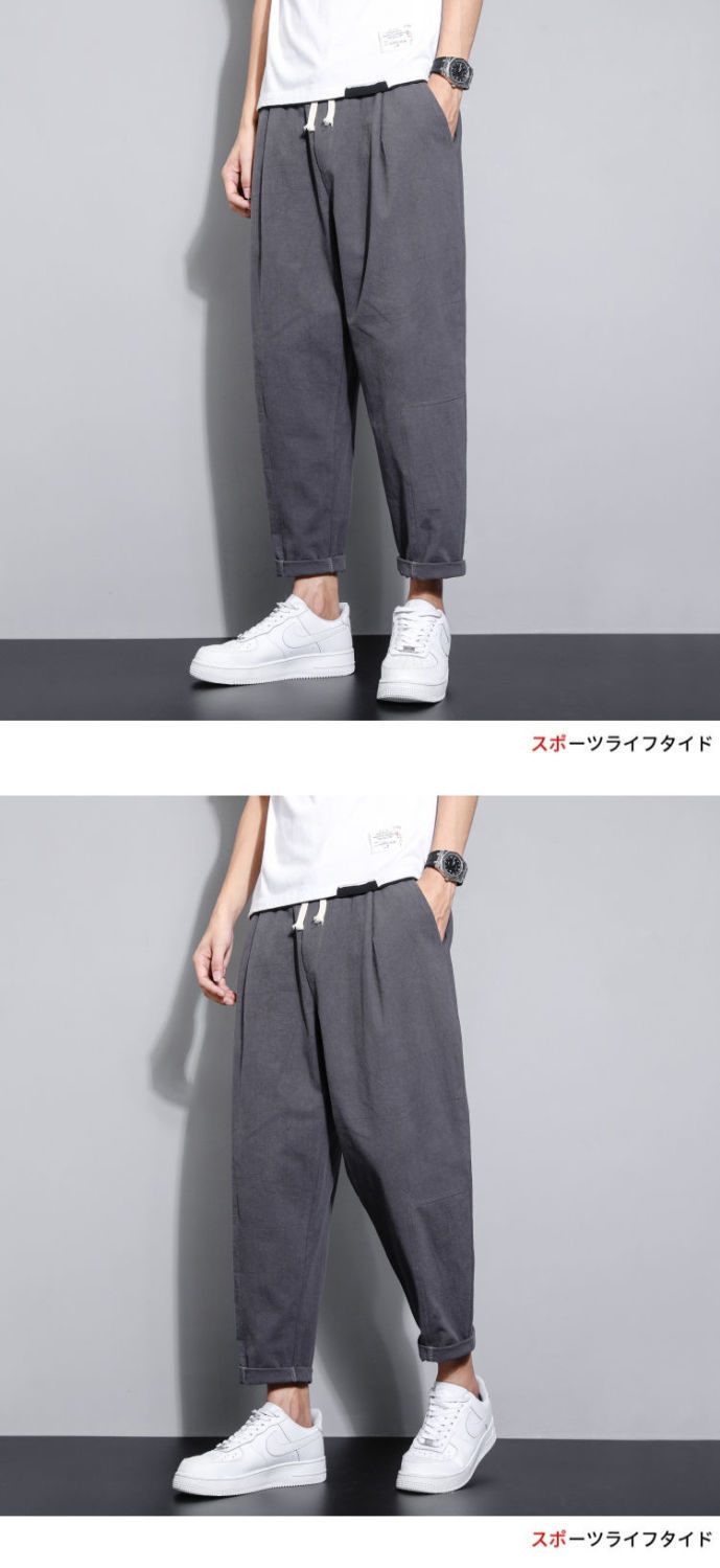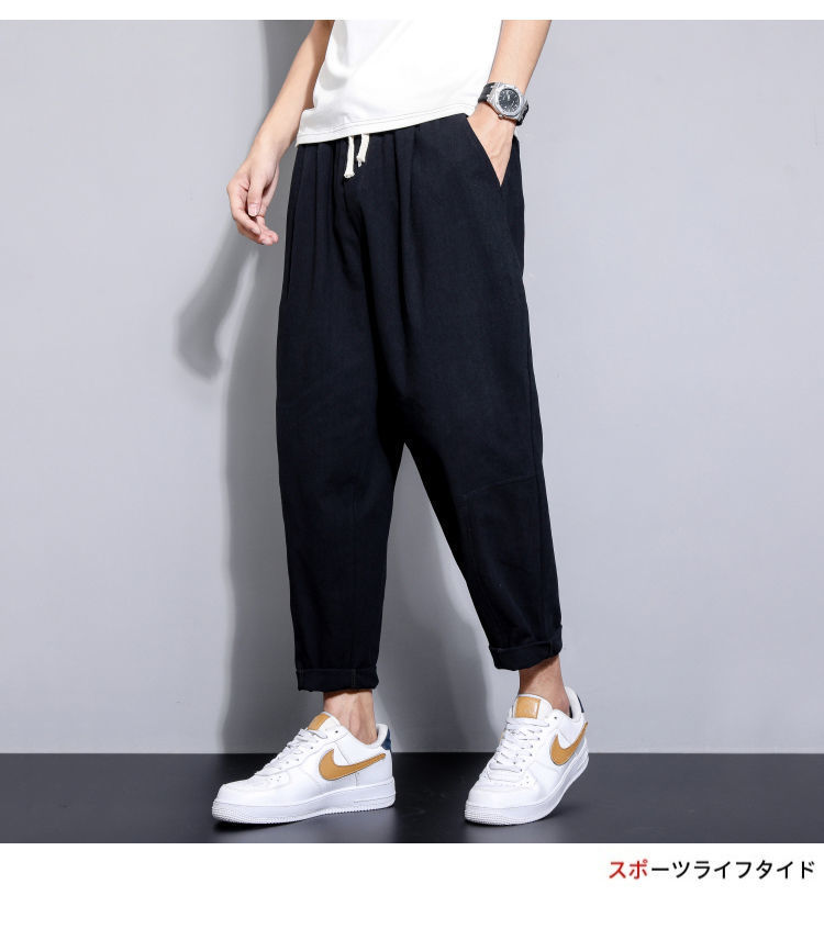 Pantalones casuales de verano para hombres japoneses, pantalones cortos de lino de talla grande delgados, pantalones de lino rectos retro sueltos para hombres, pantalones de algodón y lino rectos