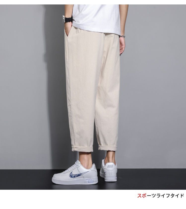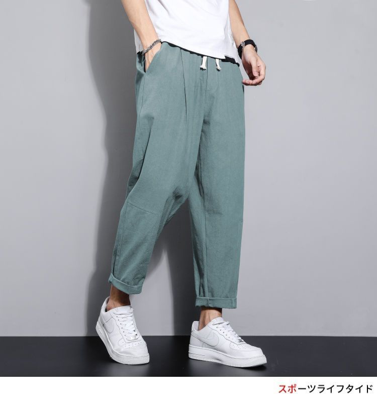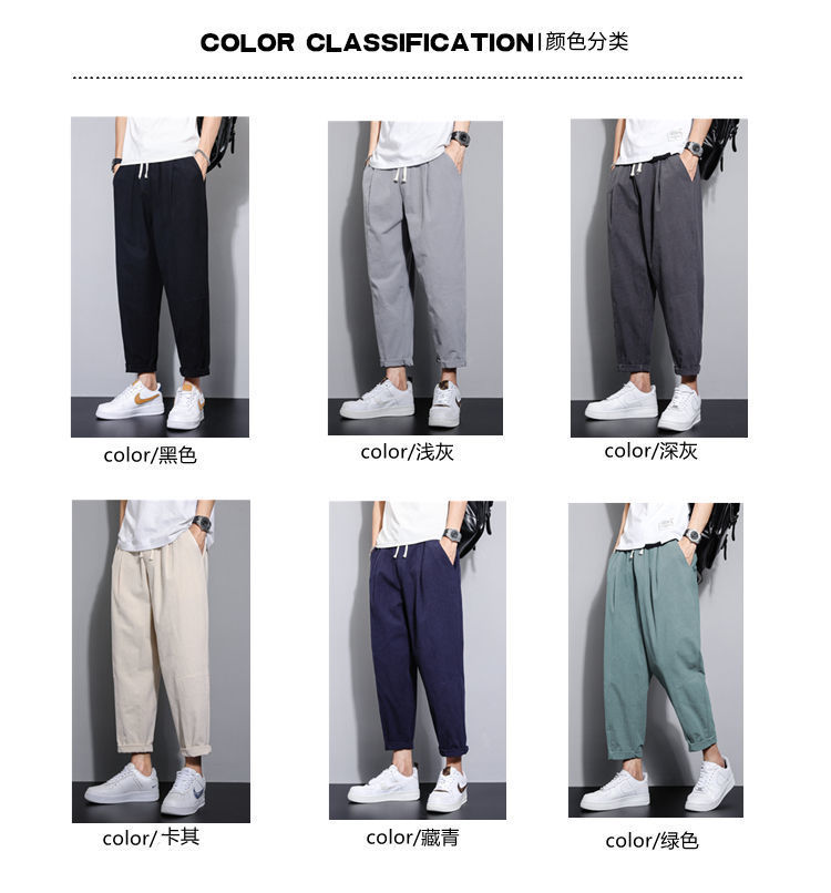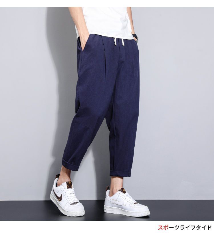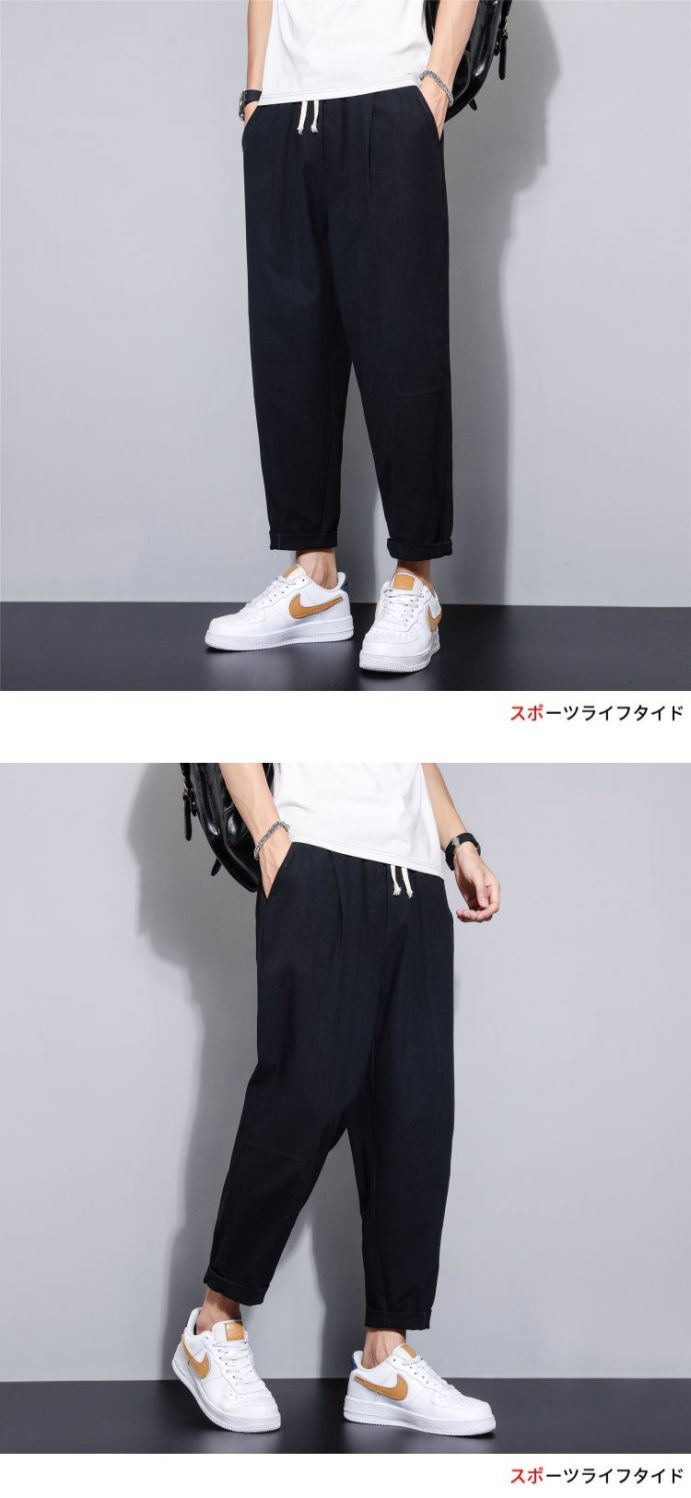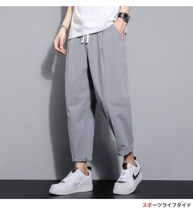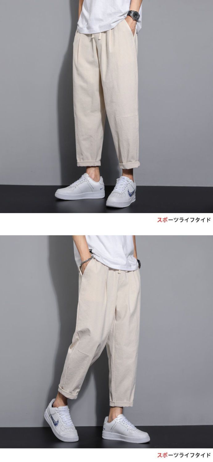 Pantalones casuales de verano para hombres japoneses, pantalones cortos de lino de talla grande delgados, pantalones de lino rectos retro sueltos para hombres, pantalones de algodón y lino rectos