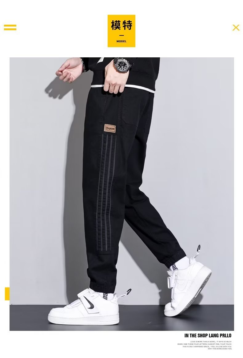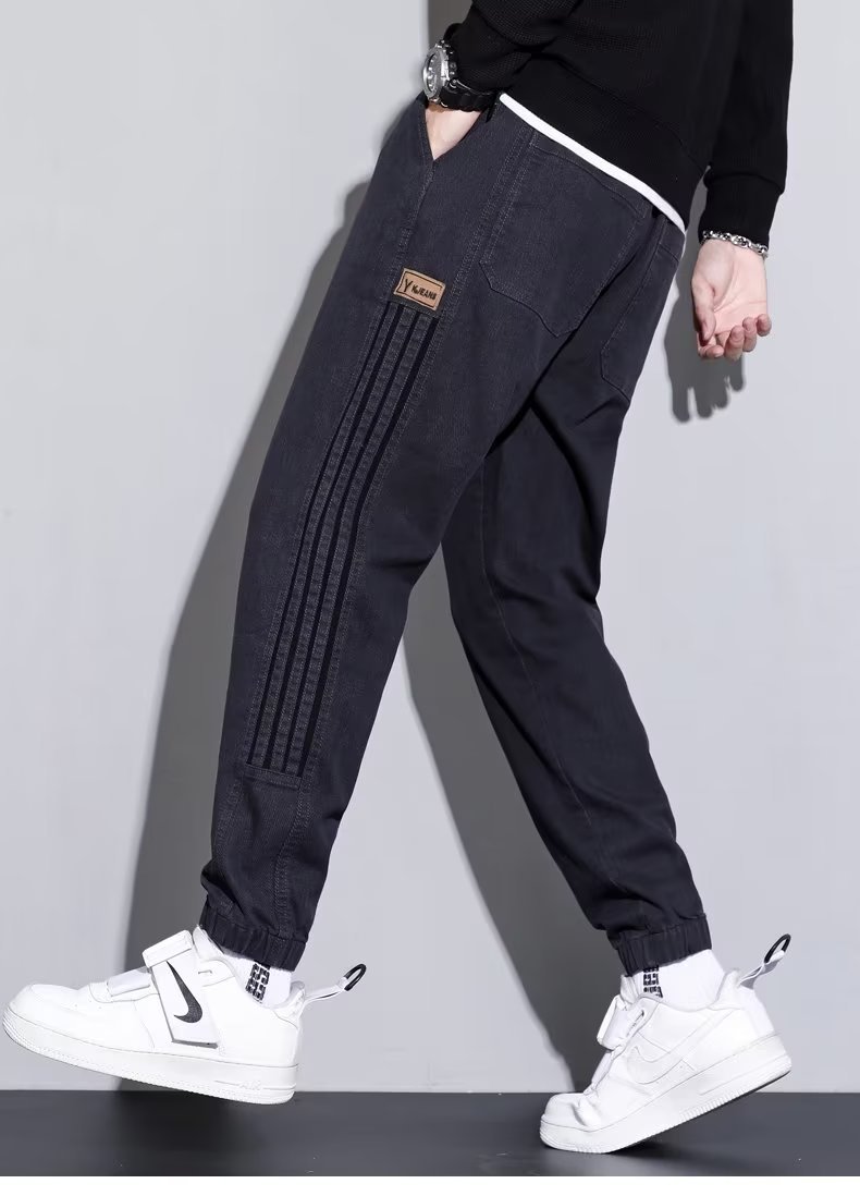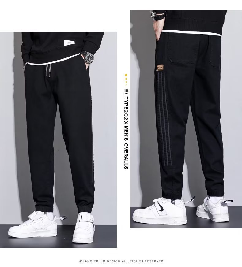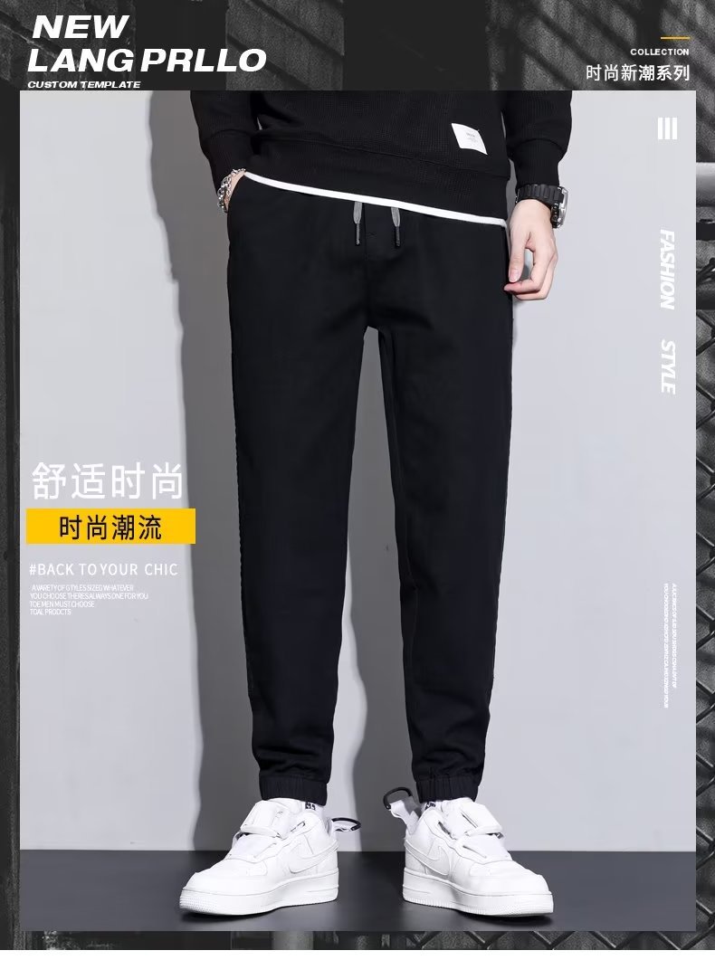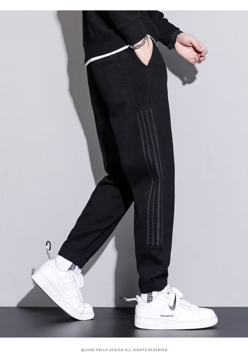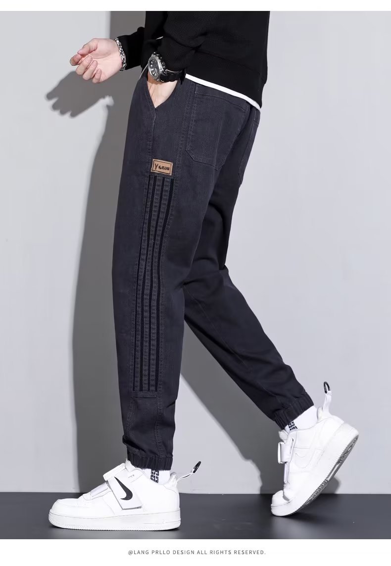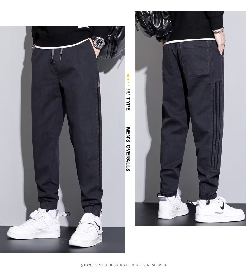 2024 otoño e invierno nuevo estilo ropa de trabajo japonesa jeans hombres sociedad chico atar pies pantalones casuales Harlan empuje principal