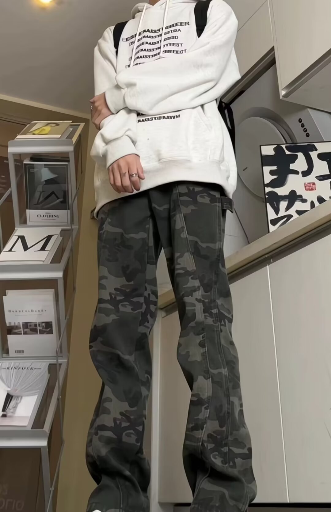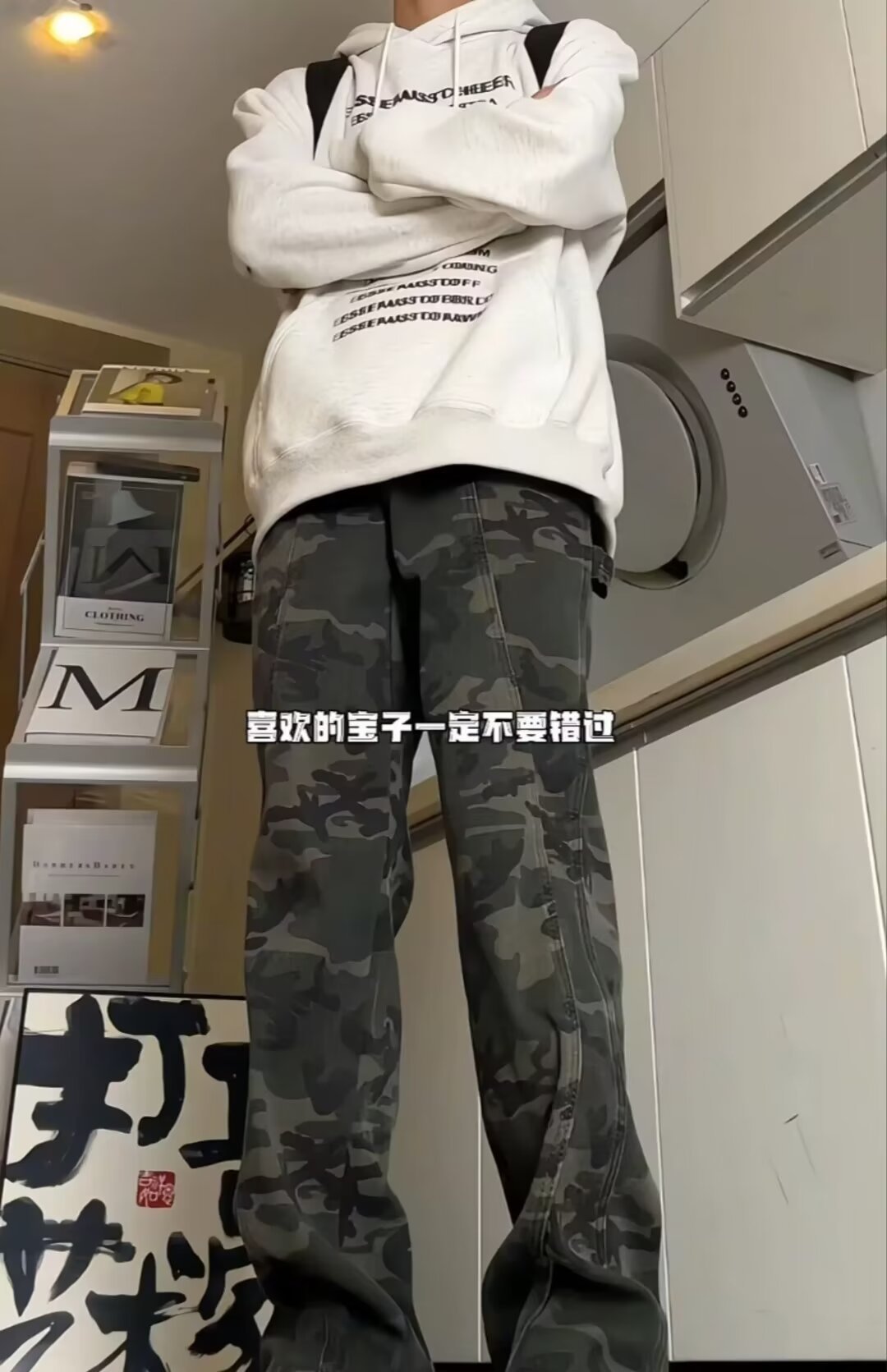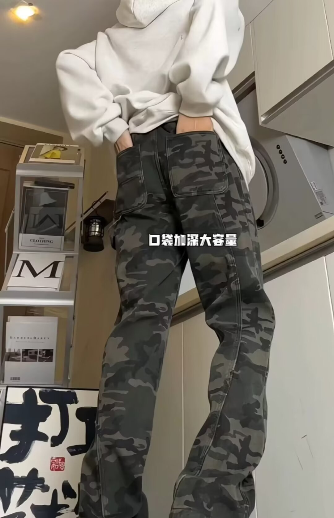 Estilo de moda estilo americano calle hip-hop overoles marca de moda alta calle retro camuflaje jeans pantalones rectos sueltos
