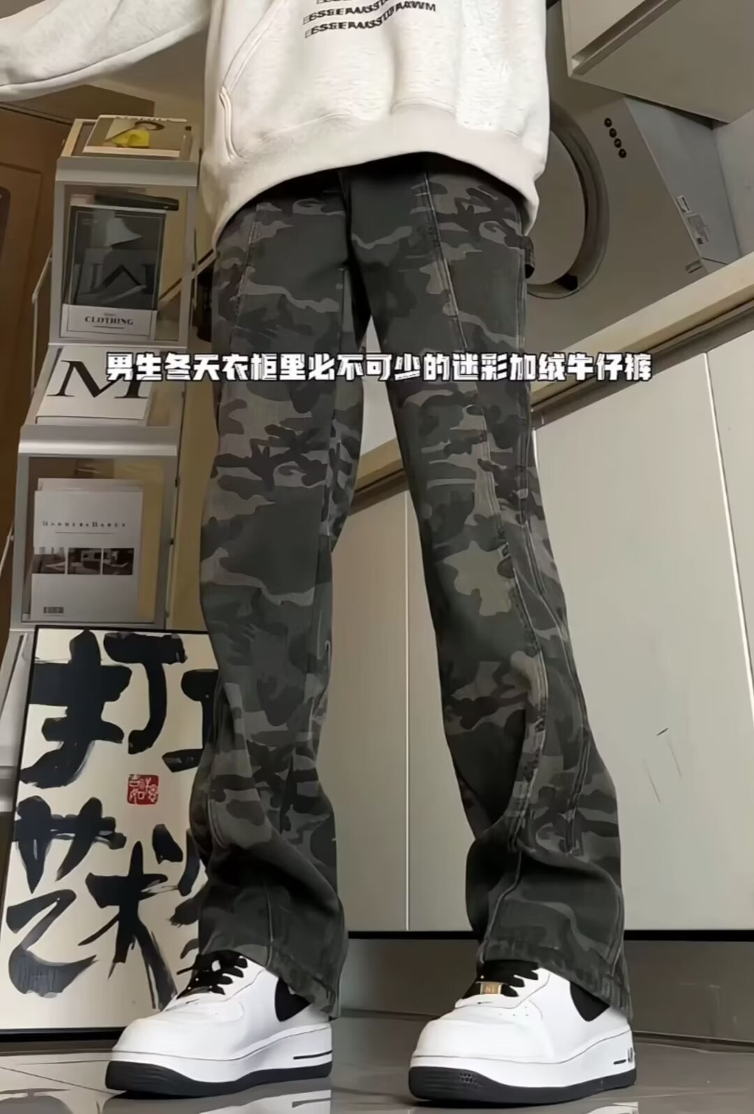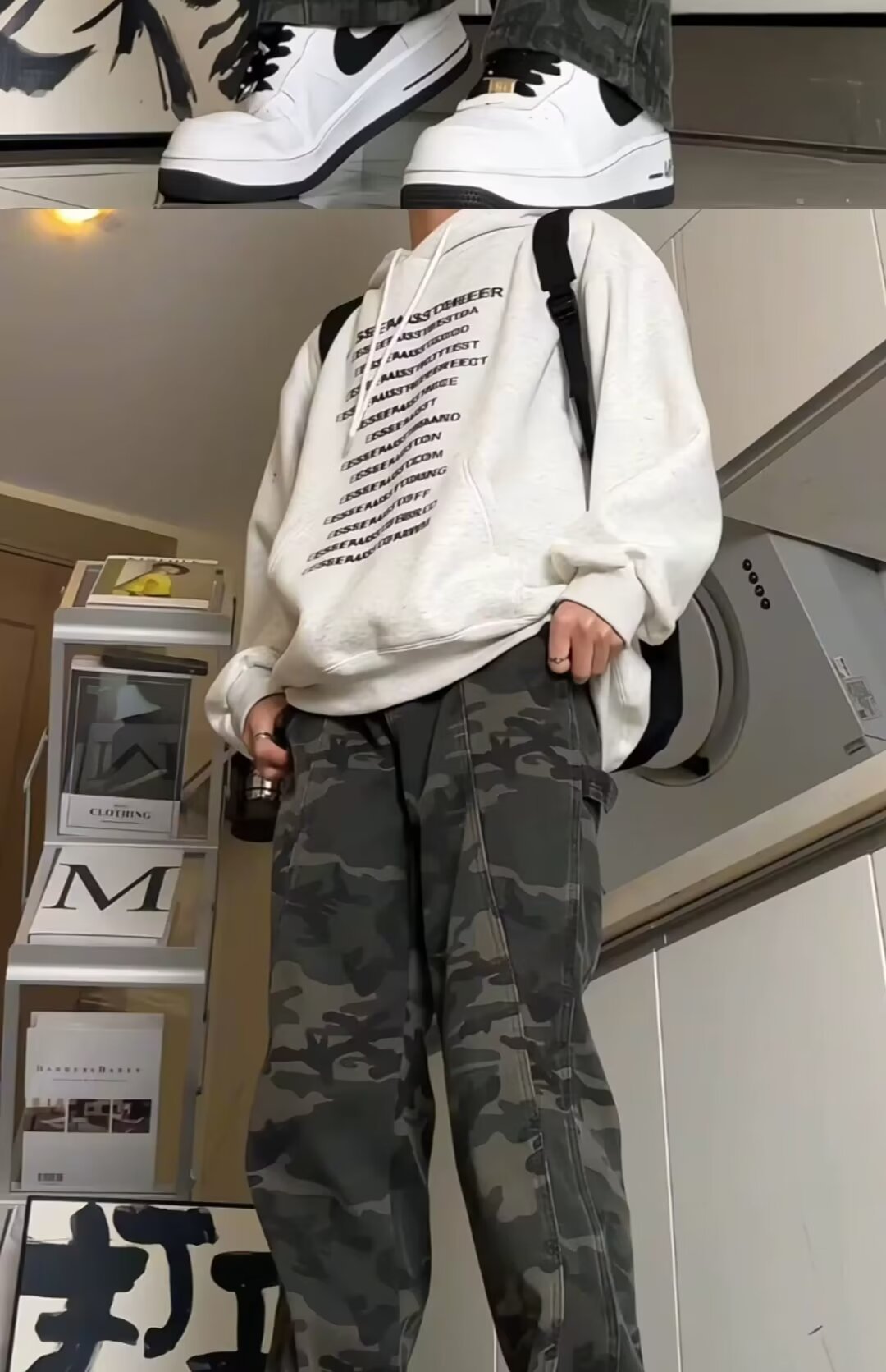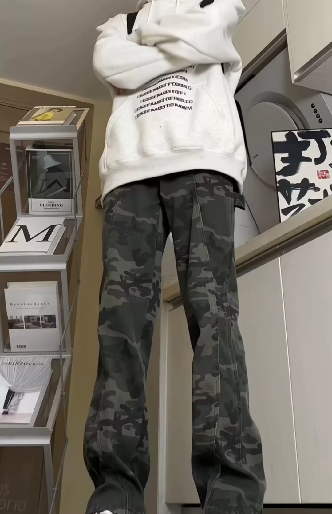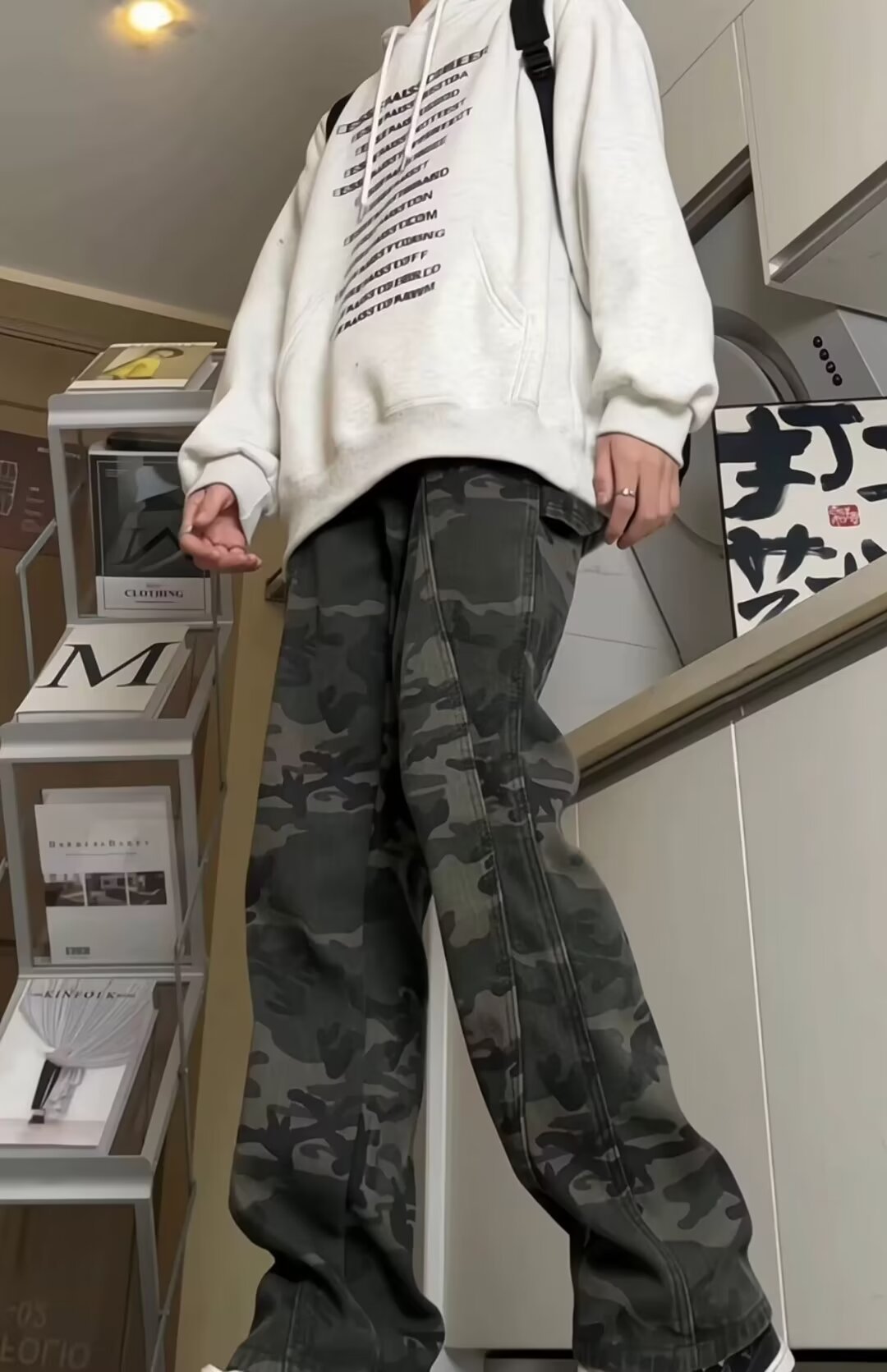 Estilo de moda estilo americano calle hip-hop overoles marca de moda alta calle retro camuflaje jeans pantalones rectos sueltos