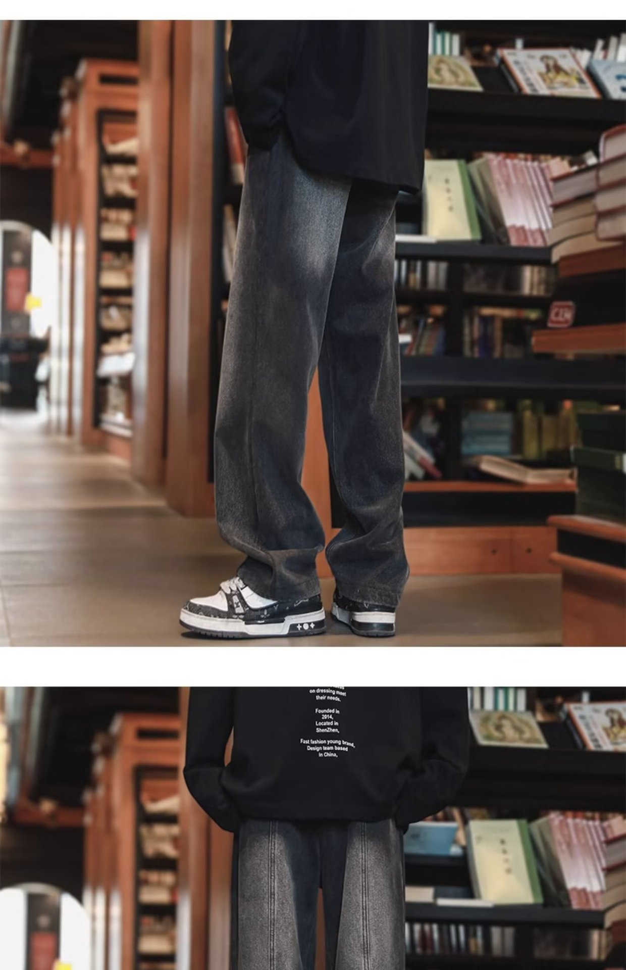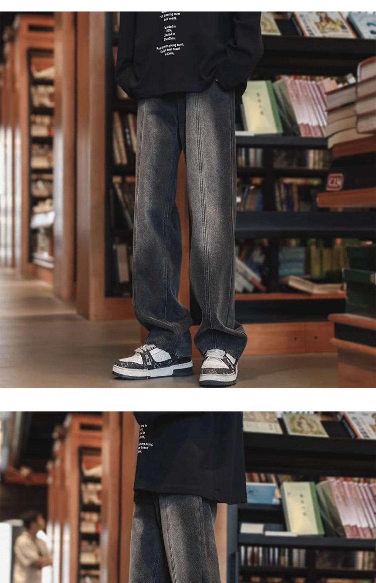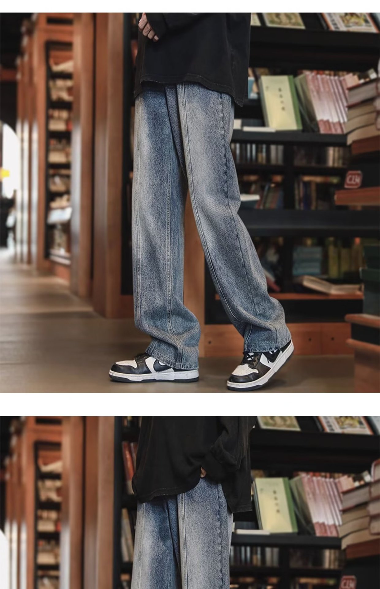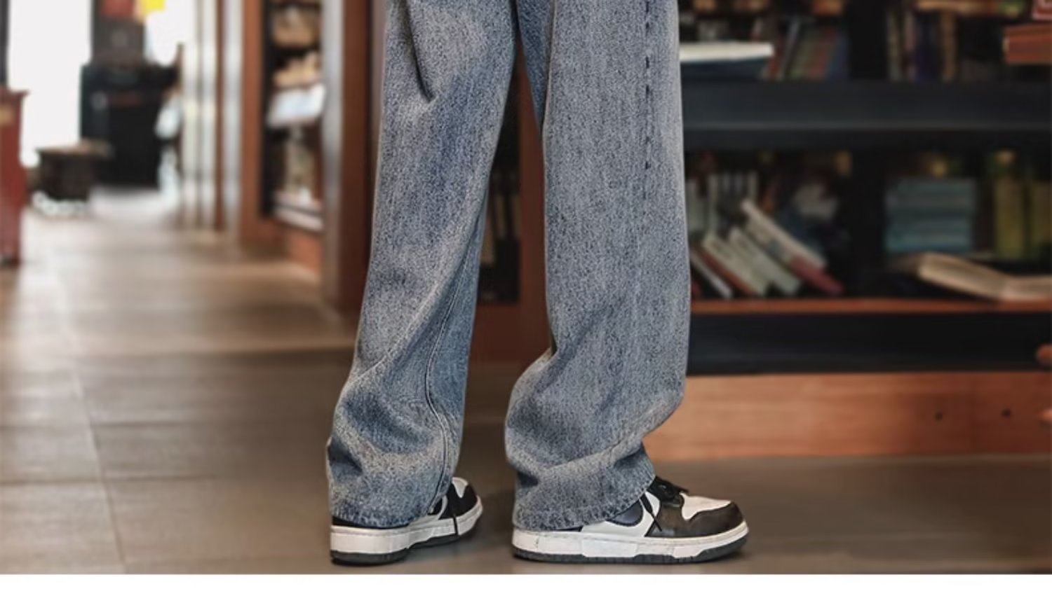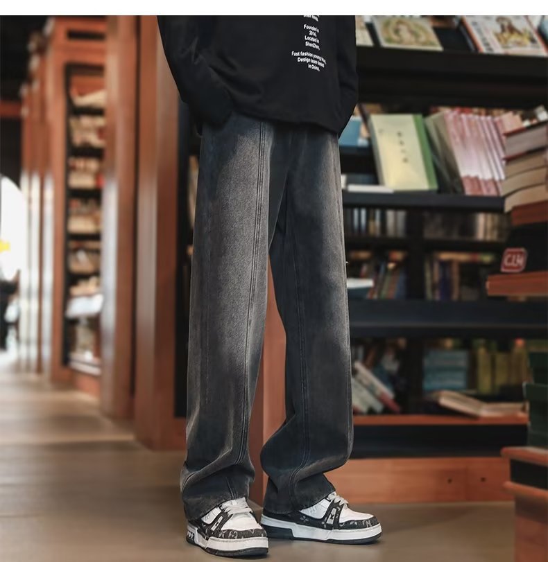 American High Street Jeans para hombre otoño nuevo estilo suelto casual pantalones de pierna recta pie cremallera pantalones de diseño sin bordes