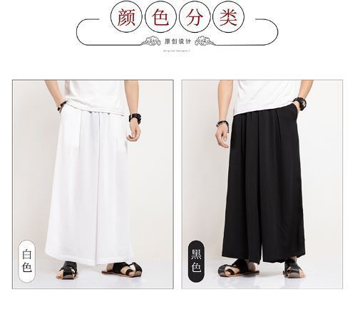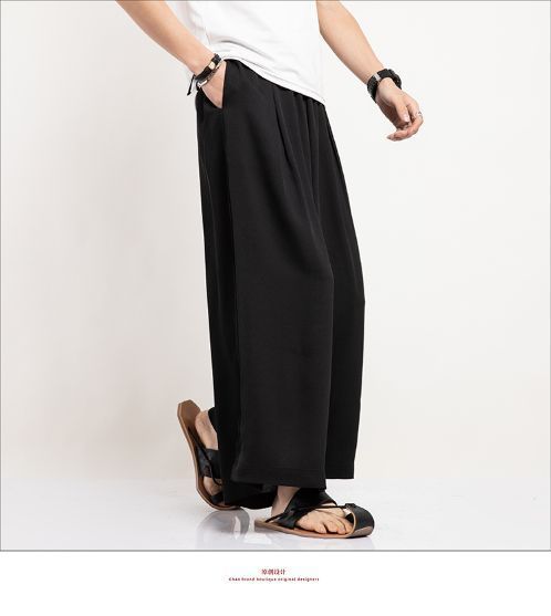 Pantalones anchos de estilo chino para hombres, pantalones de falda harem de nueve puntos, pantalones de nube de estilo chino