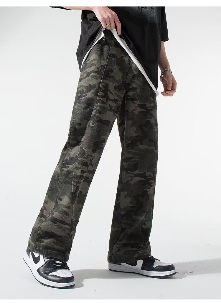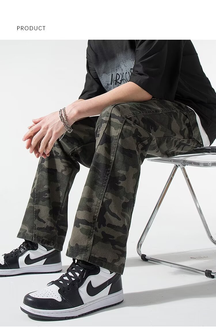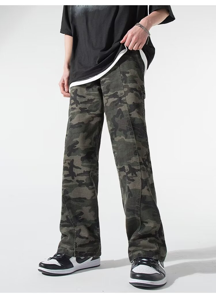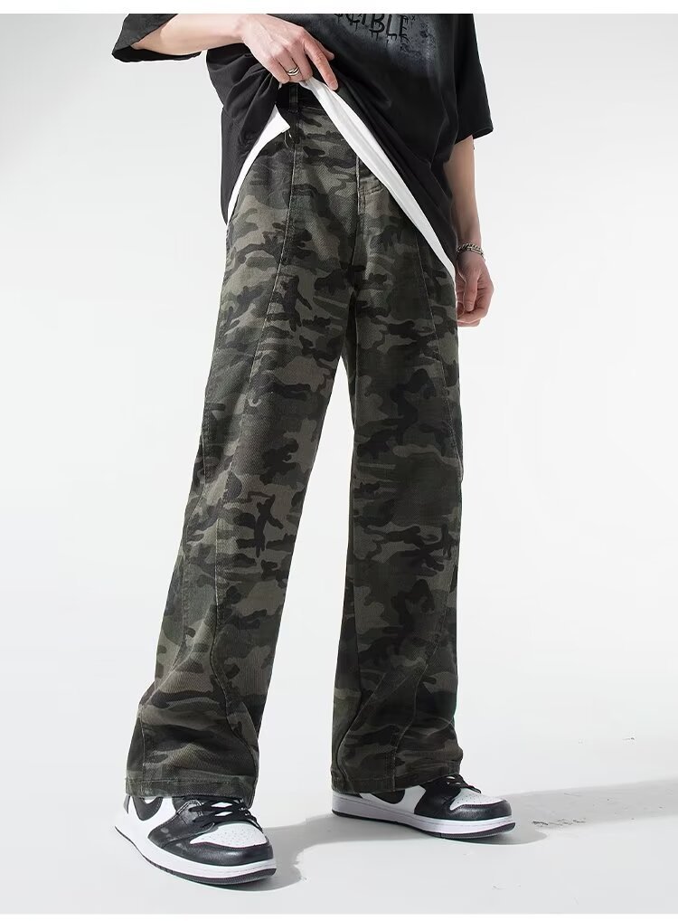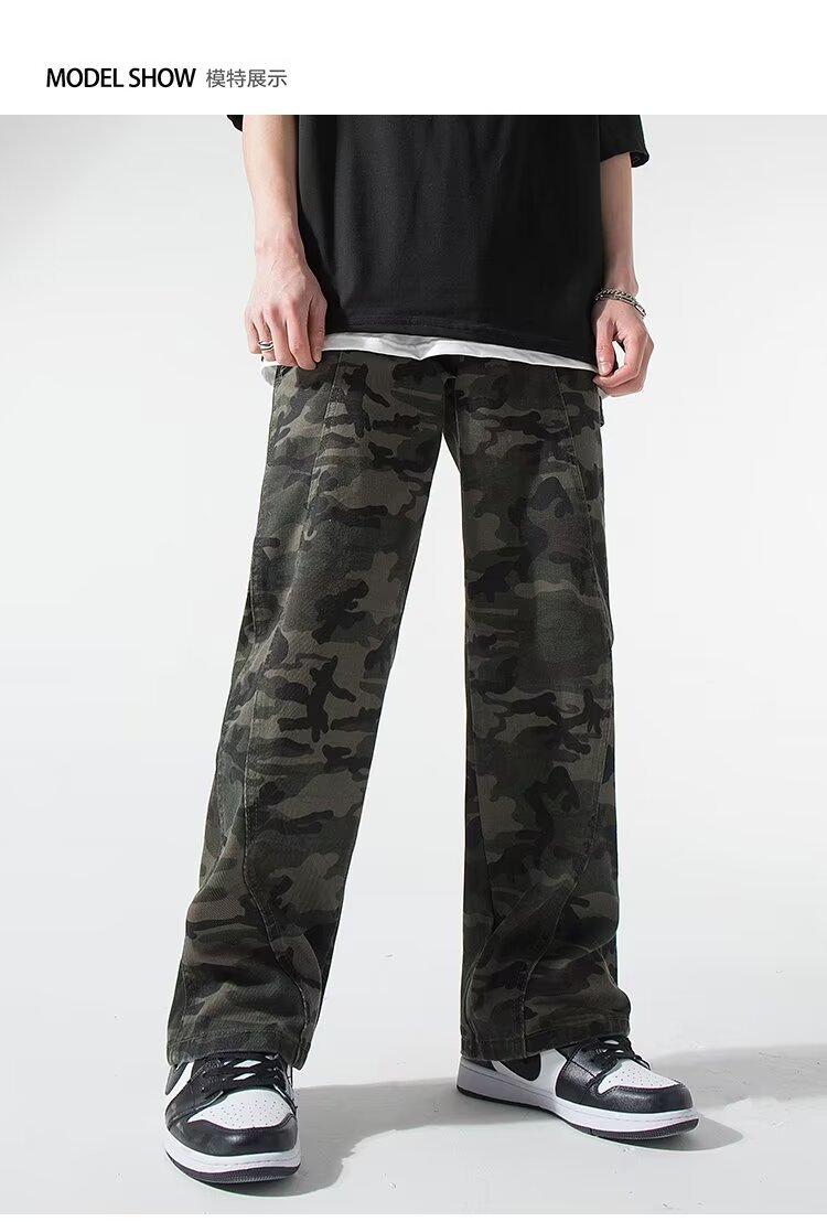 2024 jeans de camuflaje de peso pesado americano para hombres y mujeres, monos rectos de primavera, pantalones casuales de trapeador de piernas anchas, marea
