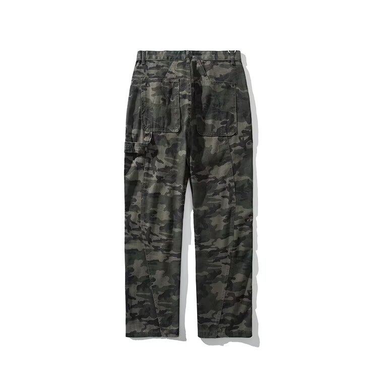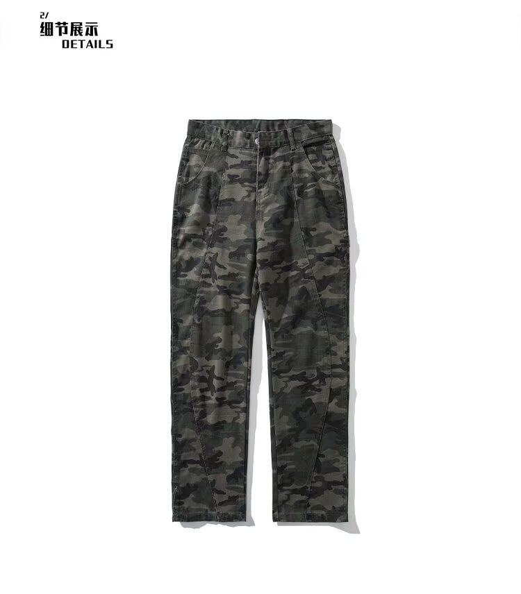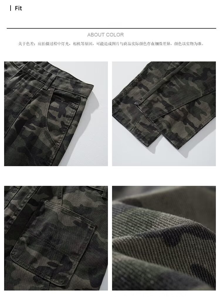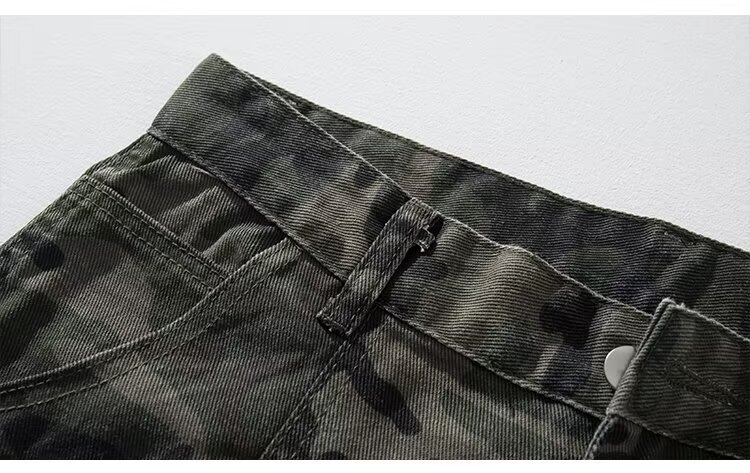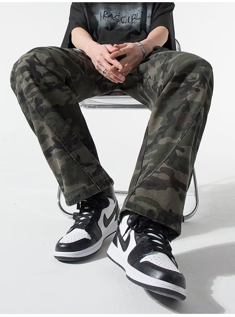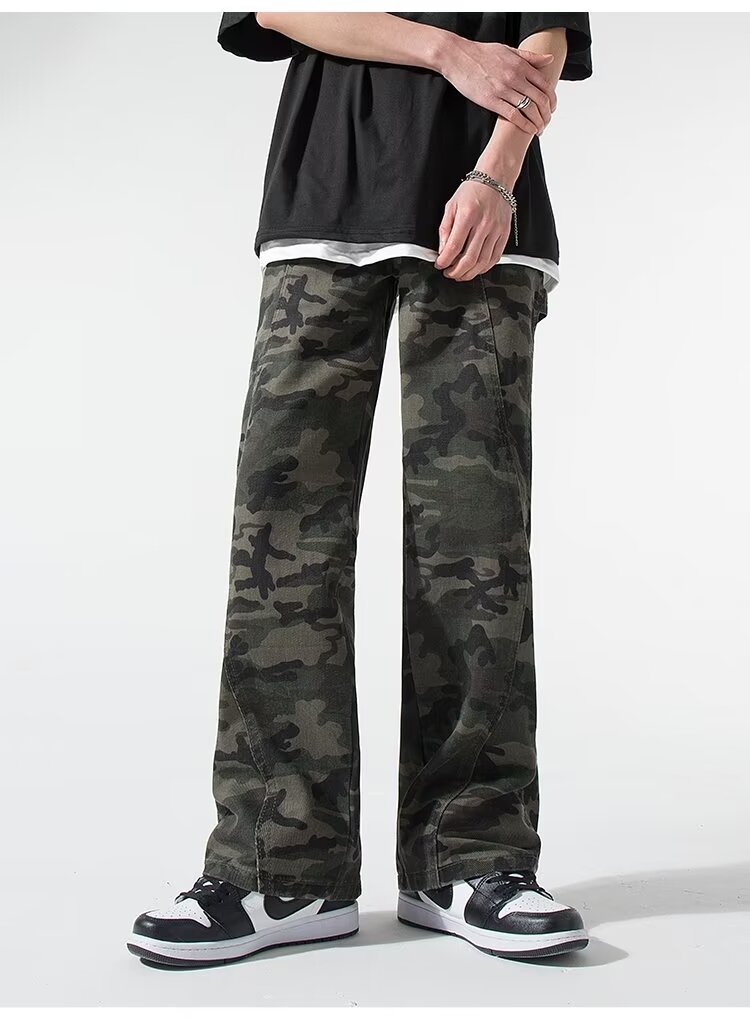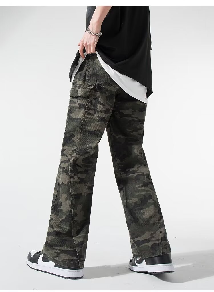 2024 jeans de camuflaje de peso pesado americano para hombres y mujeres, monos rectos de primavera, pantalones casuales de trapeador de piernas anchas, marea